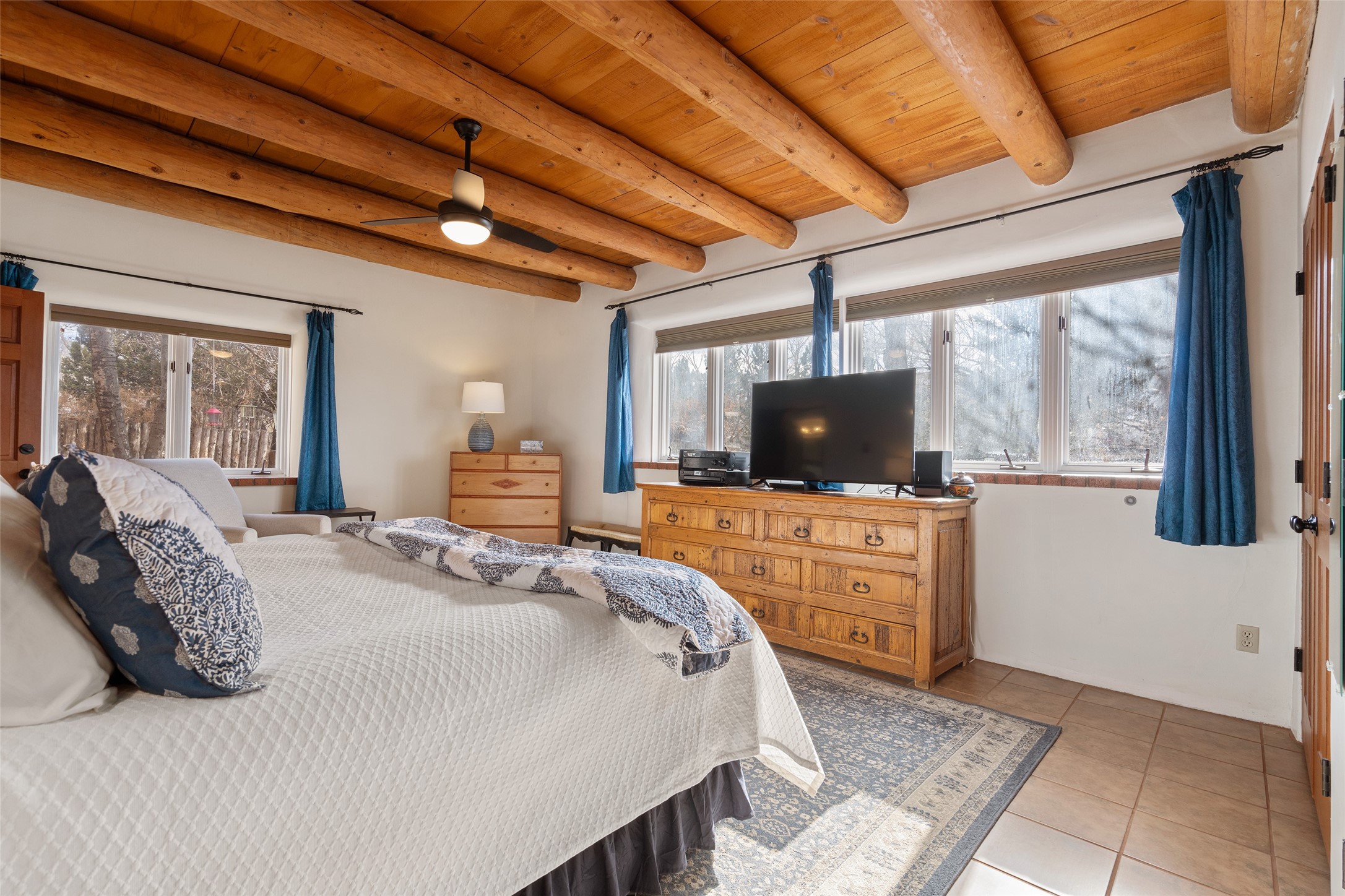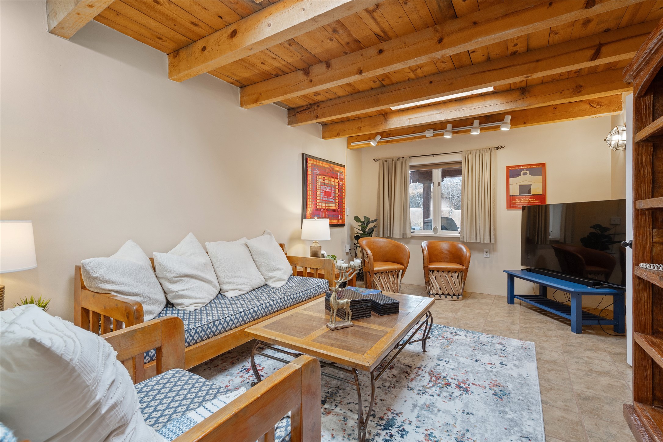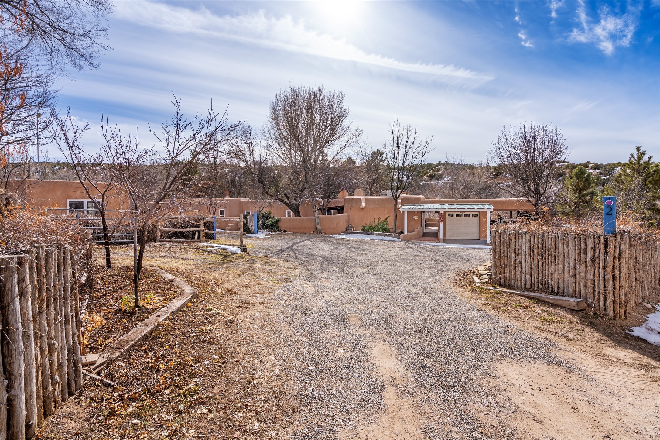 Nestled in the storied community of Chupadero, just outside Santa Fe, this remarkable 1.49-acre property offers an authentic New Mexico lifestyle steeped in history and natural beauty. Chupadero has been a vital agricultural corridor for centuries, with acequia irrigation systems dating back to the Spanish colonial era that continue to nourish the land today.This lovingly owner-built adobe home, crafted in the late 1980s, embodies timeless Southwestern architecture while offering modern comfort. The main residence features 3 bedrooms and 2.5 baths, complemented by flexible living space. Classic brick floors add warmth and character throughout, creating an inviting ambiance.The property's precious acequia water rights provide flood irrigation when available--a rare asset for the established orchard and fruit trees. Mature cottonwoods offer shade and seasonal beauty. A private well ensures year-round water security, and the brand-new septic system provides peace of mind.A charming 1-bedroom guest house offers privacy for visitors or potential rental income. The dedicated workshop with office space is perfect for artisans, hobbyists, or remote professionals. With a barn and corral there is ample room for horses or other livestock, this property is ideal for those seeking a spot for their miniature donkeys or sustainable homestead.Practical amenities include a 1-car garage and carport. The meticulous maintenance throughout reflects the owner's decades-long commitment to preserving this special sanctuary.This is more than a home--it's a connection to New Mexico's agricultural legacy and an opportunity to embrace a slower, more intentional way of life in one of Santa Fe's most historically significant communities.