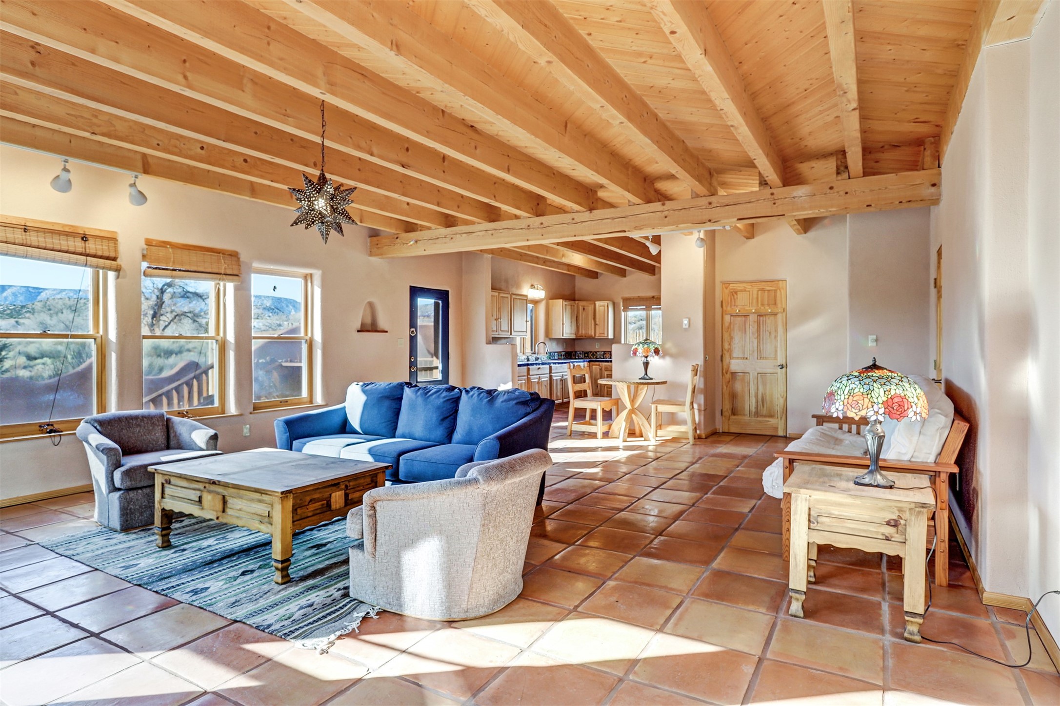 Nestled along the banks of the Rio Chama, this unique Abiquiu property offers a blend of classic charm, modern flexibility, and breathtaking natural beauty. The ranch-style main home, featuring warm wood floors, three bedrooms, and two bathrooms, with a comfortable, functional layout ideal for everyday living. Complementing the main home is a newer Pueblo-style casita, offering two bedrooms and one bathroom. With its own distinct character, the casita is perfect for guests, extended family, or potential rental income. The property is set among incredible, mature cottonwood trees, creating a serene, private setting with direct access to the Rio Chama. An exceptional backdrop for outdoor living, recreation, and relaxation. Enjoy the sights and sounds of nature right outside your door, all while being located in the heart of the iconic Abiquiu area. Conveniently located approximately 30 minutes from Los Alamos, 50 minutes from Santa Fe, and 60 minutes from Taos, this property offers peaceful seclusion without sacrificing access to art, culture, and amenities. A truly special property that captures the essence of Northern New Mexico living.