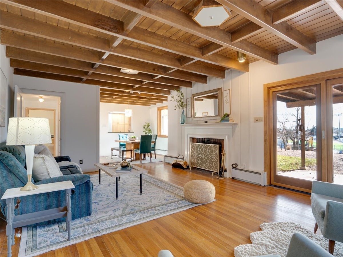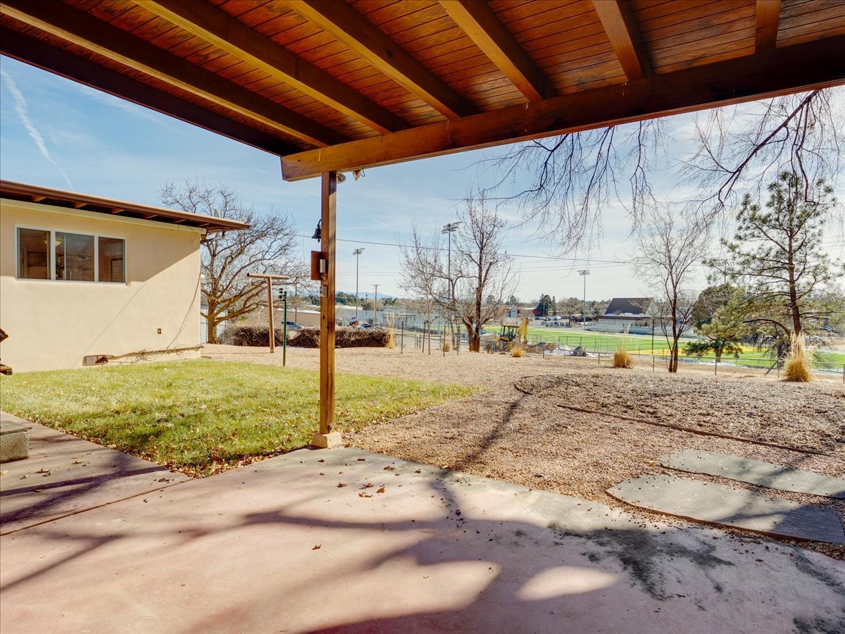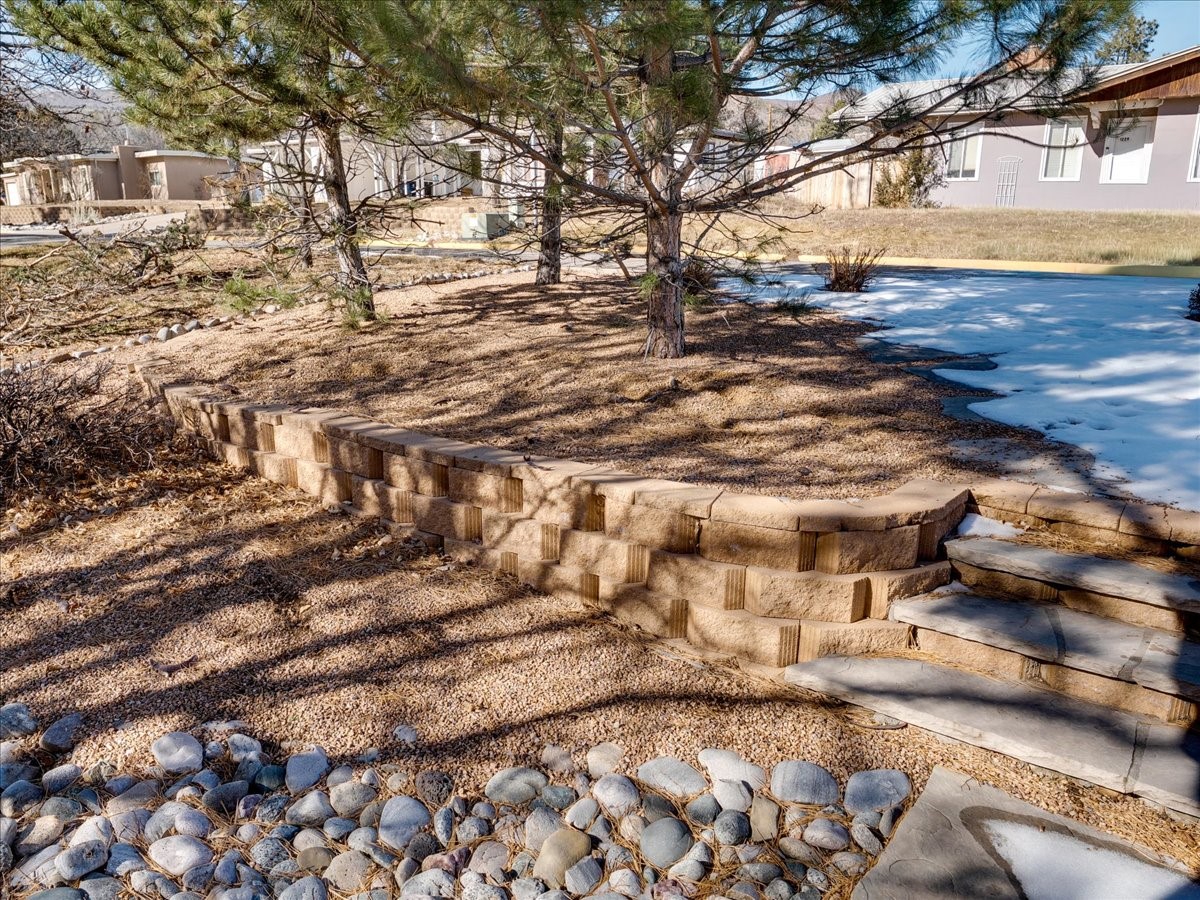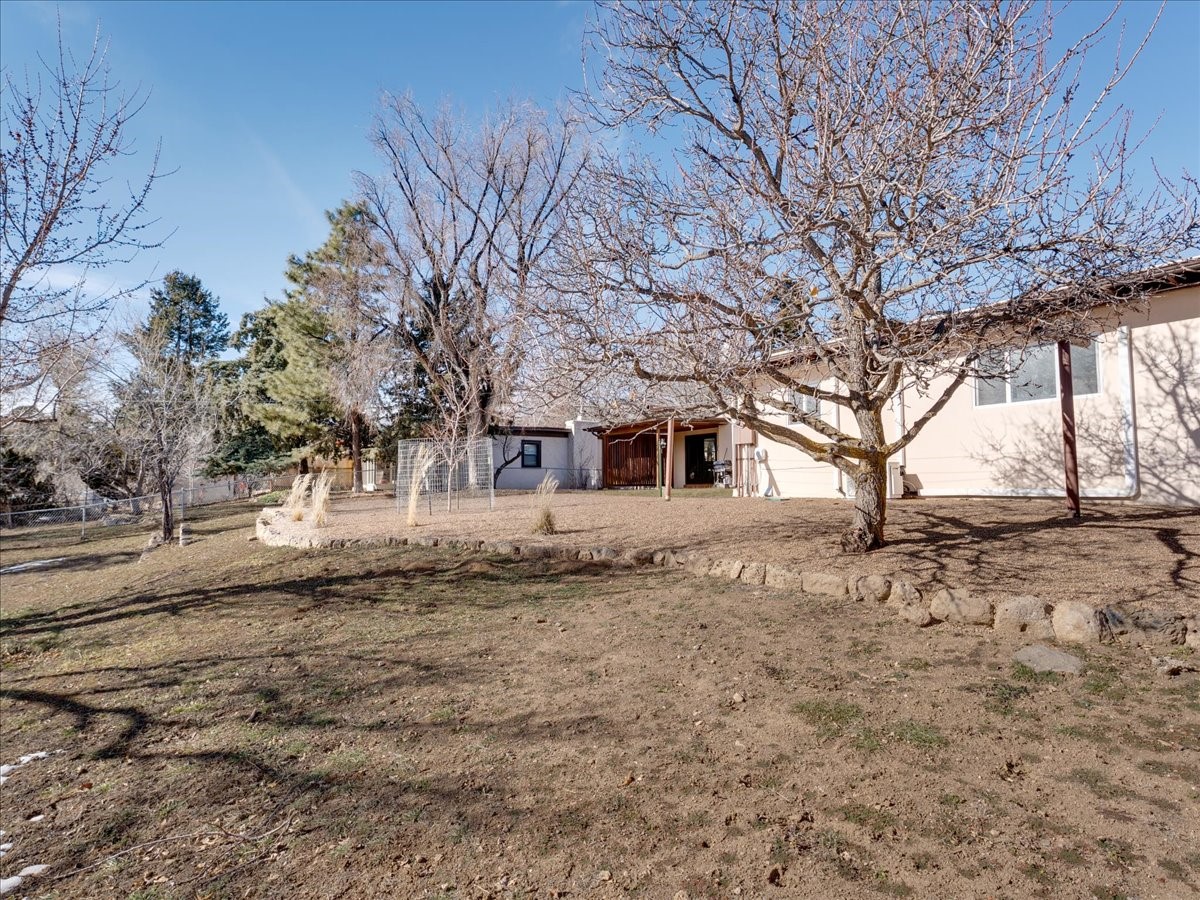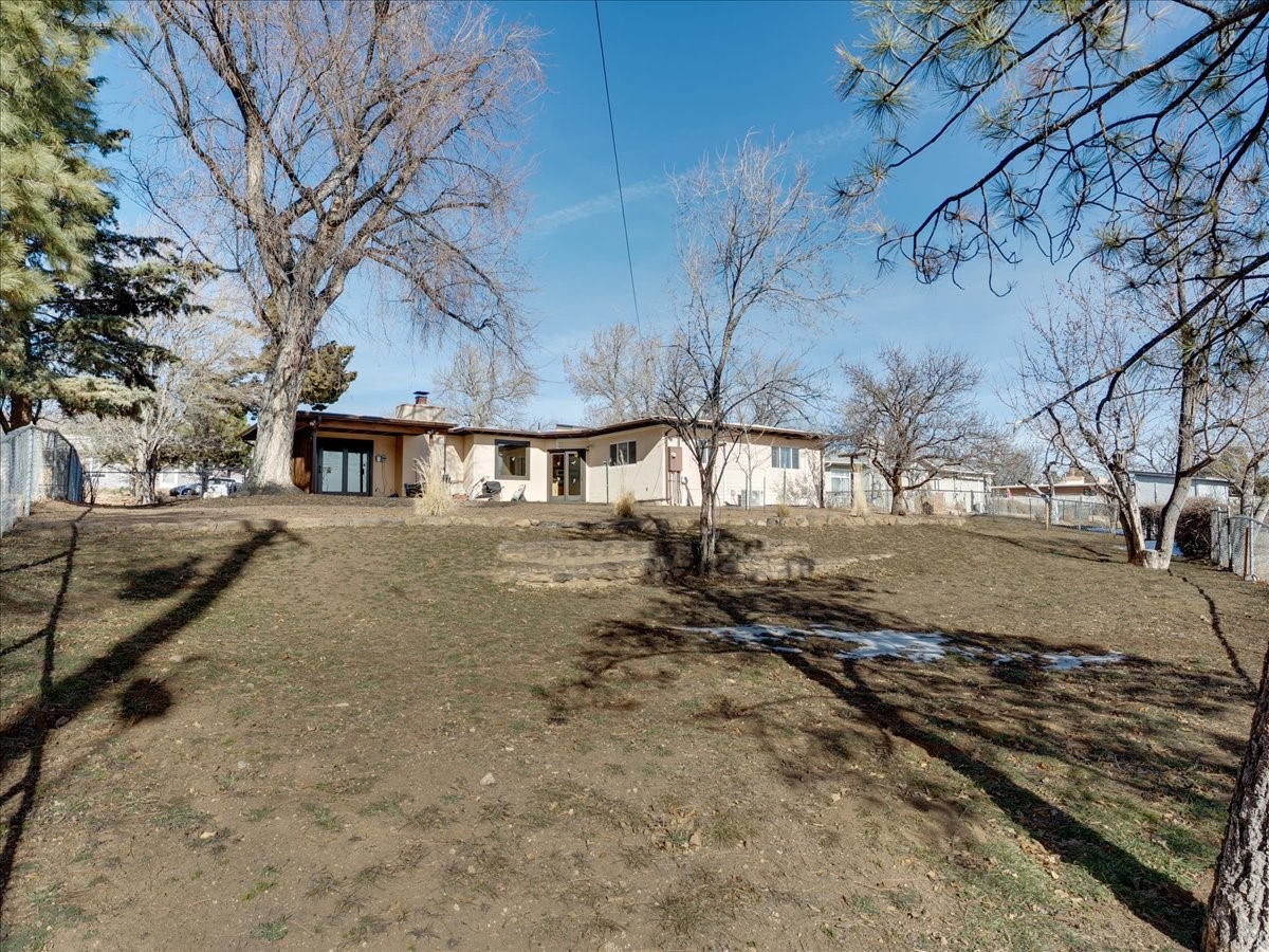 This charming Western Area home offers convenient access to bus stops, downtown, and the high school. While it retains the classic charm of Western Area homes, it has been thoughtfully updated to meet modern living needs. The original floor plan featured three bedrooms and one bathroom, but it has been reconfigured to create two spacious bedrooms, including a generous primary suite with a luxurious, updated bathroom. This area has new carpeting. In 2012, the kitchen underwent a major remodel and is truly a chef's delight, featuring an island with an induction cooktop, double ovens, and cabinetry equipped with pull-out organization drawers. Two built-in pantries provide exceptional storage, while two large skylights fill the space with natural light. The kitchen also offers direct access to the beautiful backyard, making it ideal for both everyday living and entertaining. The Zia Addition on the south side of the home added two additional bedrooms and a bathroom, providing flexible space for guests, family, or a home office. The backyard backs to Sullivan Field, allowing you to enjoy Friday Night Lights football, soccer games, or band performances from the comfort of your own yard. This will be great for entertaining friends and family. The landscaping has been professionally maintained by Los Alamos Landscaping for several years. The home features multiple LG mini-split units providing both air conditioning and heat with independent temperature controls for each room. The oversized garage includes an outlet for electric vehicle charging and features a full wall of storage cabinets for excellent organization. A French drain in the driveway outside the garage captures runoff from snow and rain, adding both function and peace of mind. This well-maintained home combines location, charm, and modern upgrades in a truly special setting. Schedule a private showing today!