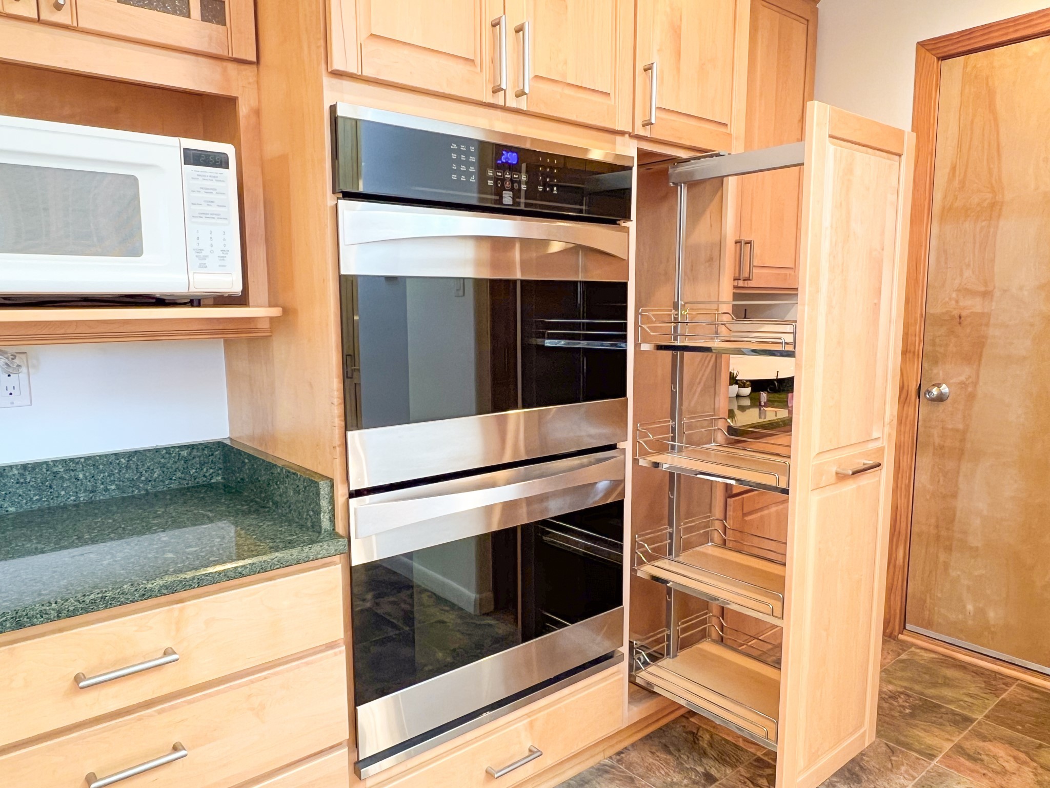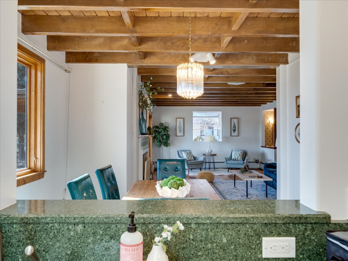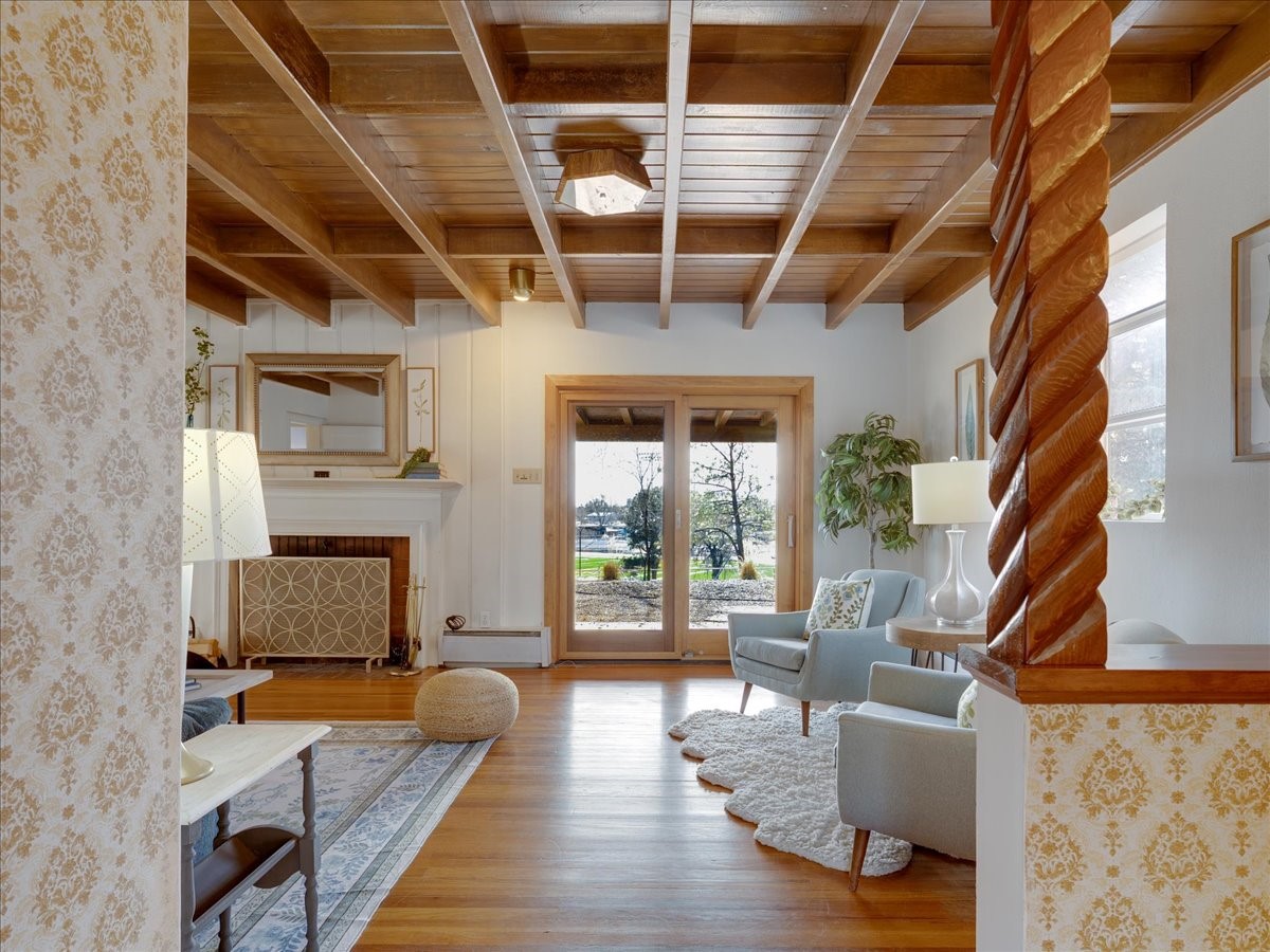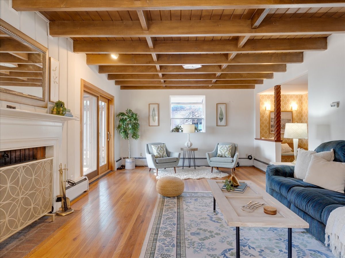 This charming Western Area home offers convenient access to bus stops, downtown, and the high school. While it retains the classic charm of Western Area homes, it has been thoughtfully updated to meet modern living needs. The original floor plan featured three bedrooms and one bathroom, but it has been reconfigured to create two spacious bedrooms, including a generous primary suite with a luxurious, updated bathroom. This area has new carpeting. In 2012, the kitchen underwent a major remodel and is truly a chef's delight, featuring an island with an induction cooktop, double ovens, and cabinetry equipped with pull-out organization drawers. Two built-in pantries provide exceptional storage, while two large skylights fill the space with natural light. The kitchen also offers direct access to the beautiful backyard, making it ideal for both everyday living and entertaining. The Zia Addition on the south side of the home added two additional bedrooms and a bathroom, providing flexible space for guests, family, or a home office. The backyard backs to Sullivan Field, allowing you to enjoy Friday Night Lights football, soccer games, or band performances from the comfort of your own yard. This will be great for entertaining friends and family. The landscaping has been professionally maintained by Los Alamos Landscaping for several years. The home features multiple LG mini-split units providing both air conditioning and heat with independent temperature controls for each room. The oversized garage includes an outlet for electric vehicle charging and features a full wall of storage cabinets for excellent organization. A French drain in the driveway outside the garage captures runoff from snow and rain, adding both function and peace of mind. This well-maintained home combines location, charm, and modern upgrades in a truly special setting. Schedule a private showing today!