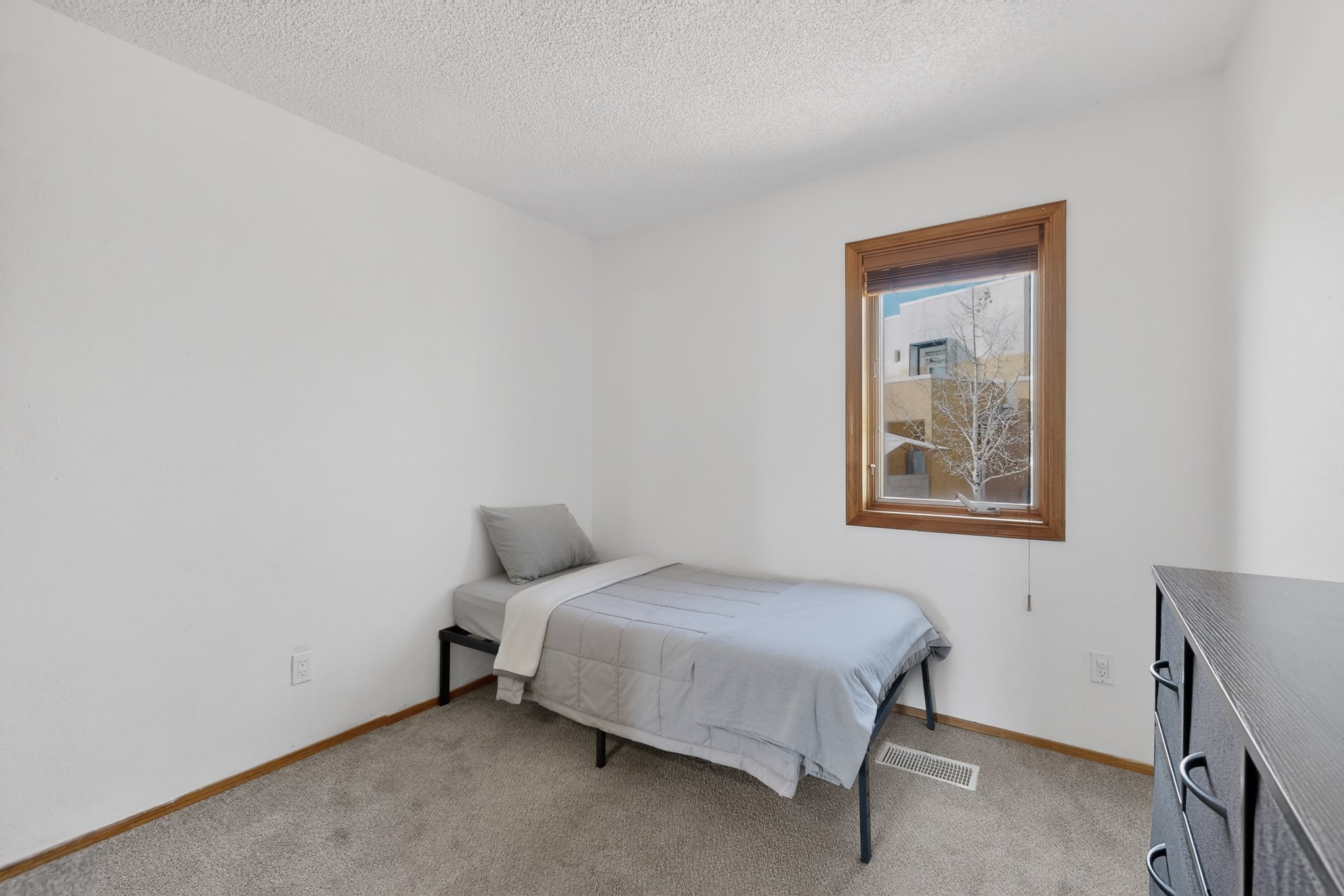 Why rent when you can own this Santa Fe townhouse offering classic Southwestern character and a versatile floor plan? Designed for comfortable everyday living, the main level features an open living and dining area with a cozy fireplace, flowing seamlessly into the kitchen--ideal for gathering and entertaining. Natural light fills the space, while thoughtful separation of bedrooms upstairs provides privacy and flexibility. Finding a 3 bedroom, 3 bathroom home in Santa Fe at this value is a rare opportunity. Enjoy outdoor living with a private patio and upper-level terrace. TPO roof and two assigned parking spaces add convenience. Embrace the Santa Fe lifestyle and make it your own!