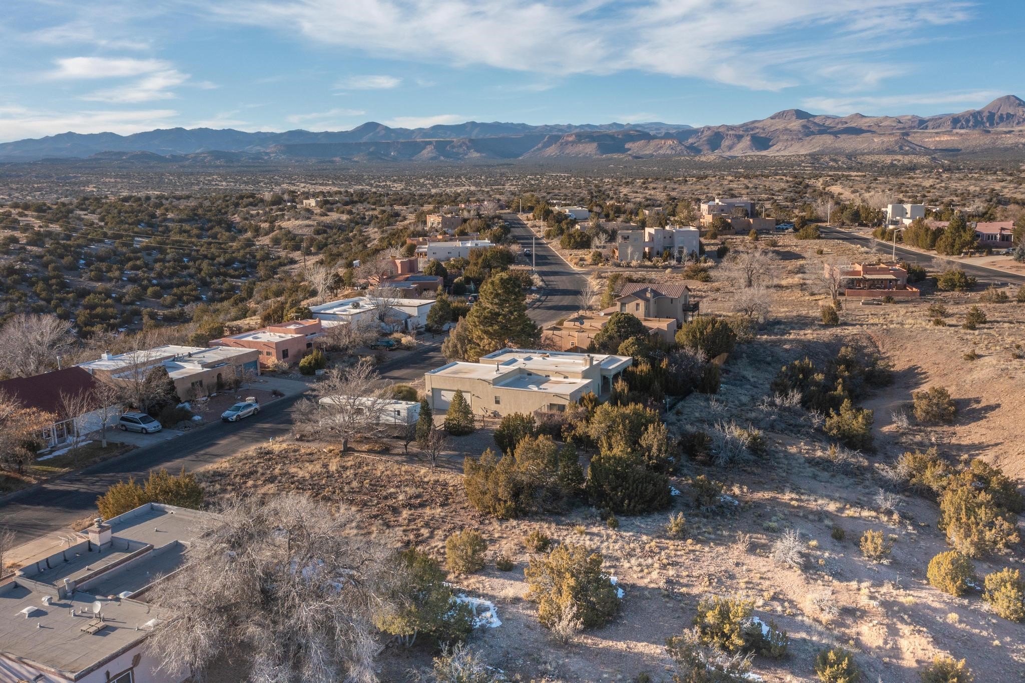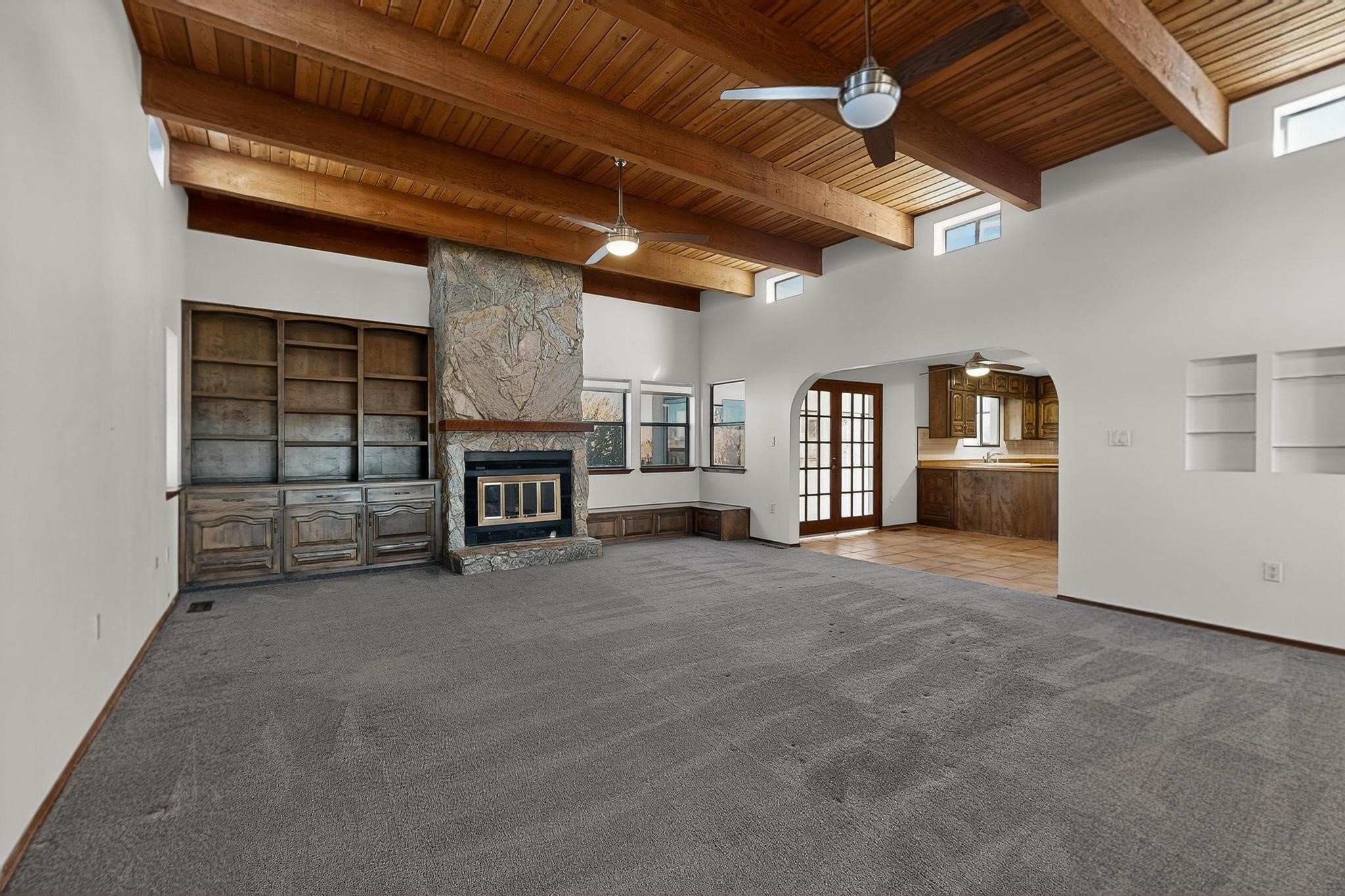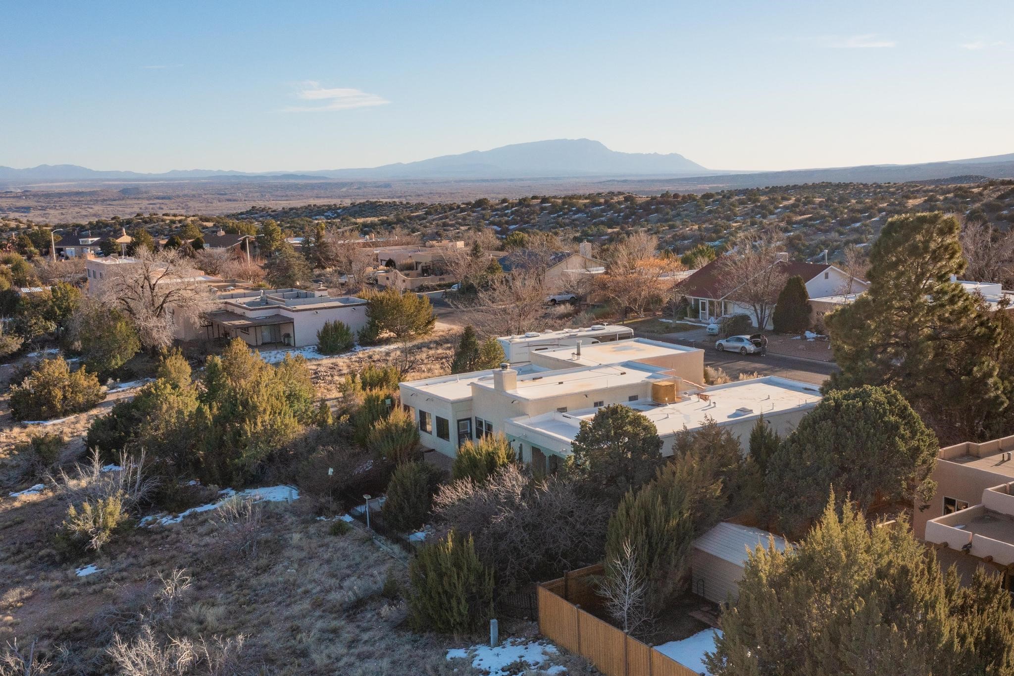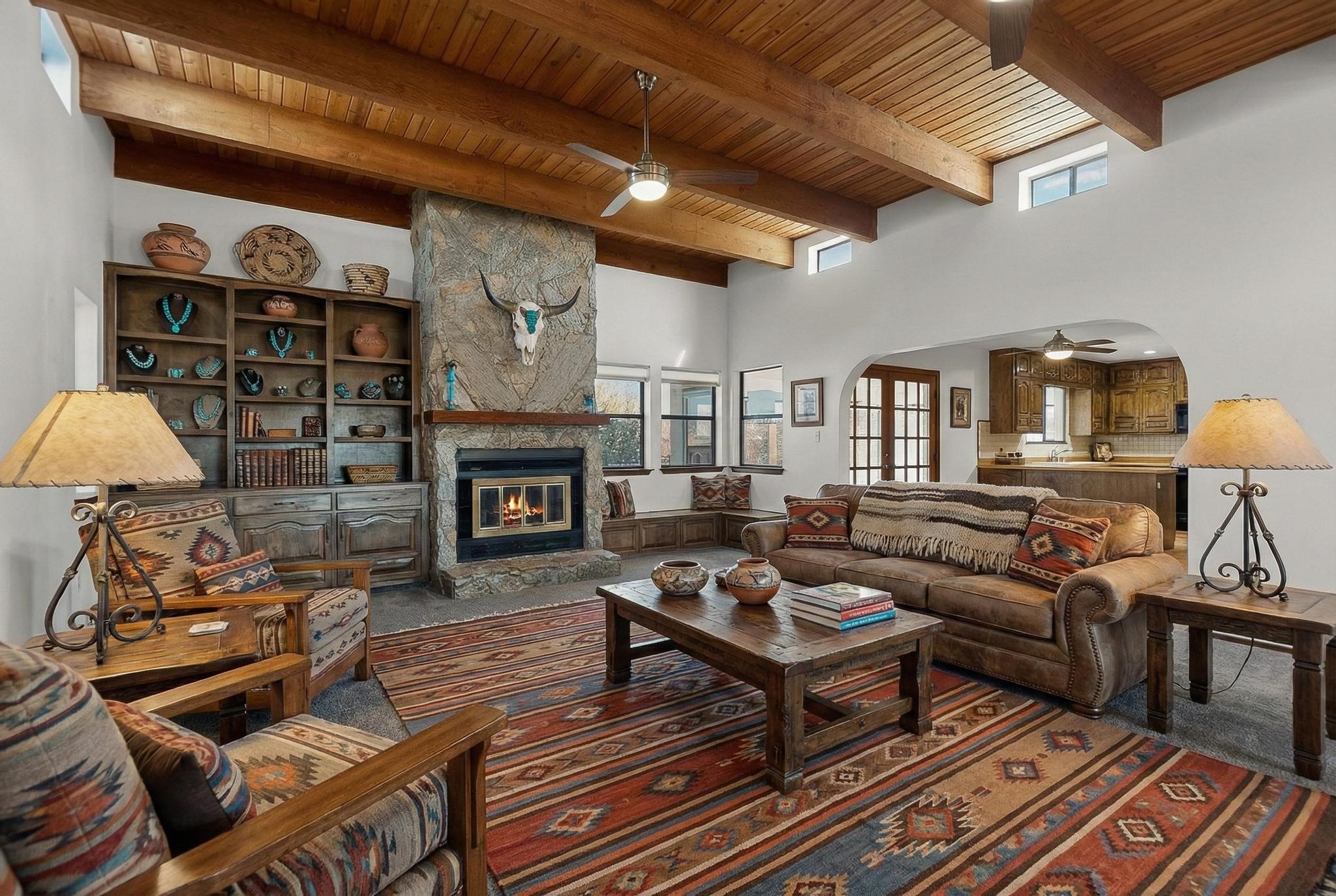 Thoughtfully designed approx. 2,500 sq ft, 3-bedroom plus flex room, 3-bath, 2-car garage home on a desirable double lot backing to open space, offering added privacy and beautiful views. The spacious living area, with room for an office or sitting area, features vaulted wood beam ceilings, a stone gas fireplace updated in 2023, and built-in shelving.The well-planned layout includes two primary bedrooms with en-suite baths, one with a walk-in closet, plus a third bedroom and an additional full bath. Bathrooms have been thoughtfully updated, including a remodeled primary bath with a walk-in shower. A sunroom, small office area off the kitchen, direct-access garage, and dedicated laundry room provide excellent flexibility for daily living.Notable improvements include a new furnace and water heater (2019), updated kitchen appliances and lighting, newer washer and dryer, insulated garage door, updated interior and exterior lighting, ceiling fans, window coverings, replaced window pulleys and screens, UV/heat-filtering window film, and new carpet in the living area and bedrooms. Additional amenities include marble flooring, forced air heating, central evaporative cooling, raised garden beds, fruit trees, and recent exterior updates.A wonderful opportunity to enjoy space, privacy, views, and relaxed Cochiti living. Please see the documents section for a complete list of updates and improvements.