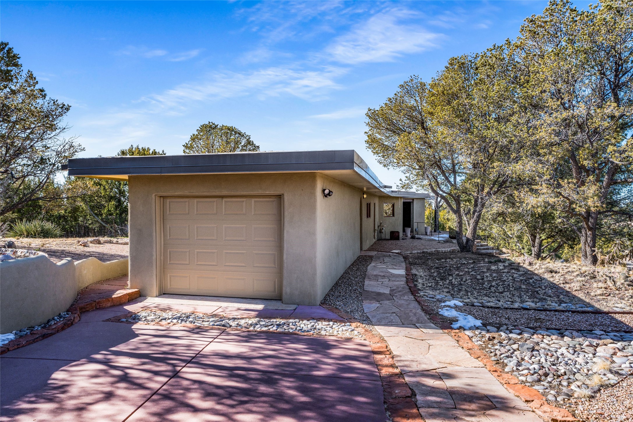 Situated on a desirable corner lot sits this lovely soft contemporary home with abundant natural light, concrete floors, tastefully landscaped yard and fabulous newer casita with attached two car garage.