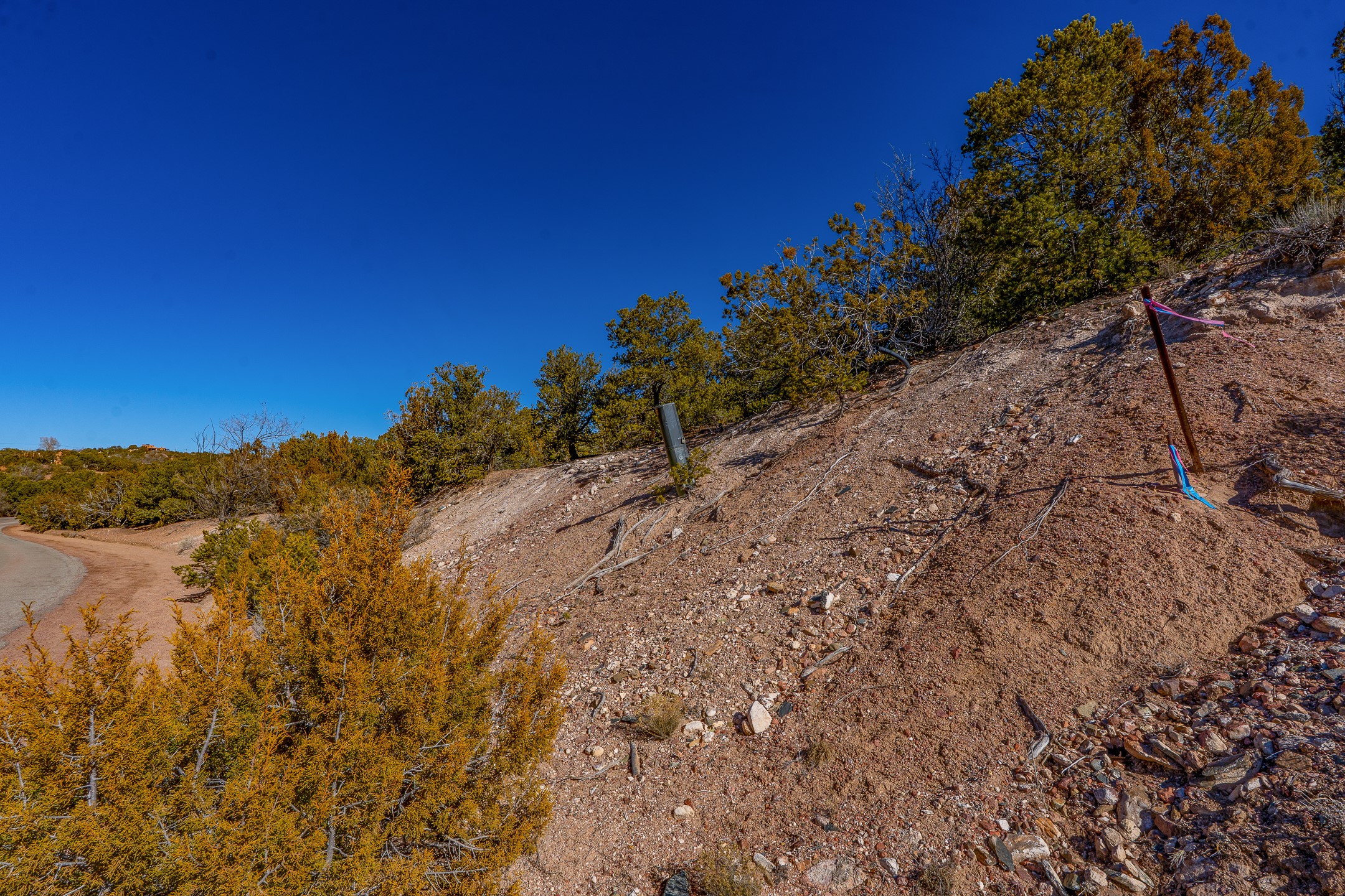 Beautiful, tree-covered North End lot located just off prestigious Barranca Road in the Cerro de Piedrasubdivision, offering reasonable covenants. Paved roads and quick, easy access to downtown Santa Fe.Utilities are available at the street; septic required. The property features ample flat, buildable areasand enjoys views of city lights as well as the Sandia and Ortiz Mountains. An ideal opportunity to buildyour Santa Fe dream home in a prime location.