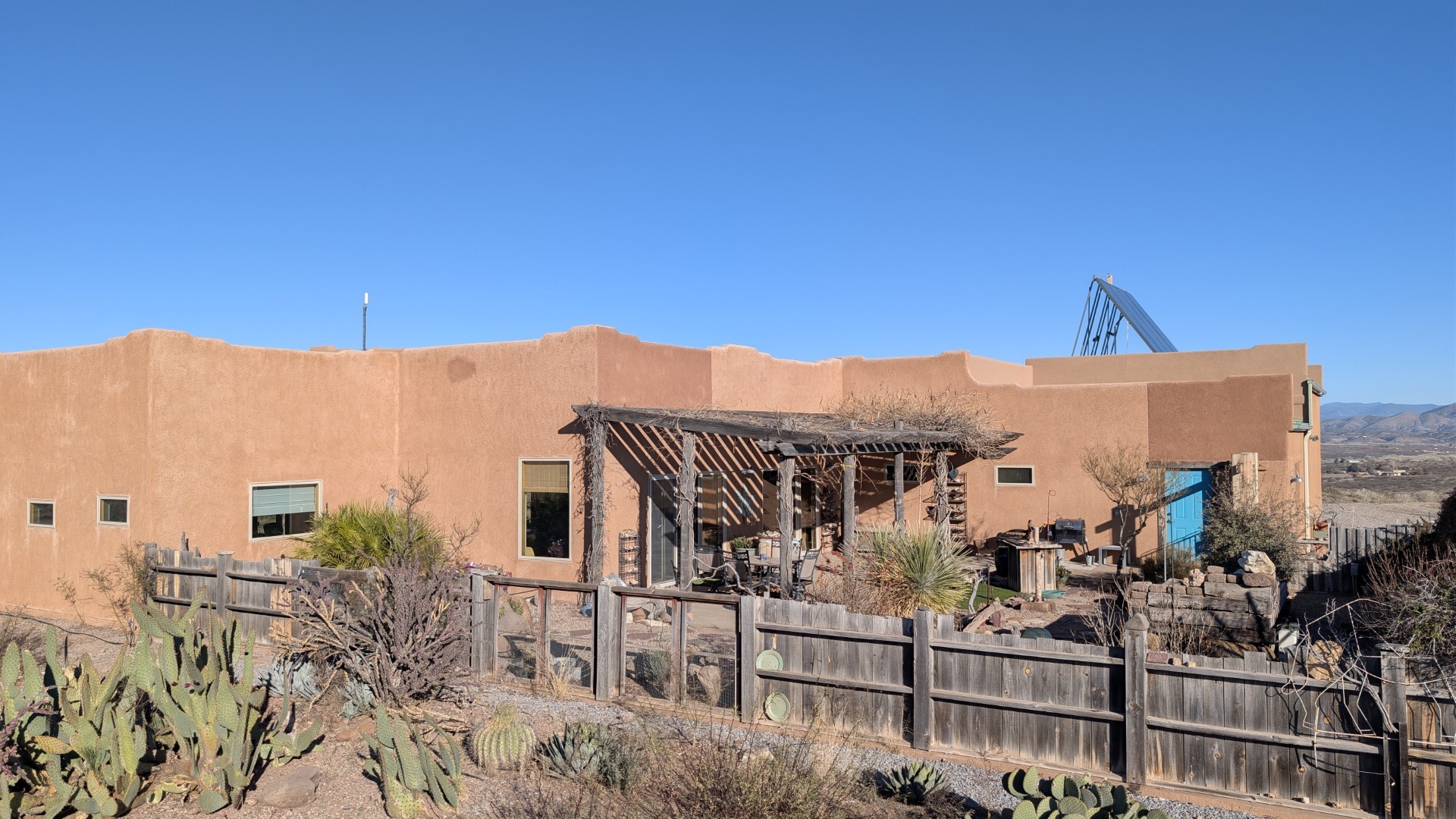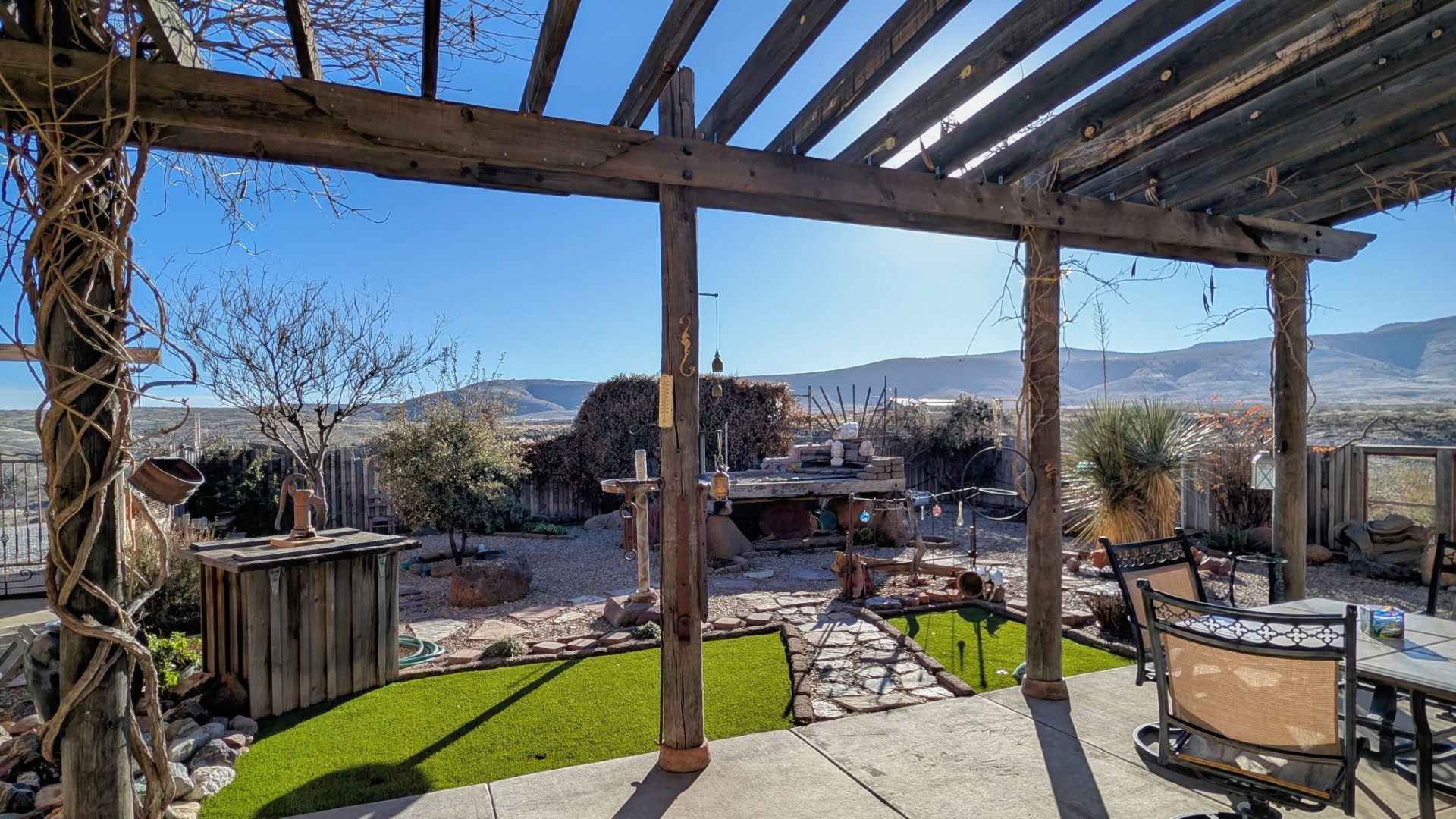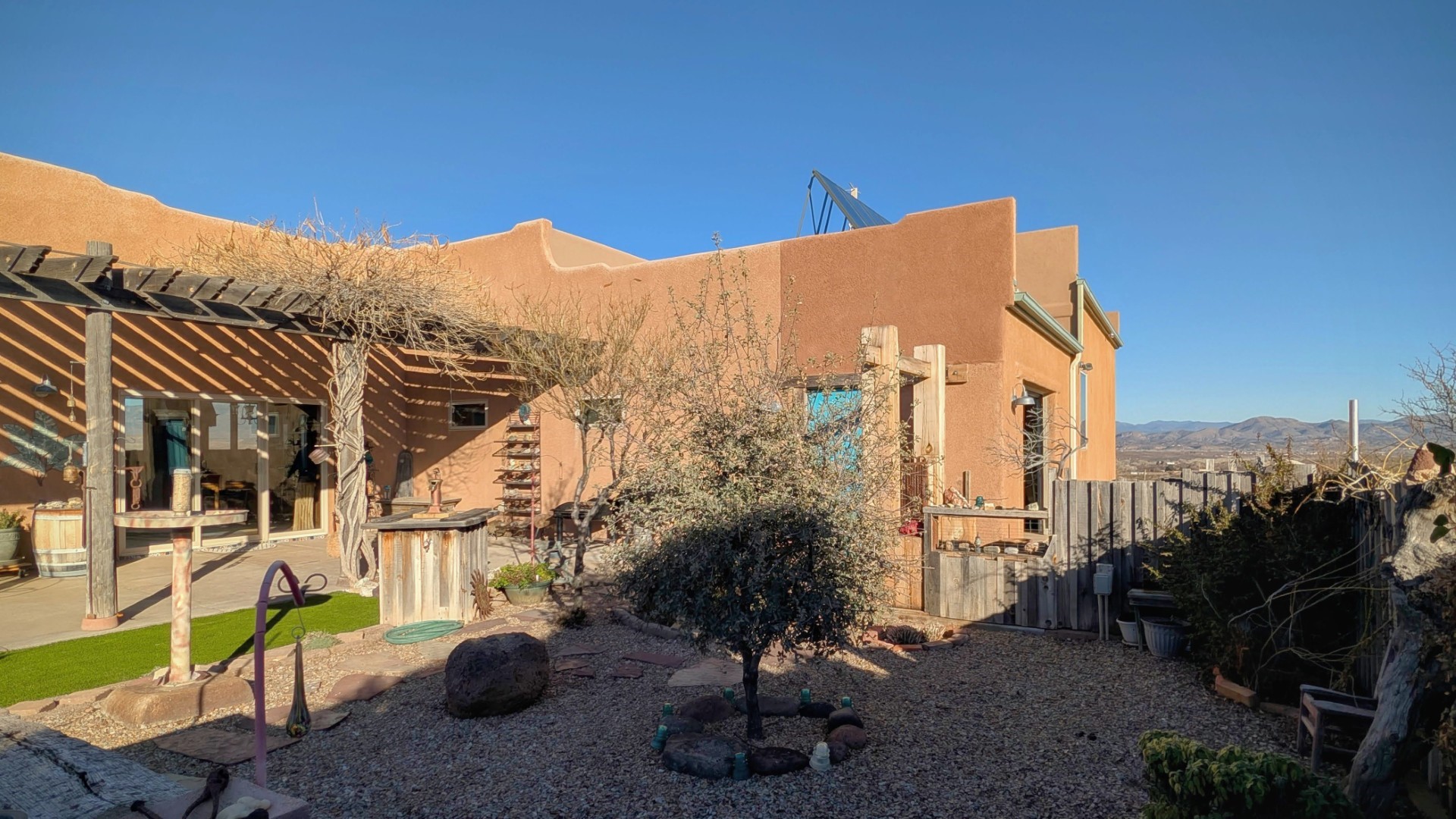 This is a one owner/builder home with natural light galore and many special upgrades. The open concept living/kitchen area feels very spacious, with over10ft ceilings and separated primary suite from the guest suite. Included are extra-large Marvin windows/sliders throughout and radiant floor heating. The front and back yards are tastefully landscaped with a 7-zone drip irrigation, making for easy maintenance. The backyard will bring year-round enjoyment with birds and southwest wildlife traversing the property regularly. The home sits up like a lookout, to enjoy the southwest sunsets and the Mogollon Rim in the distance. This is a must see if you are looking for a meticulously maintained single level home that is truly move in ready. in 2025, the seller added a major system upgrade to the grid-tied Solar with a SolArk 18KW inverter and 9.5 KW with 27 panels and 2 48V batteries. View, Privacy and improvements such as a Mueller RV Barn with full hookups and a developed Metal horse bays, with hay/tack room and frost proof faucet, with lighting in and out. Call today, about getting more specs and an appointment.