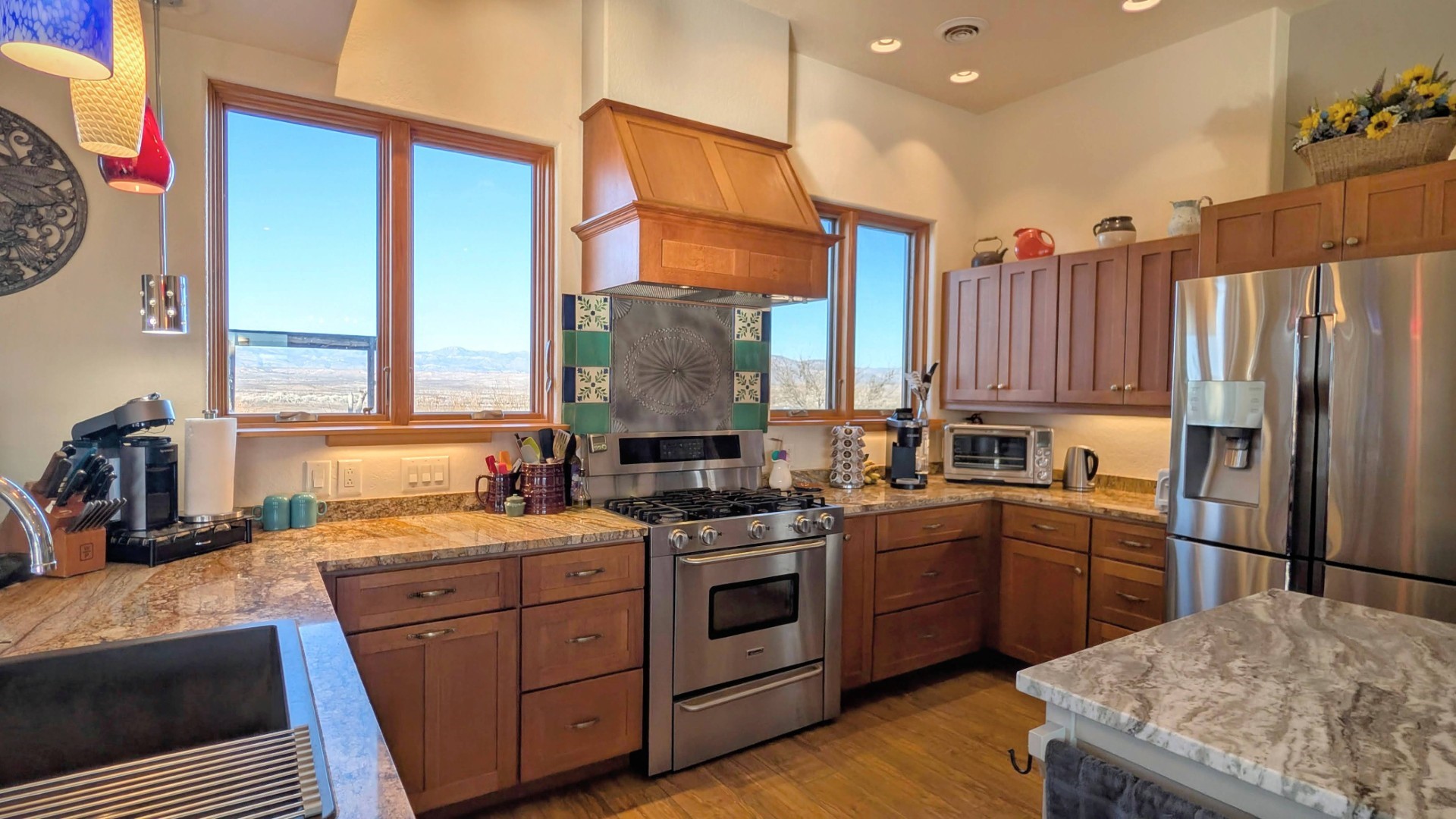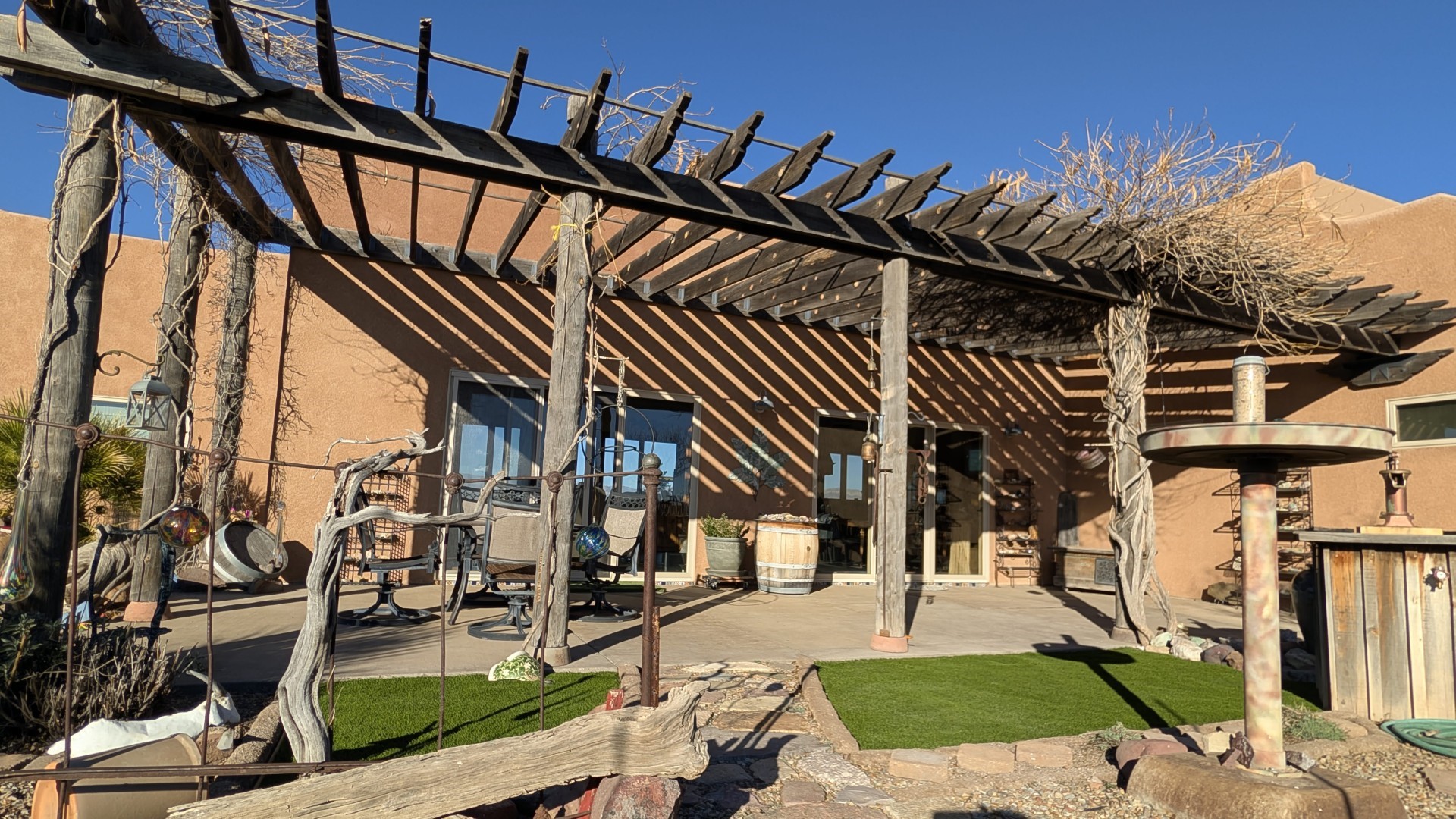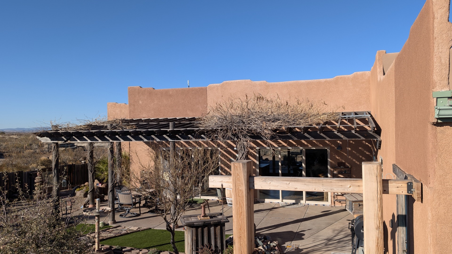 This is a one owner/builder home with natural light galore and many special upgrades. The open concept living/kitchen area feels very spacious, with over10ft ceilings and separated primary suite from the guest suite. Included are extra-large Marvin windows/sliders throughout and radiant floor heating. The front and back yards are tastefully landscaped with a 7-zone drip irrigation, making for easy maintenance. The backyard will bring year-round enjoyment with birds and southwest wildlife traversing the property regularly. The home sits up like a lookout, to enjoy the southwest sunsets and the Mogollon Rim in the distance. This is a must see if you are looking for a meticulously maintained single level home that is truly move in ready. in 2025, the seller added a major system upgrade to the grid-tied Solar with a SolArk 18KW inverter and 9.5 KW with 27 panels and 2 48V batteries. View, Privacy and improvements such as a Mueller RV Barn with full hookups and a developed Metal horse bays, with hay/tack room and frost proof faucet, with lighting in and out. Call today, about getting more specs and an appointment.
