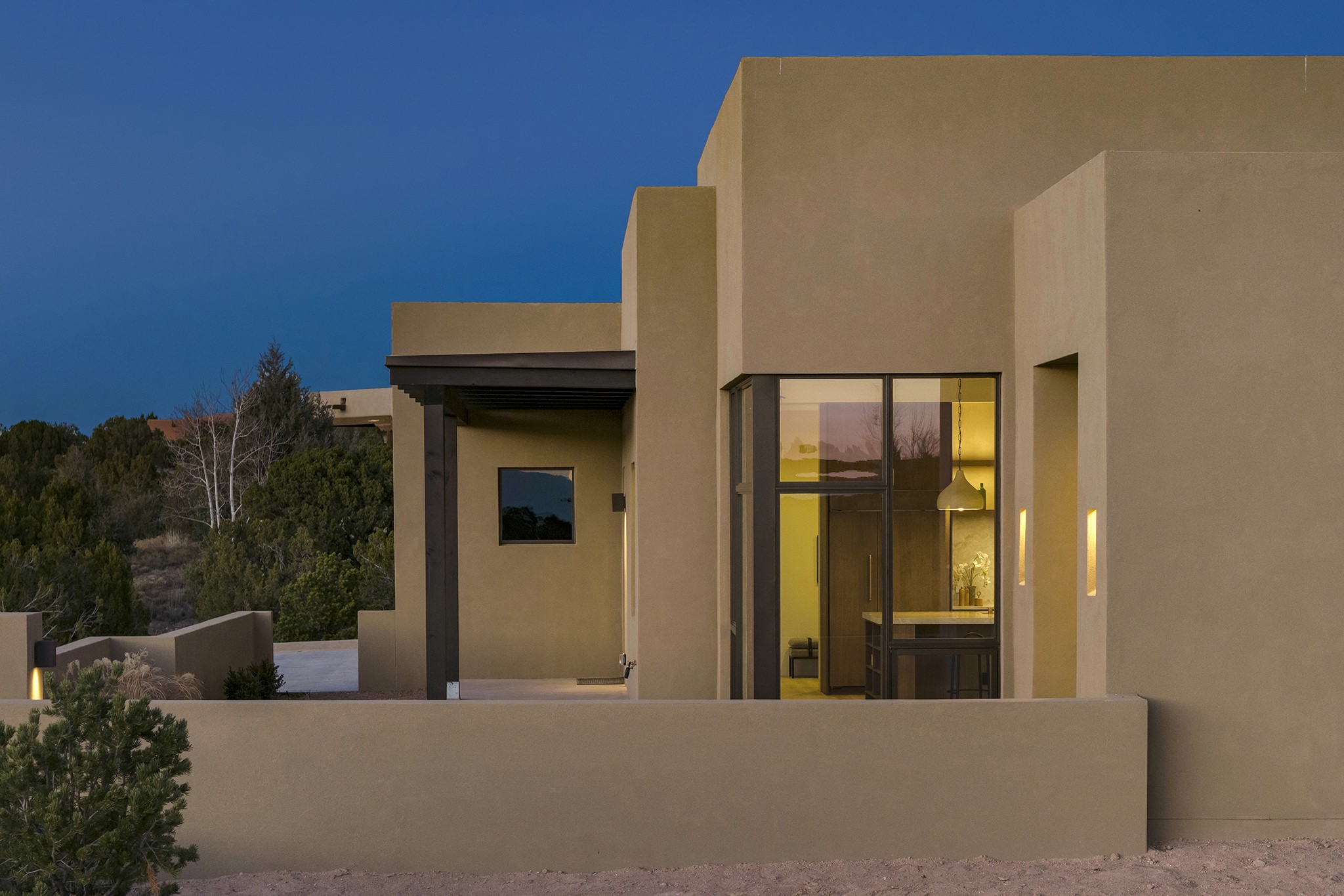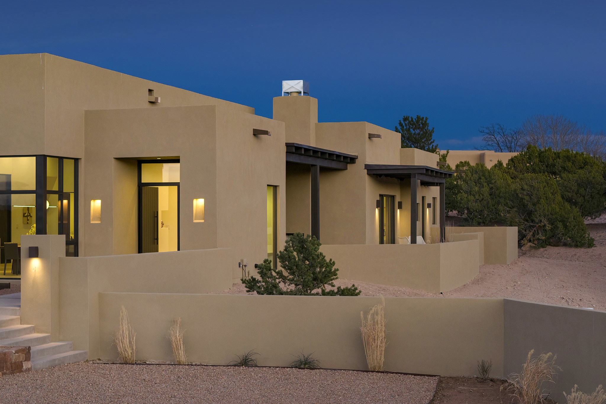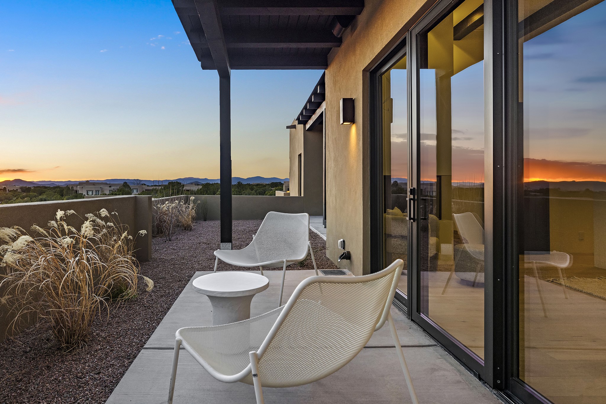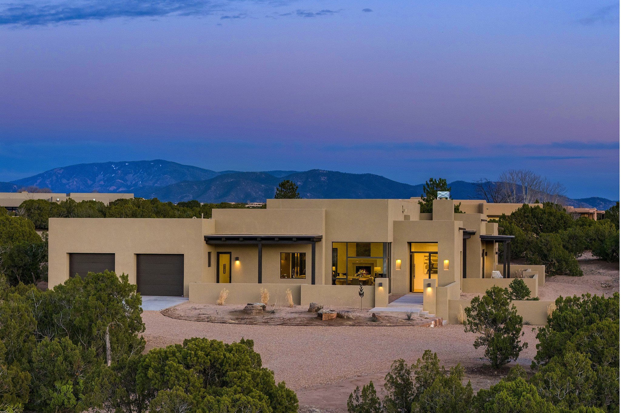 Ready to View! This new home has modern elegance and a supremely livable floor plan. Clean lines and high ceilings define the heart of the property while 20' pocketing multi slide doors lead you to the wonderful views. A single level masterpiece made for entertaining and a unique interior courtyard for contemplative relaxing are just part of this gracious, well designed floor plan. A gourmet kitchen boasts natural stone countertops, high end appliances, specialty lighting and custom wood shelving for the interior designer in you. The primary suite is spacious with an office/exercise space, heated floors in the bath and a luxurious soaking tub with its own private space. A media room, sound system, 3 bedrooms, 4 baths, and finished 3 car garage are just some of the exemplary features you will find in this sophisticated, smartly outfitted home.