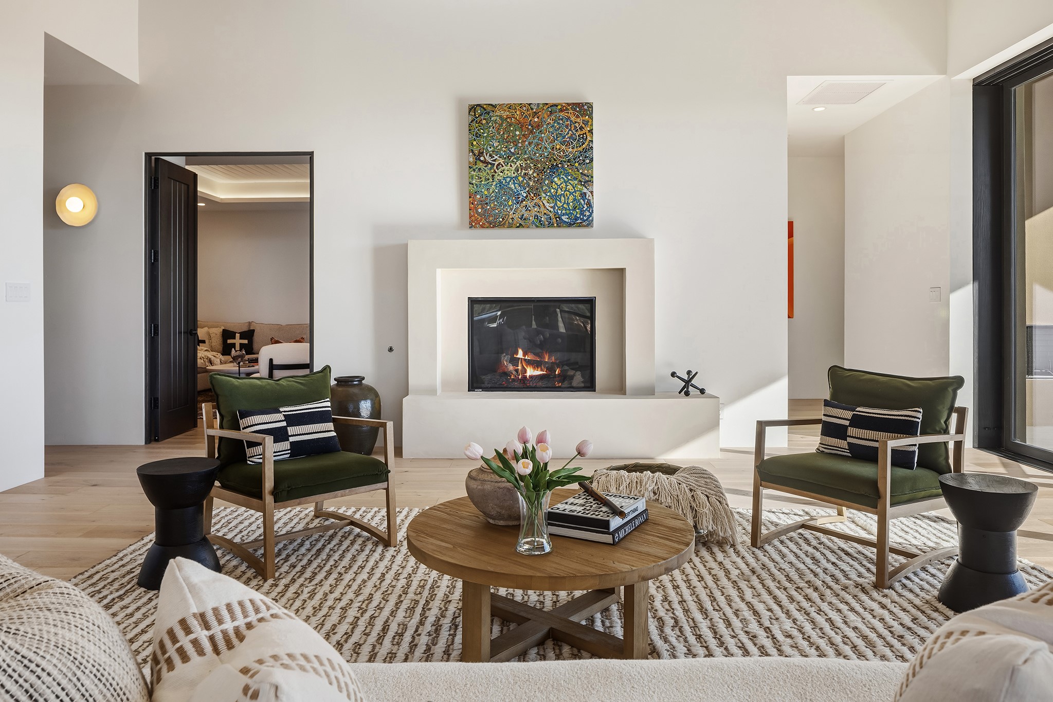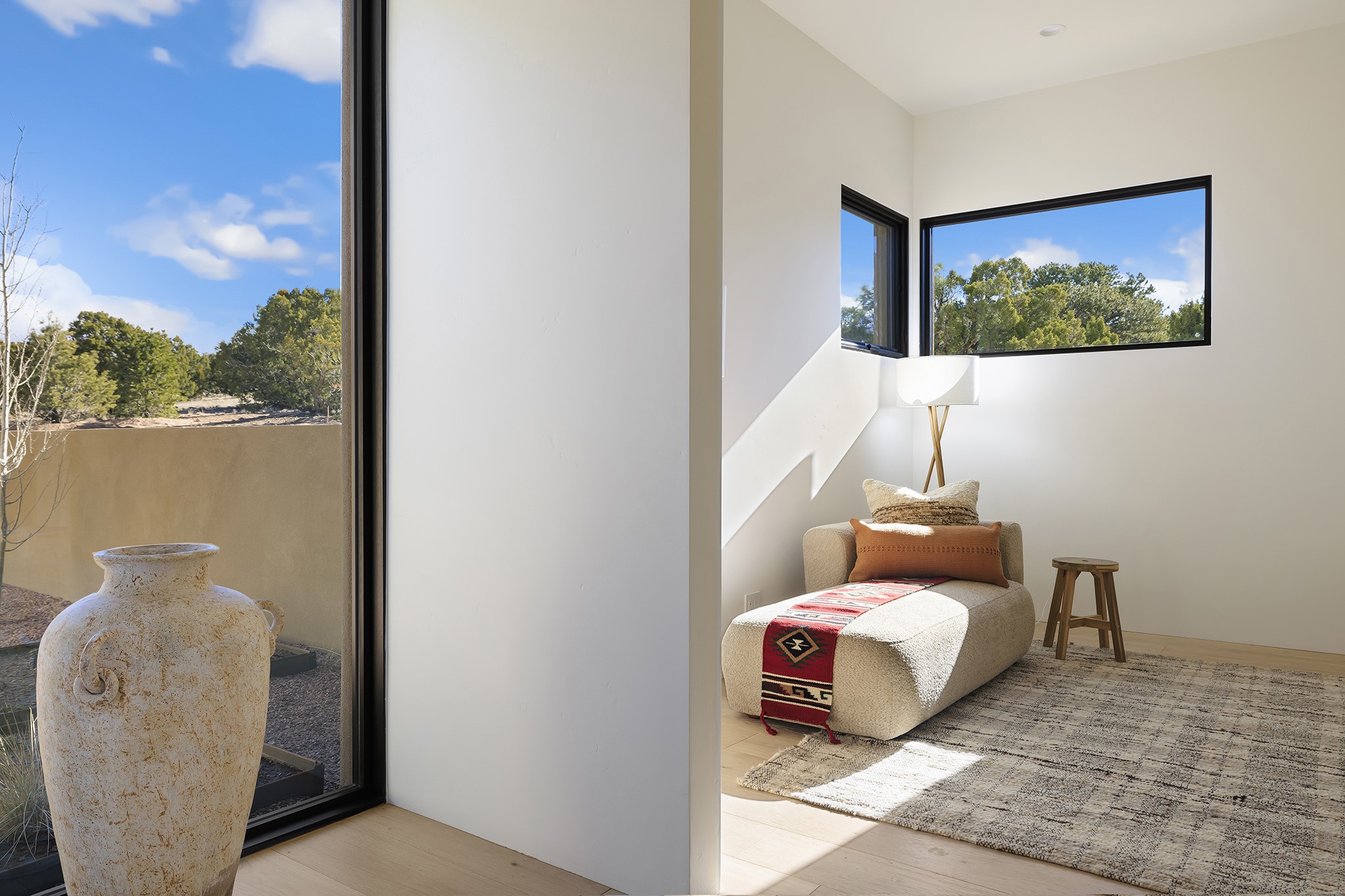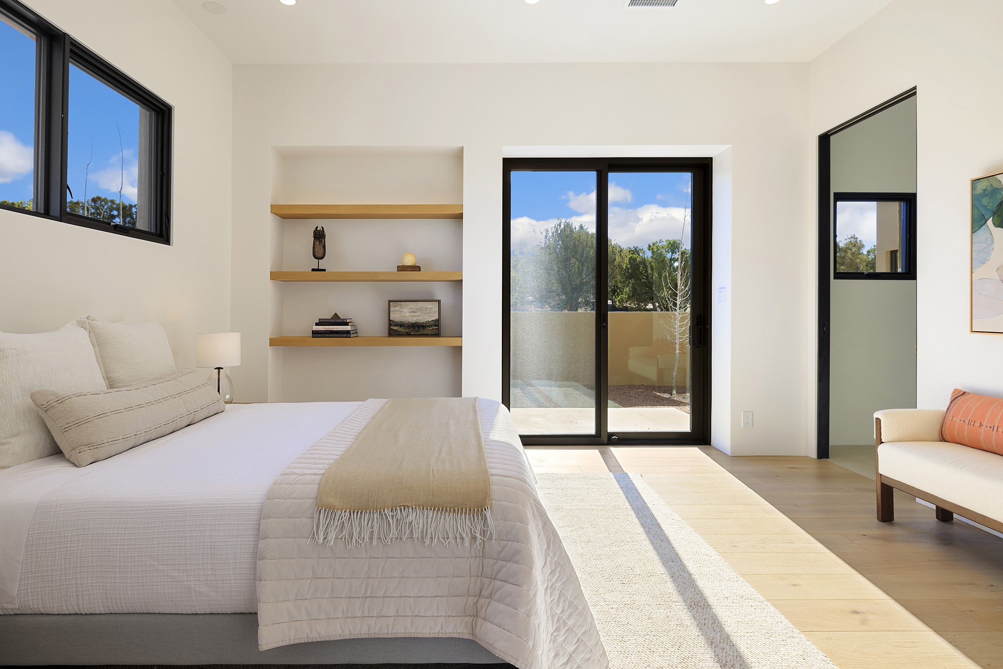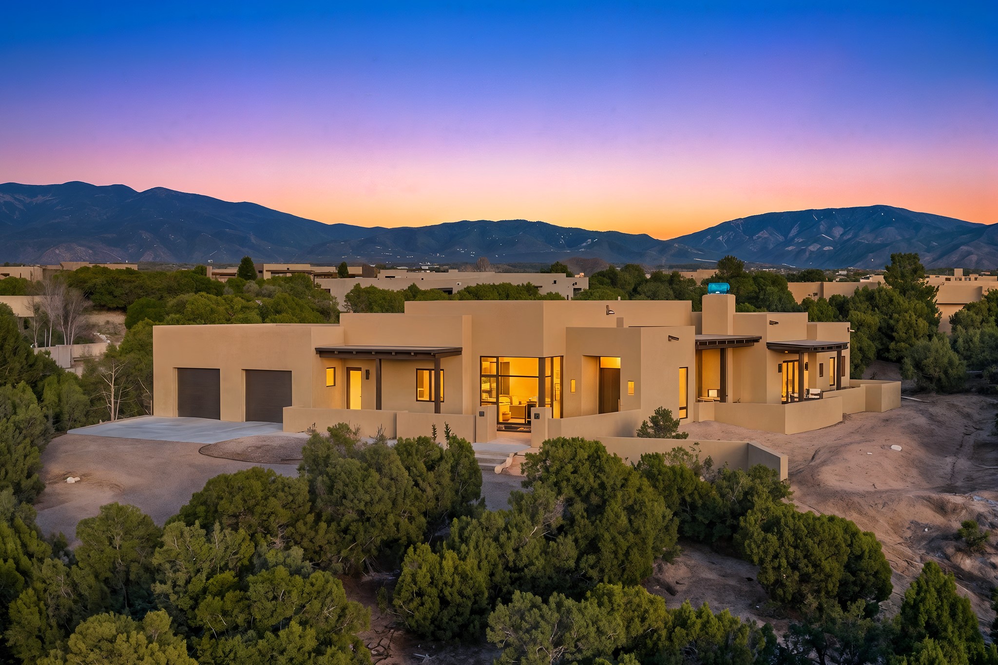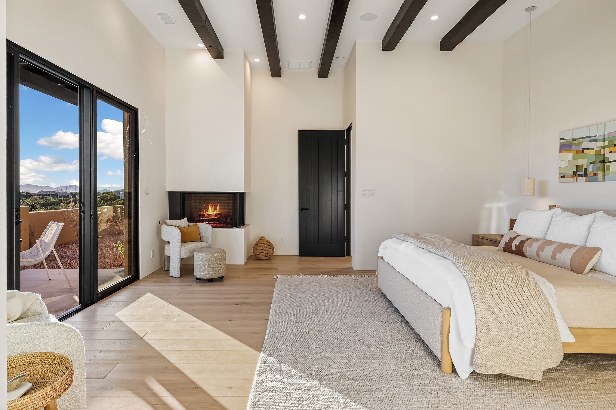 Ready to View! This new home has modern elegance and a supremely livable floor plan. Clean lines and high ceilings define the heart of the property while 20' pocketing multi slide doors lead you to the wonderful views. A single level masterpiece made for entertaining and a unique interior courtyard for contemplative relaxing are just part of this gracious, well designed floor plan. A gourmet kitchen boasts natural stone countertops, high end appliances, specialty lighting and custom wood shelving for the interior designer in you. The primary suite is spacious with an office/exercise space, heated floors in the bath and a luxurious soaking tub with its own private space. A media room, sound system, 3 bedrooms, 4 baths, and finished 3 car garage are just some of the exemplary features you will find in this sophisticated, smartly outfitted home.