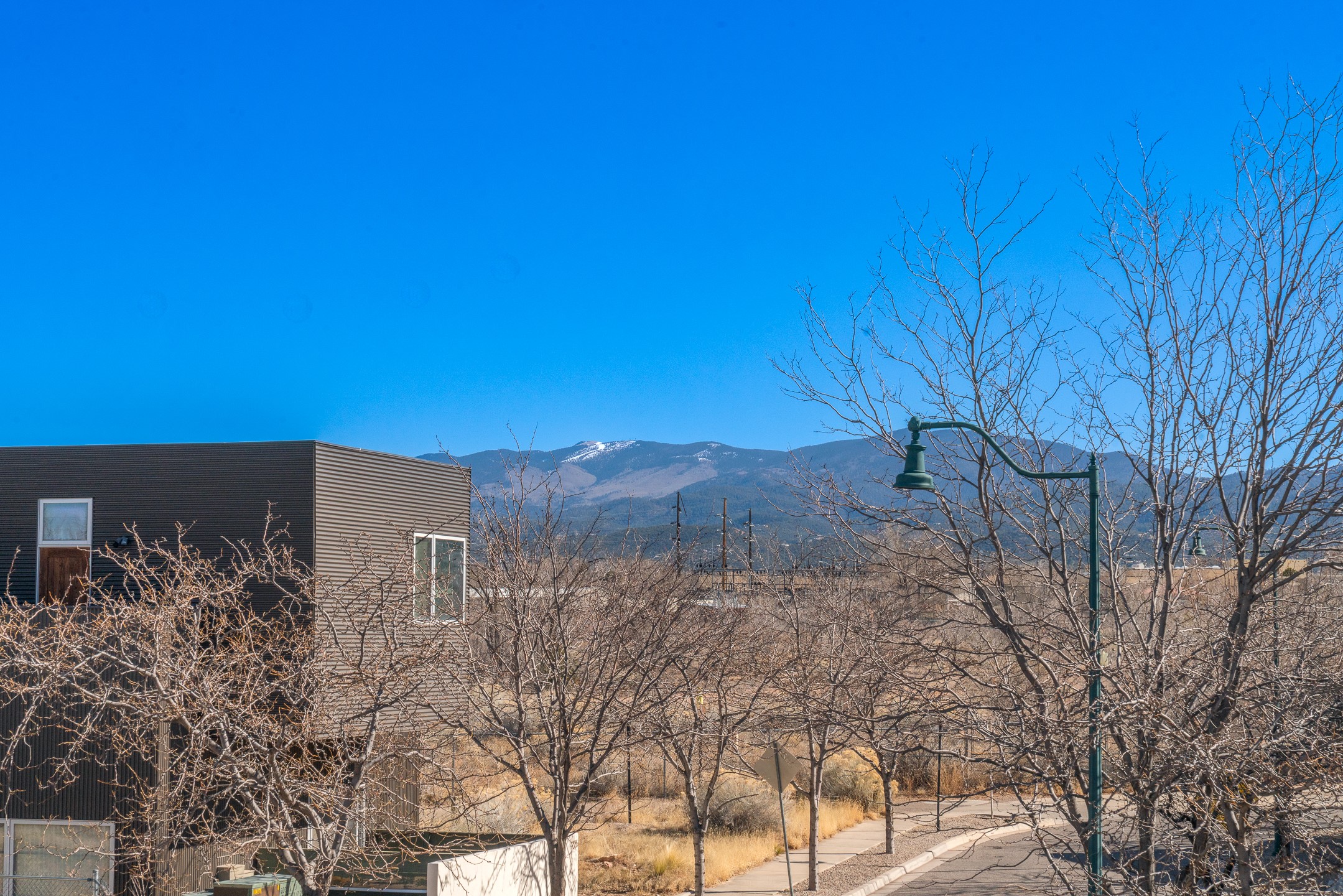 Old world craftsmanship blends seamlessly with modern luxury at the Estancia Collection, a unique compound located in the Baca Railyard District, minutes away from Santa Fe's top galleries and restaurants. This latest vision of renowned developer Mitch Menaker, is where every room becomes a work of living art. Curated by artisans from around the world, using hand cut semi-precious stone, tiles, iron, and rare wood finishes creates a truly immersive and peaceful experience, as if being hugged by nature. As you walk through the sanctuary, a warm greeting by a hand painted dancing Kachina panel inspiring abundance, health and balance meets you. Inside are hand carved teak doors, kitchen cabinets and ceiling treatments, along with petrified wood countertops. The stunning fireplace is crafted with hand cut sandstone in a bamboo pattern. The main level office/bedroom features antique stained glass doors opening to the ensuite bathroom's pink jasper stone sink and mirror sitting atop a beautiful hand carved teak vanity. A magical backlit white onyx staircase creates a dreamlike effect as you ascend to the bedroom suites above. The primary bedroom greets you through a charming speak easy door and a whimsical teak puzzle floor creates a sophisticated, yet playful tone. This light-filled sanctuary features a fireplace, wet bar and a one of a kind spa-like bathroom. The sinks, mirrors and bathtub are made of semi-precious tigers' eyes and the shower is made of back-lit onyx panels, creating a luxurious and luminous retreat. The second light-filled bedroom features a private balcony and bath with hand carved vanity and a mother of pearl stone sink and backsplash. The laundry room, located on the 2nd floor includes a dog shower covered with "happy dog" faces on each hand cut tile. Blending ancient techniques with the expert hands that brought them to life, the developer's vision has created the most unique visual and artistic sanctuary Santa Fe has seen in years.