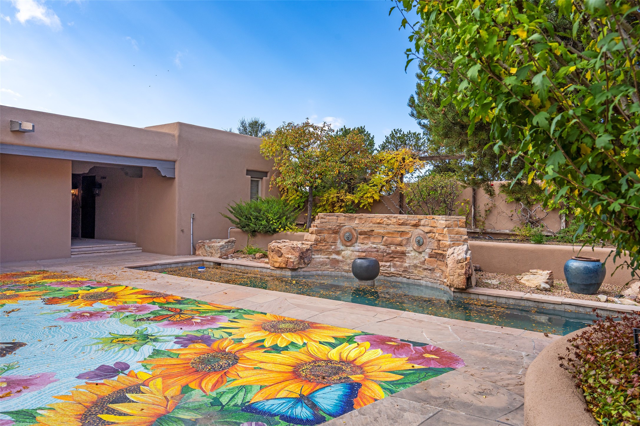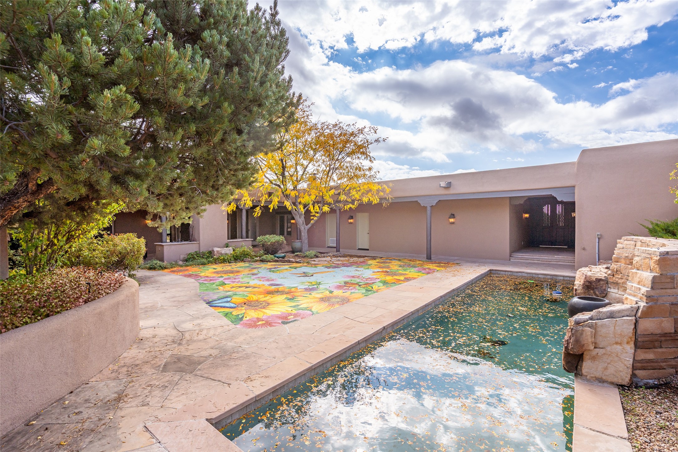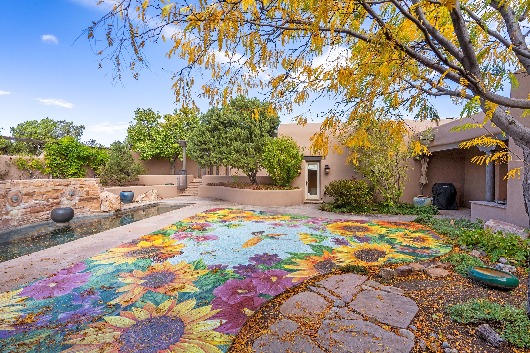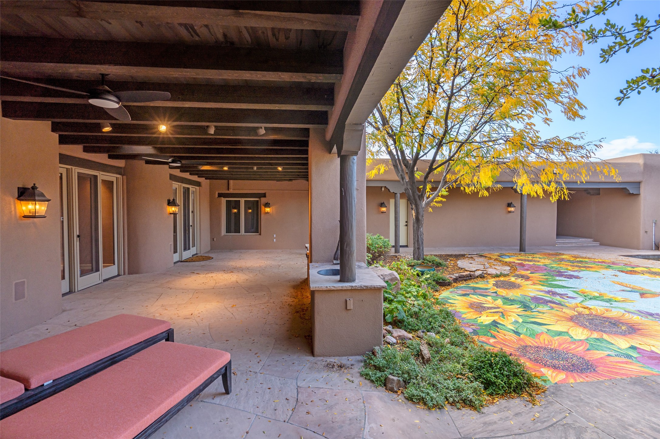 Expansive two bedroom home with guest house and studio. Exceptional views from your front porch and broad portal and large private back yard area perfect for entertaining. 230 square foot lap pool and hot tub for relaxing or entertaining. The main house has a grand foyer ready for art work with a back door showcasing the rear portal and back yard. The large kitchen has plenty of cabinet space, a butlers pantry, quartz counter tops, Wolf 5 burner stove, Cove Dishwasher, Subzero refrigerator, and a cozy banco/breakfast nook offset by a kiva fire place. Adjacent to the kitchen is a dining room that can easily seat 8 with nice views into the back courtyard and front yard. Down two steps past the office and large great room with fireplace to the massive main suite, full bathroom, soaking tub, two walk-in closets, sitting areas and easy access to the 8' hot tub. Guest house has a full kitchen and full bath. Detached studio ready for your endeavors. 2025 roof update with 5 year limited warranty on labor and materials. Must see this gem. Set up a showing today.