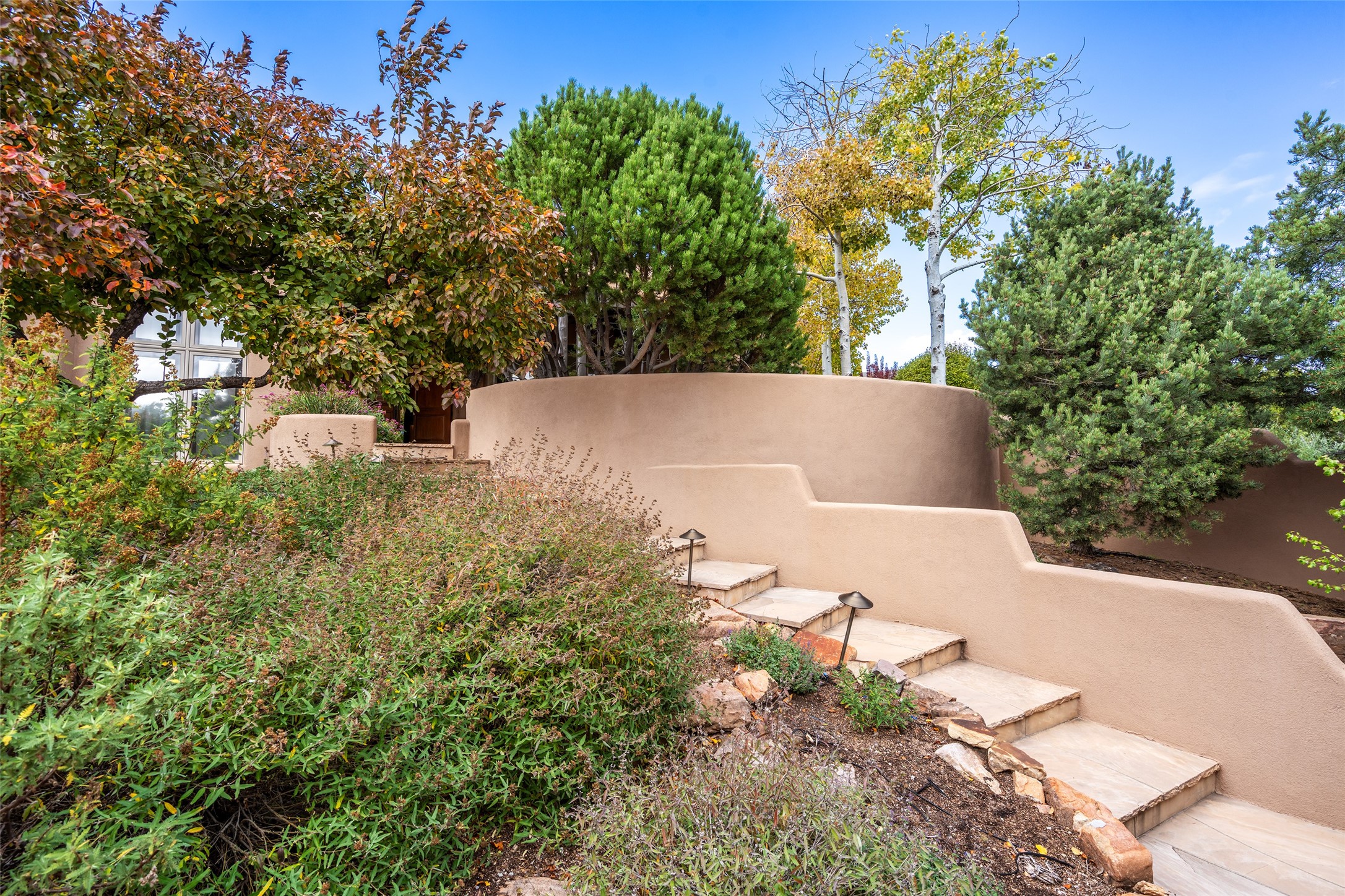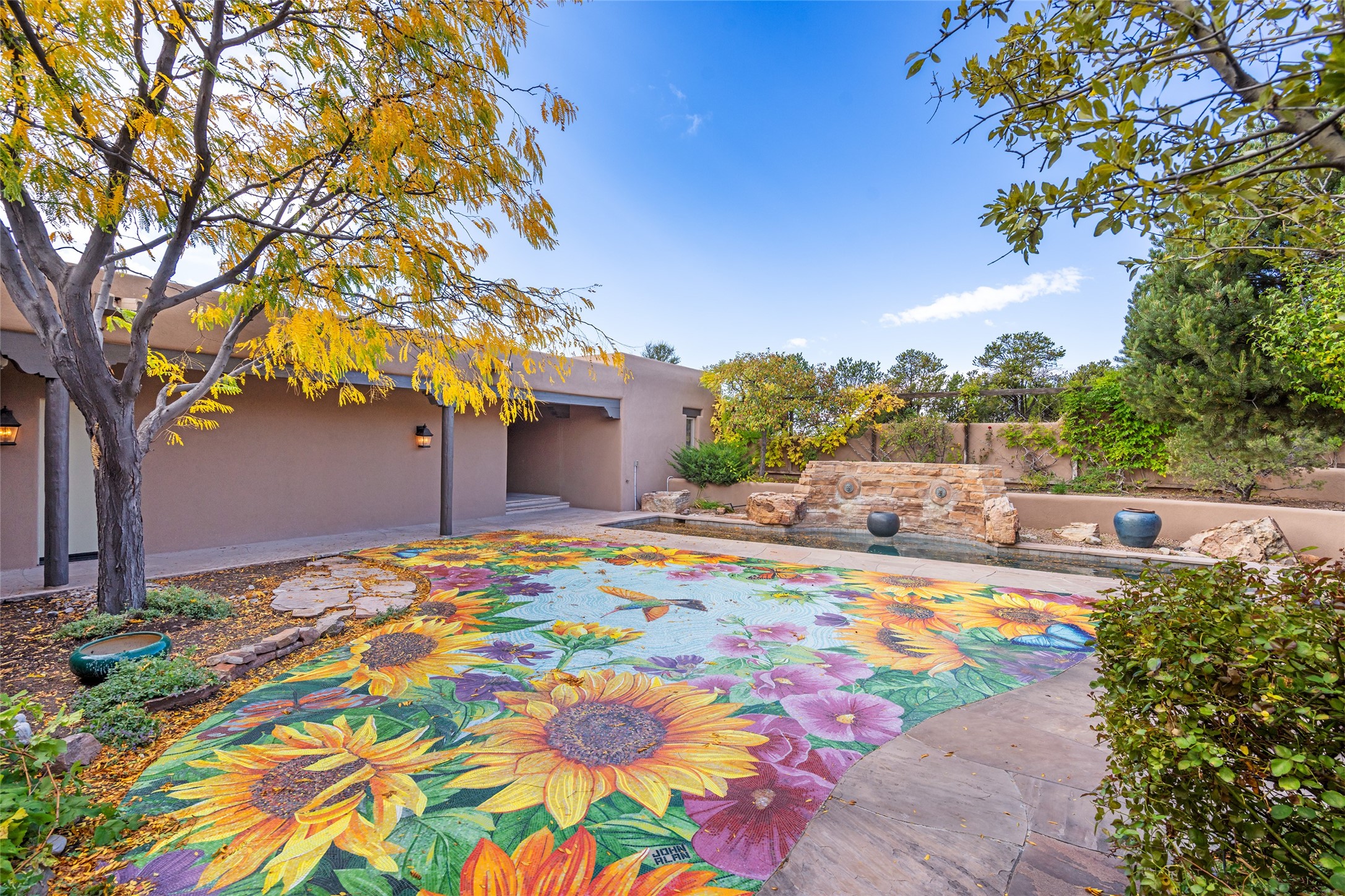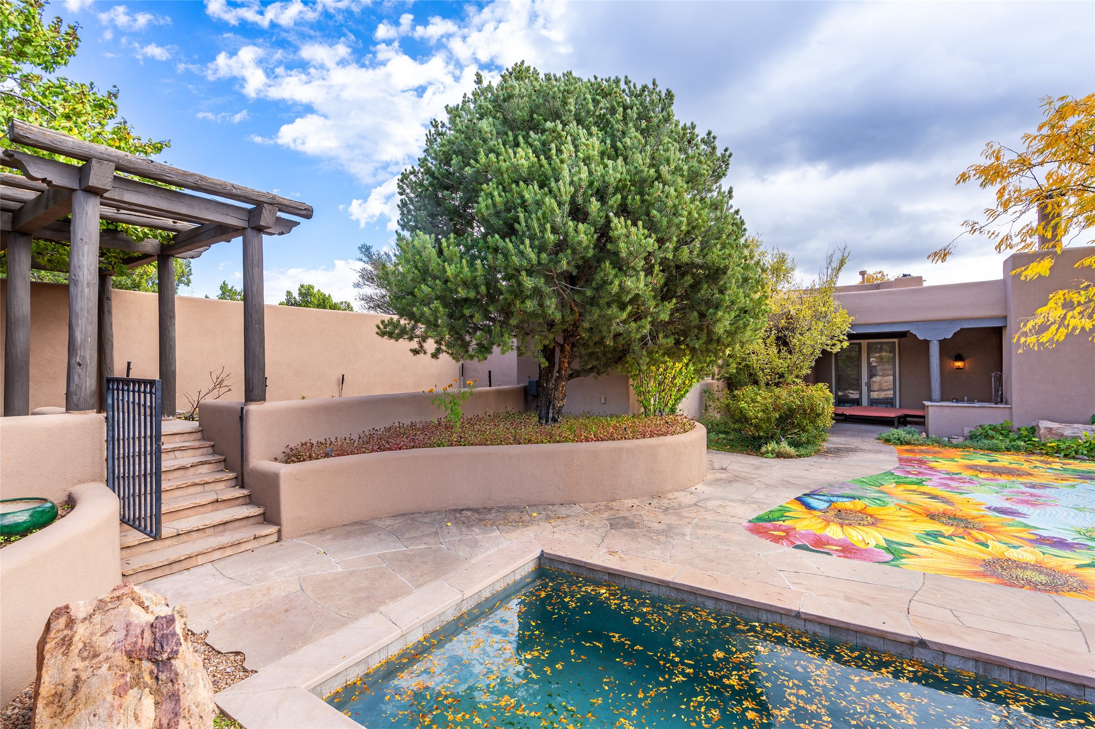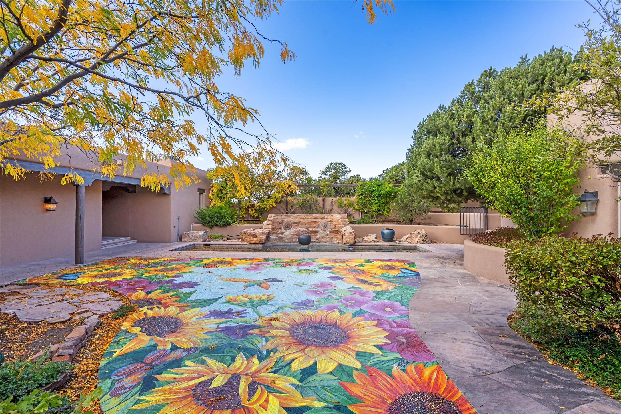 Expansive two bedroom home with guest house and studio. Exceptional views from your front porch and broad portal and large private back yard area perfect for entertaining. 230 square foot lap pool and hot tub for relaxing or entertaining. The main house has a grand foyer ready for art work with a back door showcasing the rear portal and back yard. The large kitchen has plenty of cabinet space, a butlers pantry, quartz counter tops, Wolf 5 burner stove, Cove Dishwasher, Subzero refrigerator, and a cozy banco/breakfast nook offset by a kiva fire place. Adjacent to the kitchen is a dining room that can easily seat 8 with nice views into the back courtyard and front yard. Down two steps past the office and large great room with fireplace to the massive main suite, full bathroom, soaking tub, two walk-in closets, sitting areas and easy access to the 8' hot tub. Guest house has a full kitchen and full bath. Detached studio ready for your endeavors. 2025 roof update with 5 year limited warranty on labor and materials. Must see this gem. Set up a showing today.