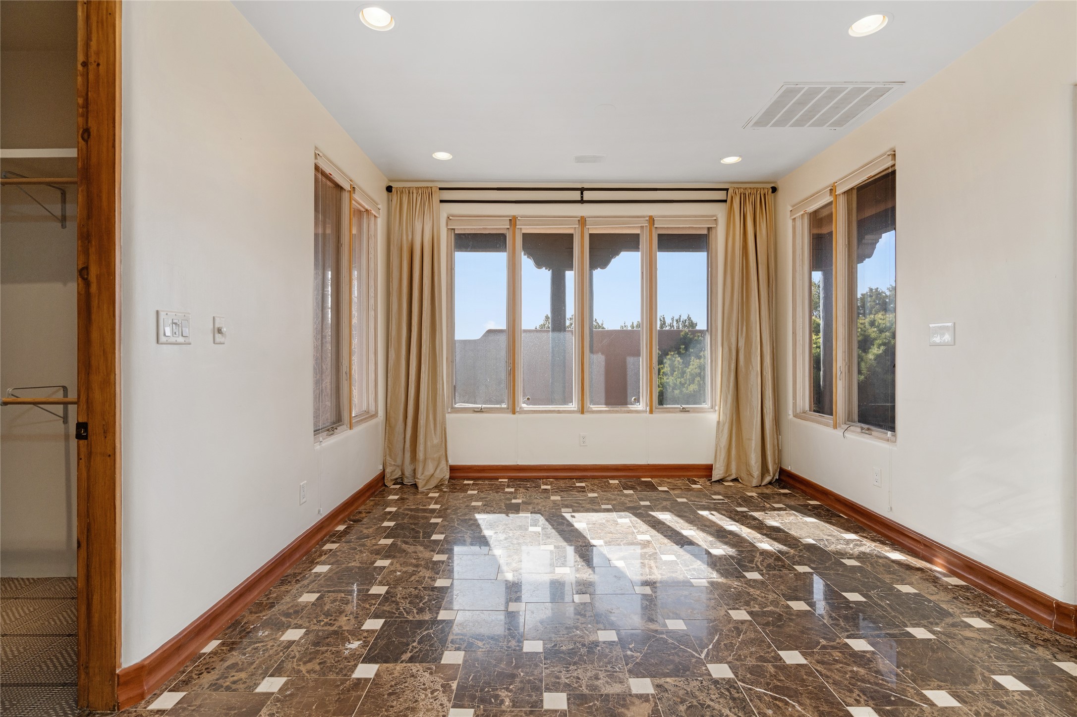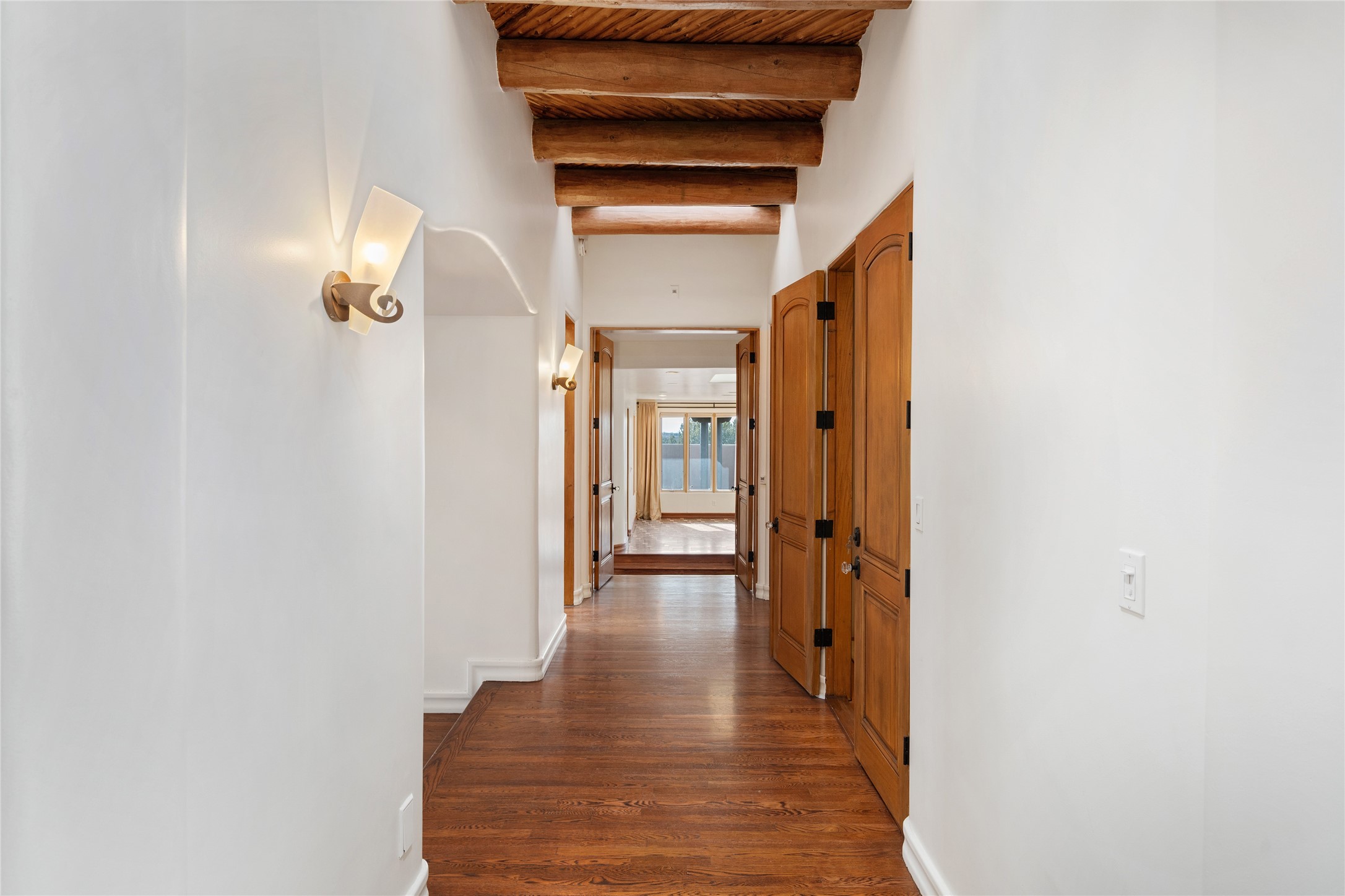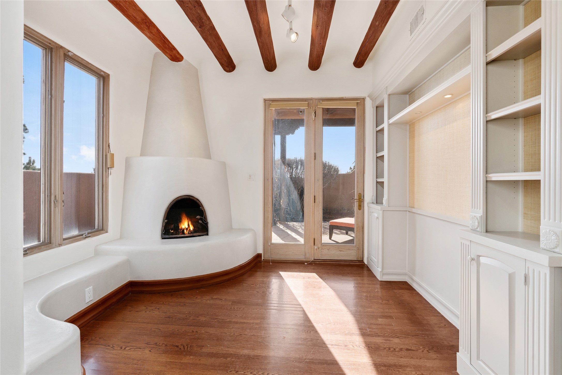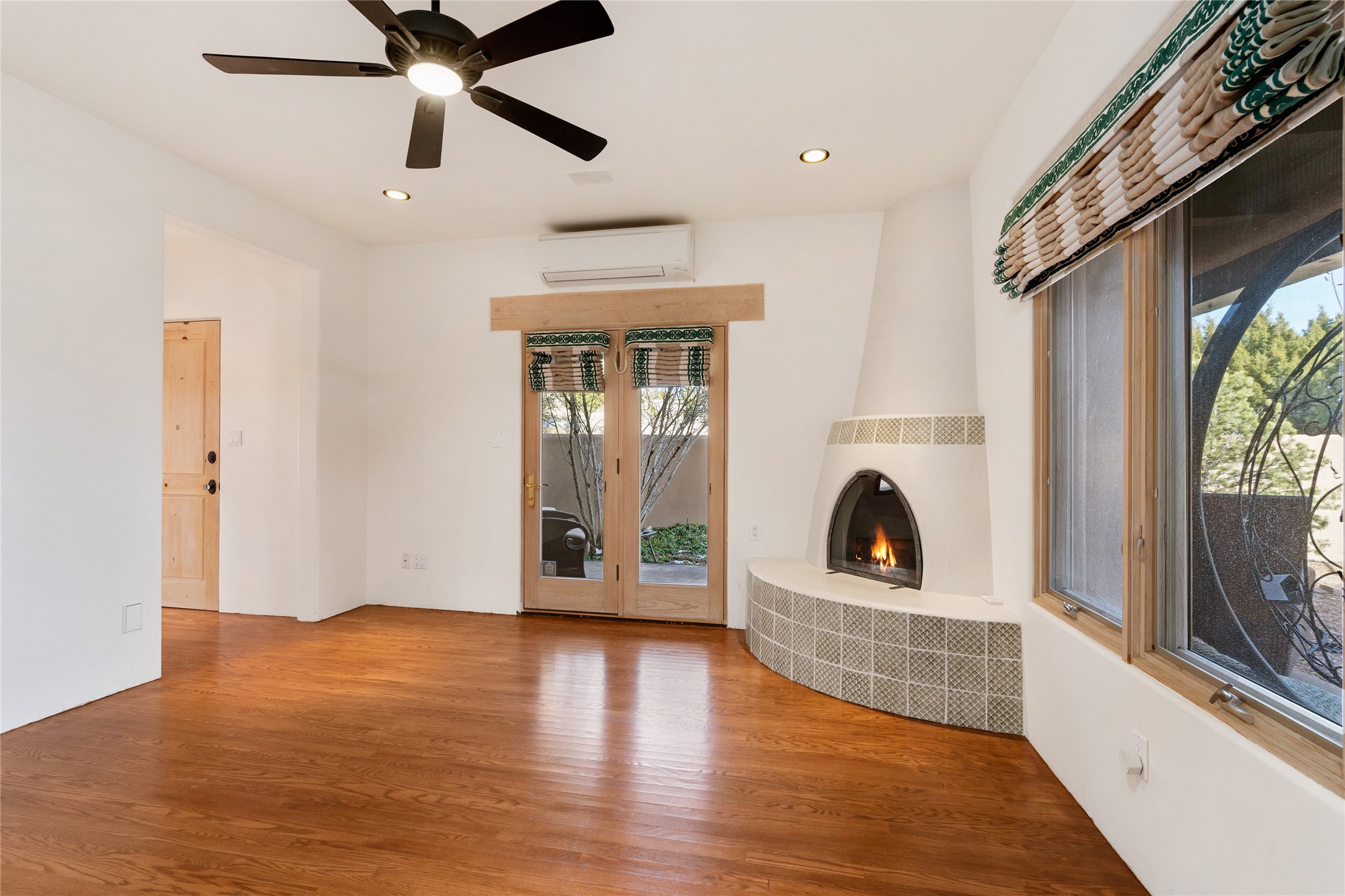 Expansive two bedroom home with guest house and studio. Exceptional views from your front porch and broad portal and large private back yard area perfect for entertaining. 230 square foot lap pool and hot tub for relaxing or entertaining. The main house has a grand foyer ready for art work with a back door showcasing the rear portal and back yard. The large kitchen has plenty of cabinet space, a butlers pantry, quartz counter tops, Wolf 5 burner stove, Cove Dishwasher, Subzero refrigerator, and a cozy banco/breakfast nook offset by a kiva fire place. Adjacent to the kitchen is a dining room that can easily seat 8 with nice views into the back courtyard and front yard. Down two steps past the office and large great room with fireplace to the massive main suite, full bathroom, soaking tub, two walk-in closets, sitting areas and easy access to the 8' hot tub. Guest house has a full kitchen and full bath. Detached studio ready for your endeavors. 2025 roof update with 5 year limited warranty on labor and materials. Must see this gem. Set up a showing today.