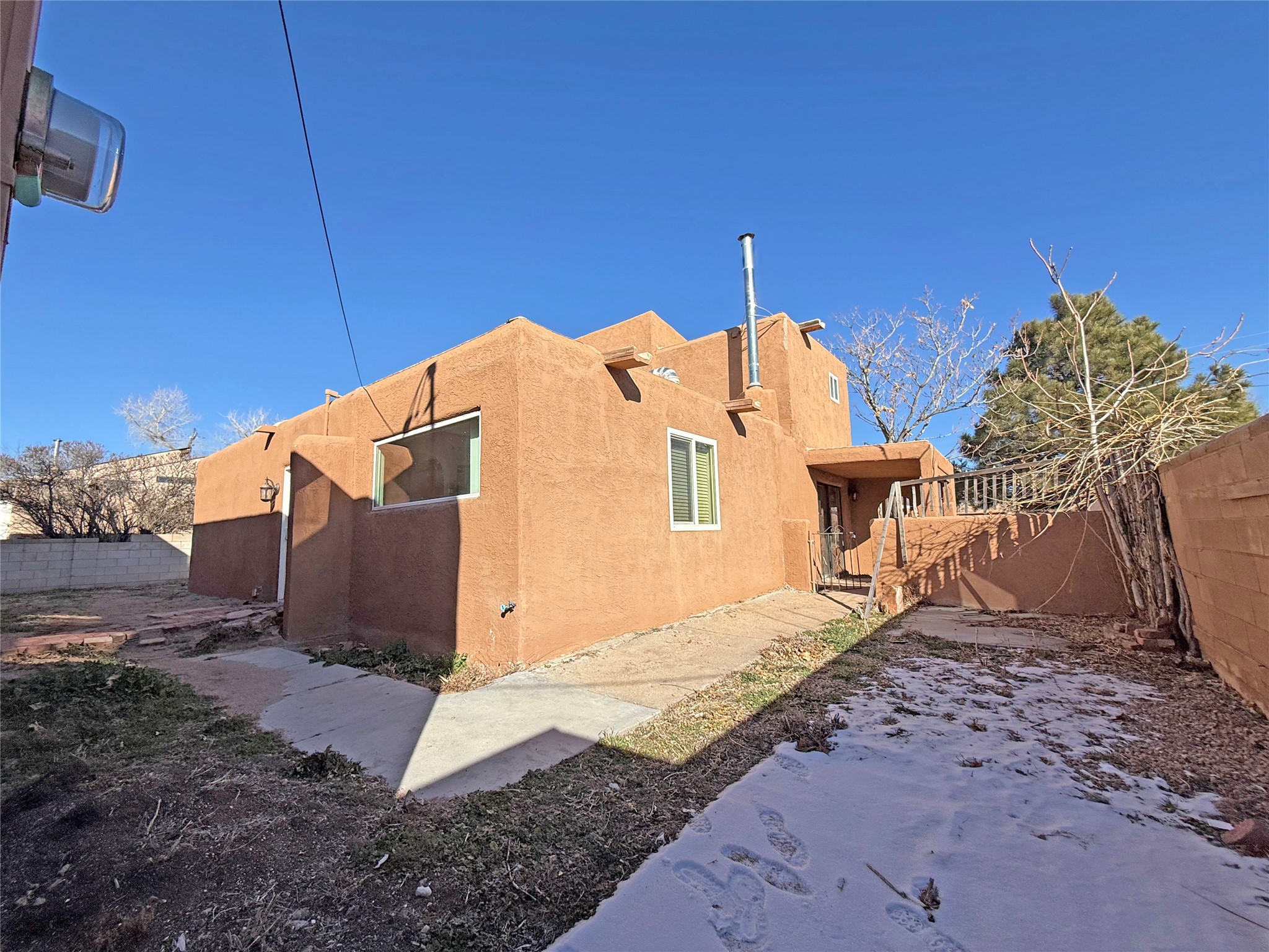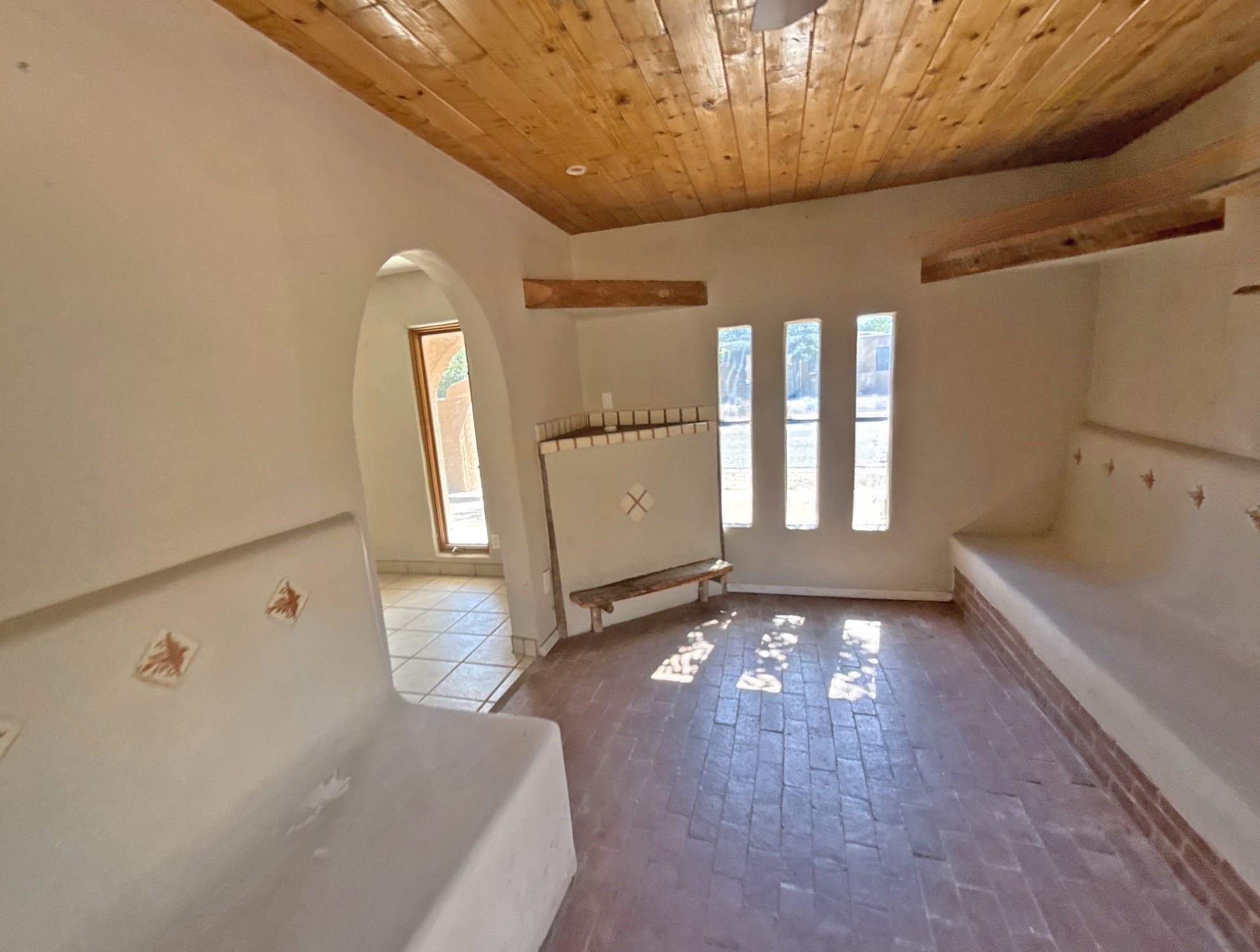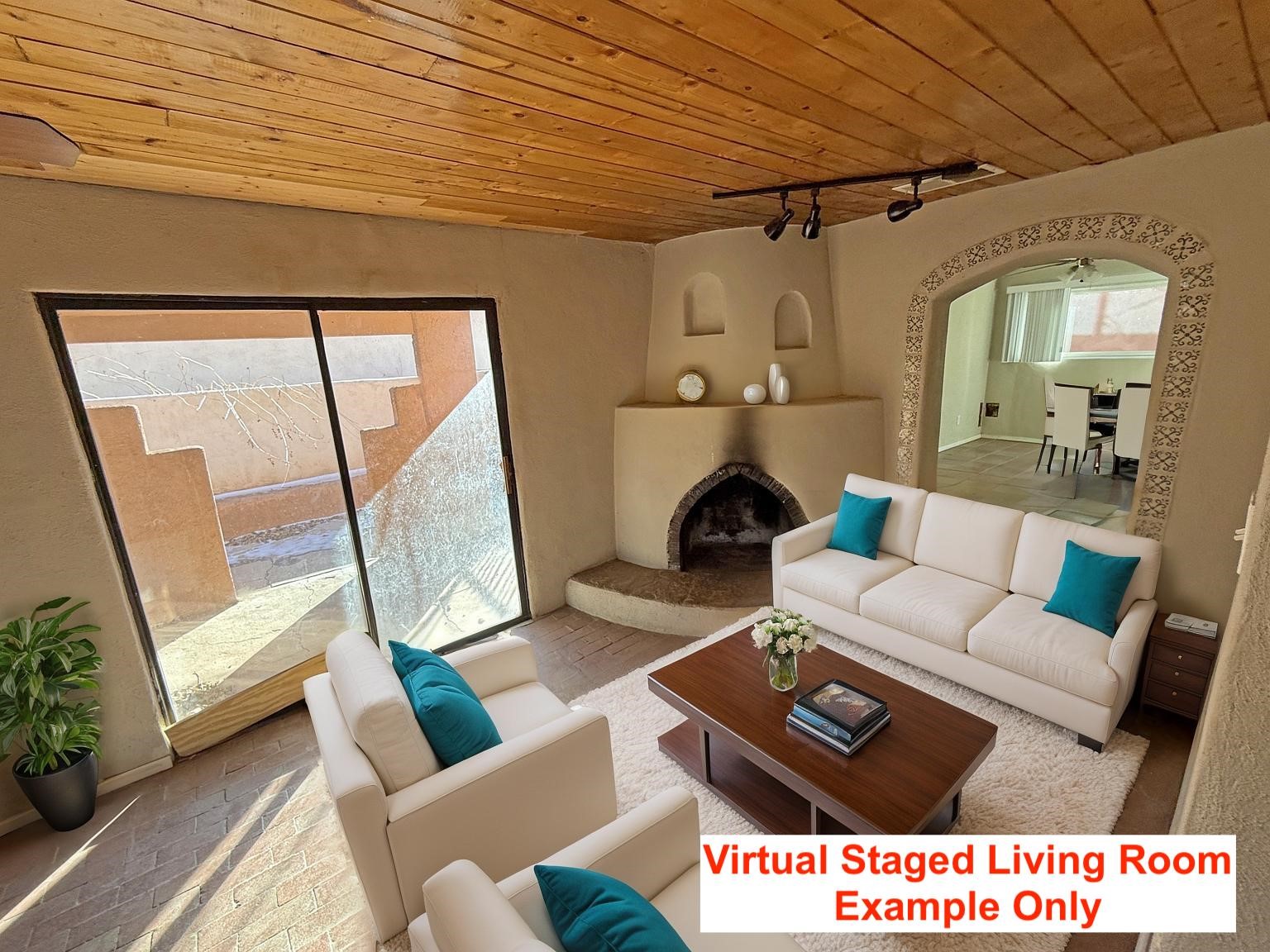 Authentic Pueblo-style home in Santa Fe showcasing traditional Southwestern design, including wood vigas and a classic kiva fireplace. This two-story residence offers 3 bedrooms and 2 baths with warmAuthentic Pueblo-style home in Santa Fe showcasing traditional Southwestern design, including wood vigas and a classic kiva fireplace. This two-story residence offers 3 bedrooms and 2 baths with warm architectural character and functional living spaces. A large garage/workshop provides excellent storage or workspace, complemented by ample street parking for guests. Owner-occupant buyers only for the first 20 days of marketing. Buyer must sign an owner-occupancy certification.
