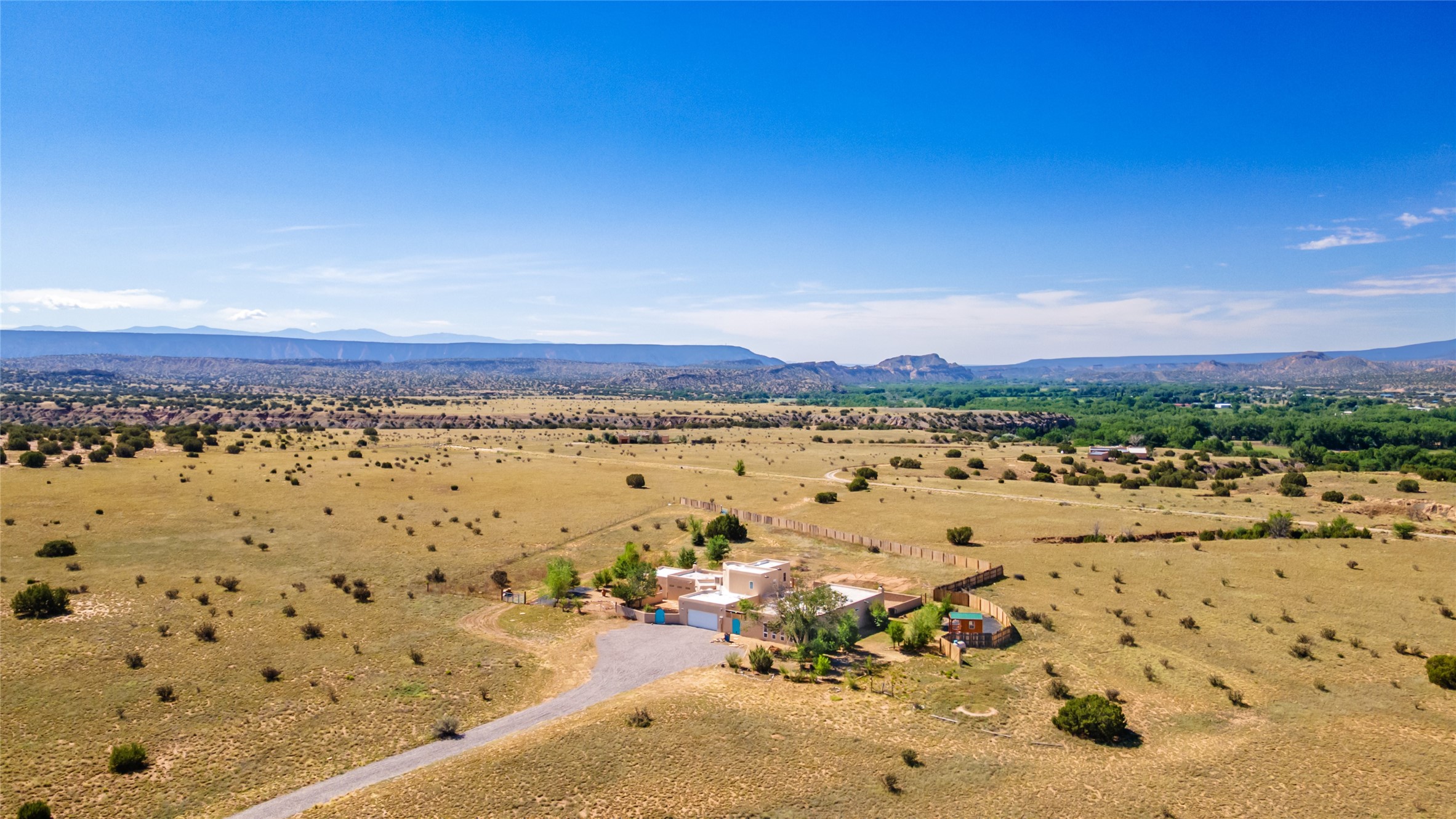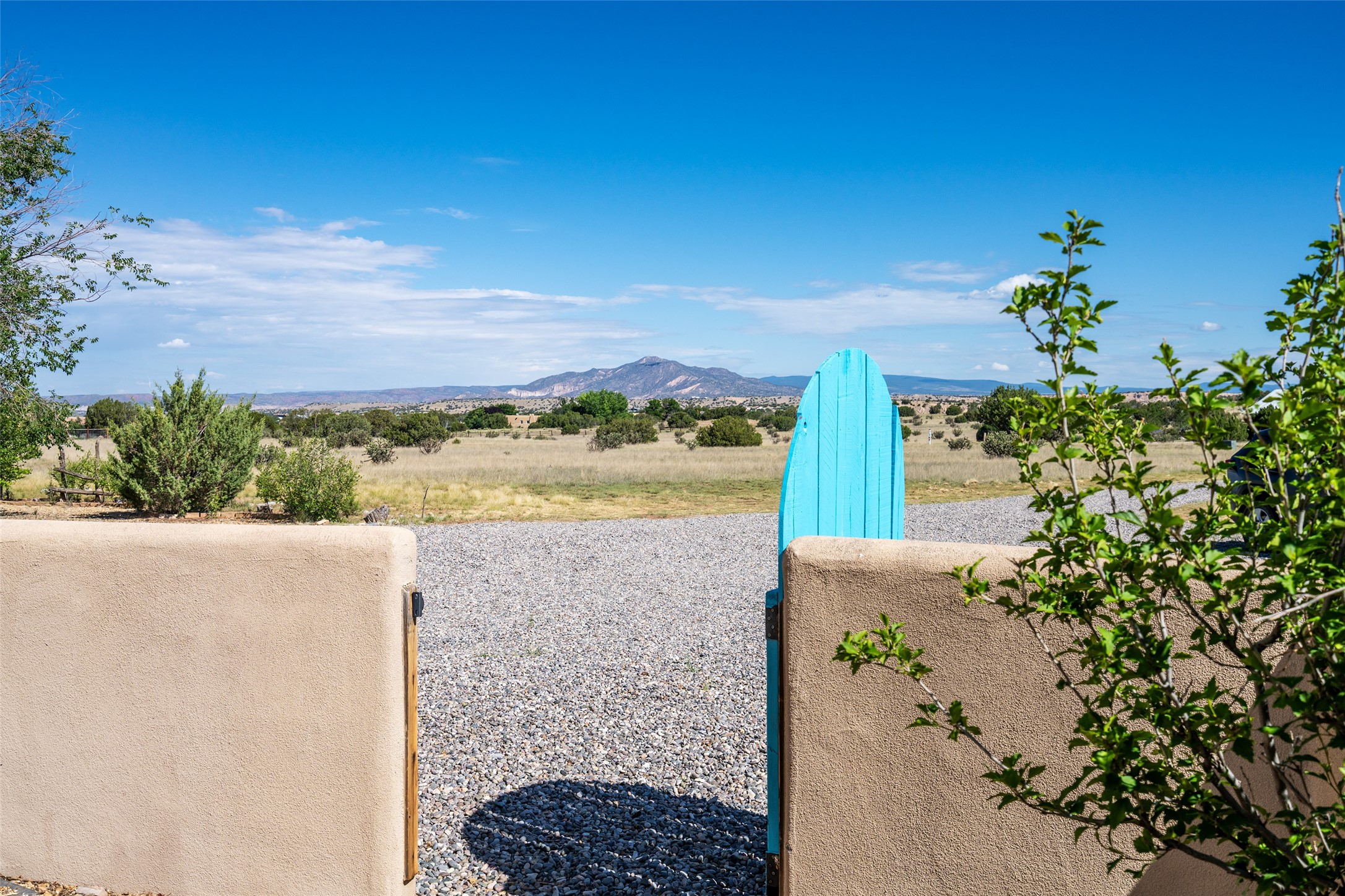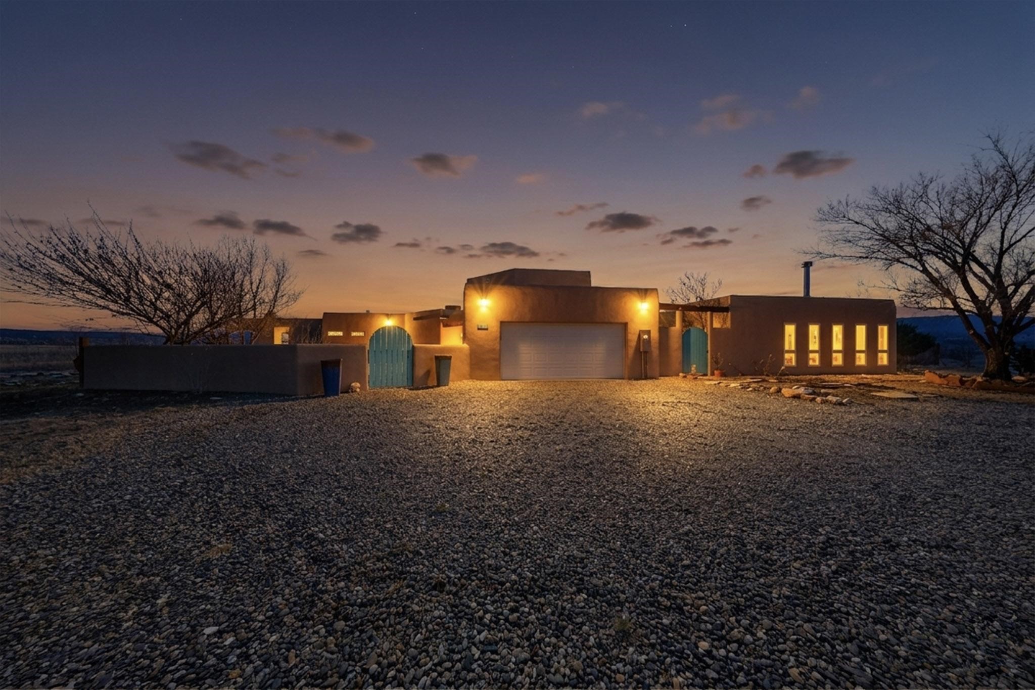 Classic New Mexico-style home on 5 serene acres in Mesa de Medanales -- ideally located for an easy commute to Espaola, Los Alamos, and Santa Fe. This mostly single-level, ~4,000 sq ft residence blends timeless Southwestern character with modern updates: three ensuite bedrooms plus a generous main-level bonus room/4th bedroom with wood stove and cedar closet, four remodeled bathrooms with custom walk-in showers, radiant heat, multiple wood stoves, and three traditional kiva fireplaces. Brick floors, beamed ceilings and nichos add authentic warmth while a large eat-in kitchen opens to a formal dining room; a dedicated office/flex space supports remote work or creative pursuits. Outdoor living is exceptional -- multiple courtyards, expansive exterior entertaining areas, and a covered portal with kiva fireplace for year-round enjoyment. Horses welcome; property offers open vistas in every direction and privacy while remaining minutes from Abiqui Lake, National Forest, and Ojo Caliente Mineral Springs & Spa. Recent improvements include new stucco, updated electrical and lighting, remodeled baths, fresh driveway gravel, security system, and water filtration/softener. No HOA.