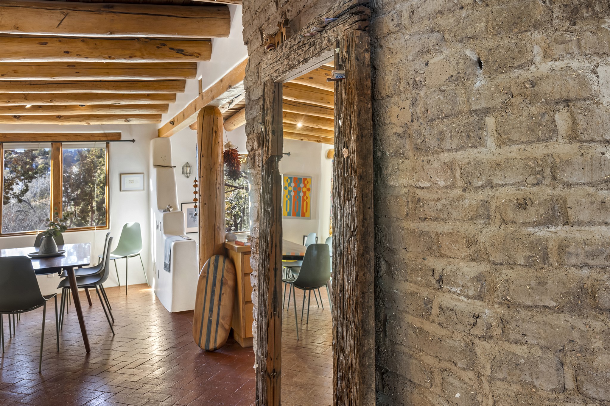 A rare 3,896 sq. ft. DUPLEX just minutes from the Plaza, Canyon Road, and the Railyard District--offering exceptional versatility, timeless style, and a premier 1.2-acre setting.With two fully independent 2-bedroom, 2-bath residences under one roof, Casa Del Sur and Casa Del Norte, the property can be used flexibly for multi-generational living, rental income, or creative live/work arrangements.Both interiors reflect the warmth and character of Southwestern design, featuring classic elements like vigas, Saltillo tile flooring, brick flooring and exposed adobe and plaster walls. Each residence has its own living spaces, kitchens, and private entrances--offering separation without sacrificing charm.Privately sited and thoughtfully designed, the home also includes a 3-car garage, ample outdoor areas, and quiet surroundings--creating a sense of retreat within easy reach of Santa Fe's most iconic galleries, restaurants, and historic landmarks.Whether you're looking to live, share, or invest, this unique compound offers possibilities that are increasingly hard to find in Santa Fe.