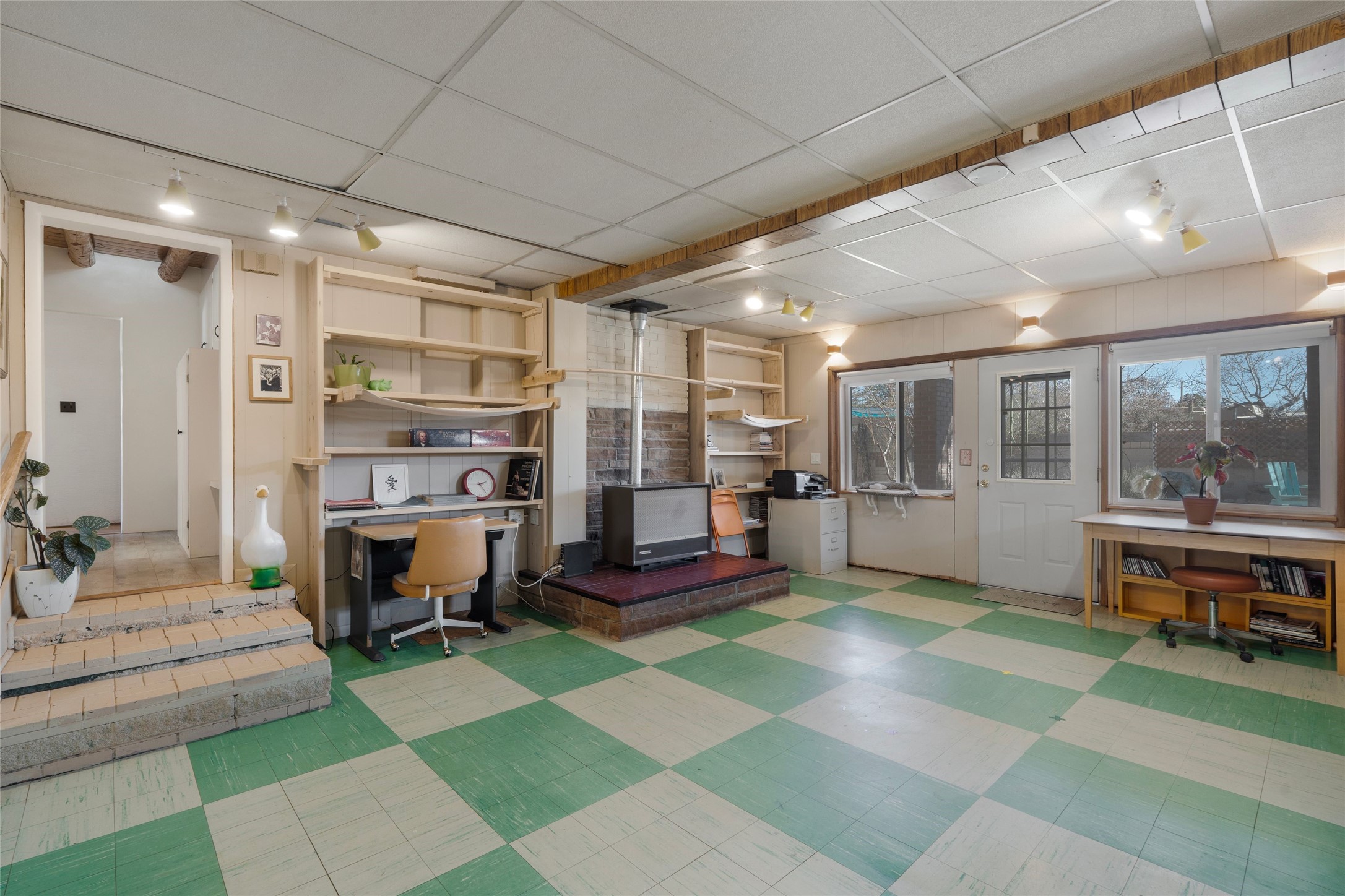 Located in the sought-after Casa Alegre neighborhood, this classic Stamm-built home blends authentic Santa Fe charm with comfortable living. Featuring vigas, a kiva fireplace, original doors, and hardwood floors, the home showcases the timeless character these mid-century properties are known for.Built in 1955, the property offers three bedrooms and two bathrooms, plus a bonus room addition that provides flexible space for a family room, office, or studio. With 1,659 square feet of living space, the home sits on a quiet street in one of Santa Fe's most desirable and convenient locations.The inviting dining area flows seamlessly from the living room into the mid-century kitchen and bonus room, creating a functional and welcoming layout. Enjoy outdoor living on the covered front porch or the covered back patio, perfect for relaxing or entertaining.Outdoor enthusiasts will appreciate the easy access to Frenchy's Field, the River Trail, Ashbaugh Park, the Acequia Trail, and Gregory Lopez Park, all just moments away, while shops and restaurants are only a short drive.Additional features include a storage shed with electricity, ideal for a workshop, studio, or extra storage. An attached one-car garage adds convenience and functionality.Recent upgrades include a new forced-air heating system installed in 2026, an evaporative cooler installed in 2021, remodeled bathrooms, a newer washer and dryer, and a newer hot water heater. The landscaping is supported by drip irrigation for easy maintenance.Schedule your private showing today and experience the charm and location of this Casa Alegre gem.