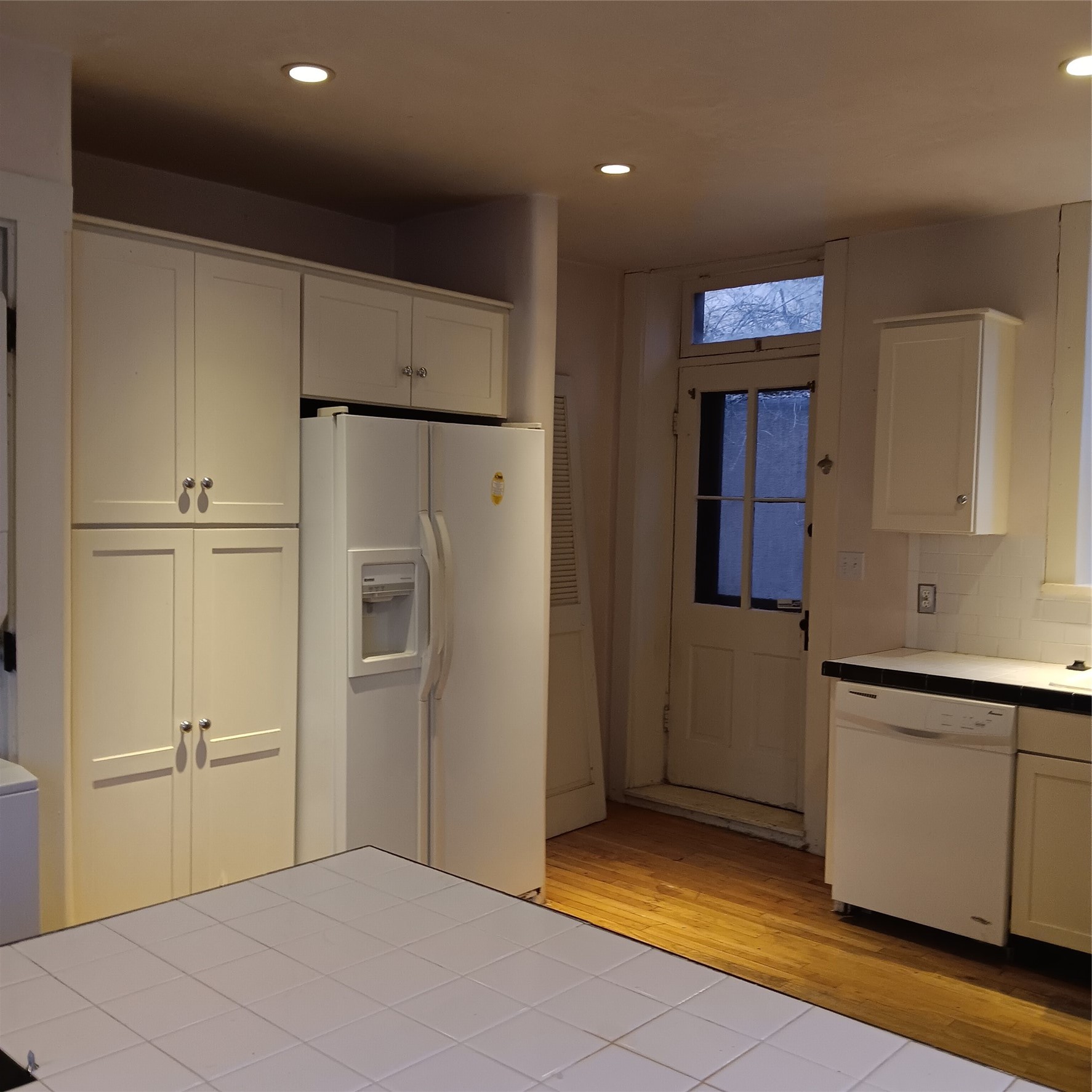A Santa Fe Gem! on Palace Avenue! This Charming 2 bedroom, 1 3/4 baths, beam ceilings, large wood burning fireplace, wood floors and French doors in living room and bedrooms. The kitchen may need updating and is good size with counter tops and cupboards for storage and the walls are plastered. This property also has a separate equipment room, and open garage. The property is walled and has parking outside the wall, as well as the separate garage. It is walking distance to the Plaza, Canyon Rd, shops and restaurants. This property needs updates, and will be Sold "As Is".