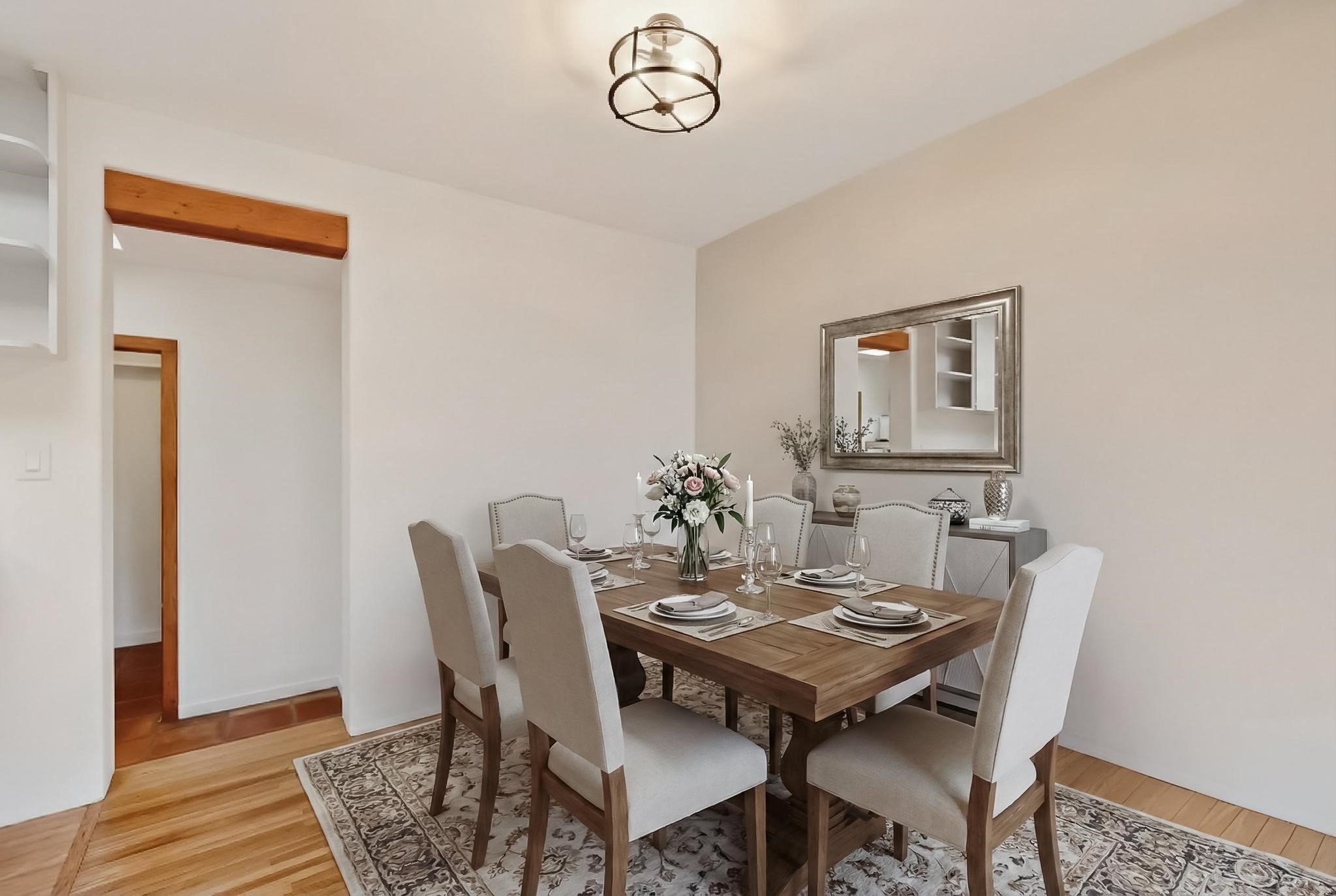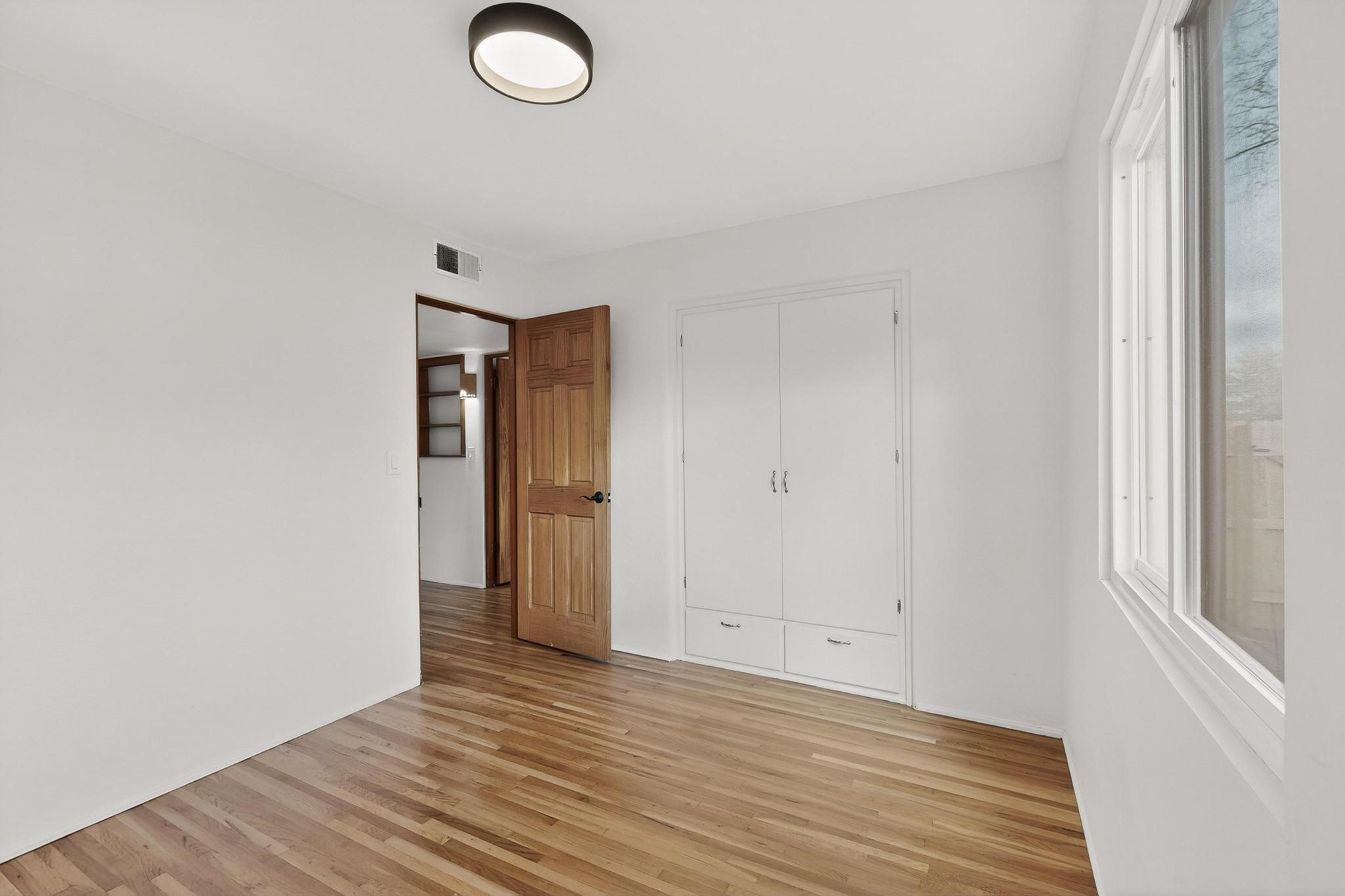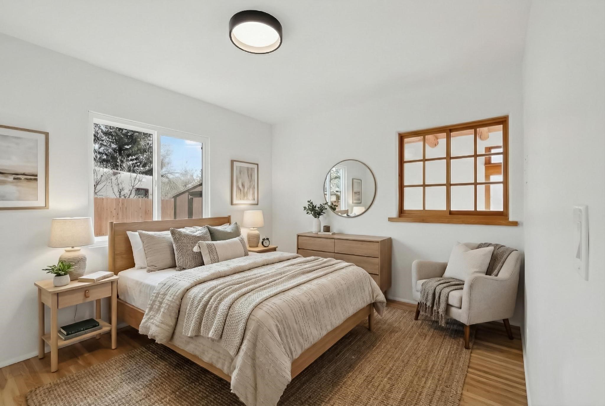 Conveniently located in Santa Fe's coveted Casa Alegre neighborhood, this midtown Stamm home offers an ideal blend of walkability, outdoor access, and authentic community. The private lot sits in a lovely cul-de-sac and features apricot trees and a beautiful sunroom. Featuring four bedrooms and two full bathrooms, this newly remodeled home was built in 1954 by esteemed Santa Fe builder Allen Stamm. Original Stamm doors and Stamm floors add to the timeless character these Santa Fe homes are known for. Just a four-minute walk to Frenchie's Field Park with a .3-mile walking track, workout bars, access to the Santa Fe River, and a hike and bike trail. A twelve-minute walk to Gregory Lopez Park with grassy open spaces, big trees, and a great playground. Excellent proximity to local restaurants and shopping, and just 2.5 miles from the historic Santa Fe Plaza. Stamm homes are highly sought after and are considered a strong investment in today's Santa Fe real estate market.Please see the link to enjoy the virtual tour of this special property.