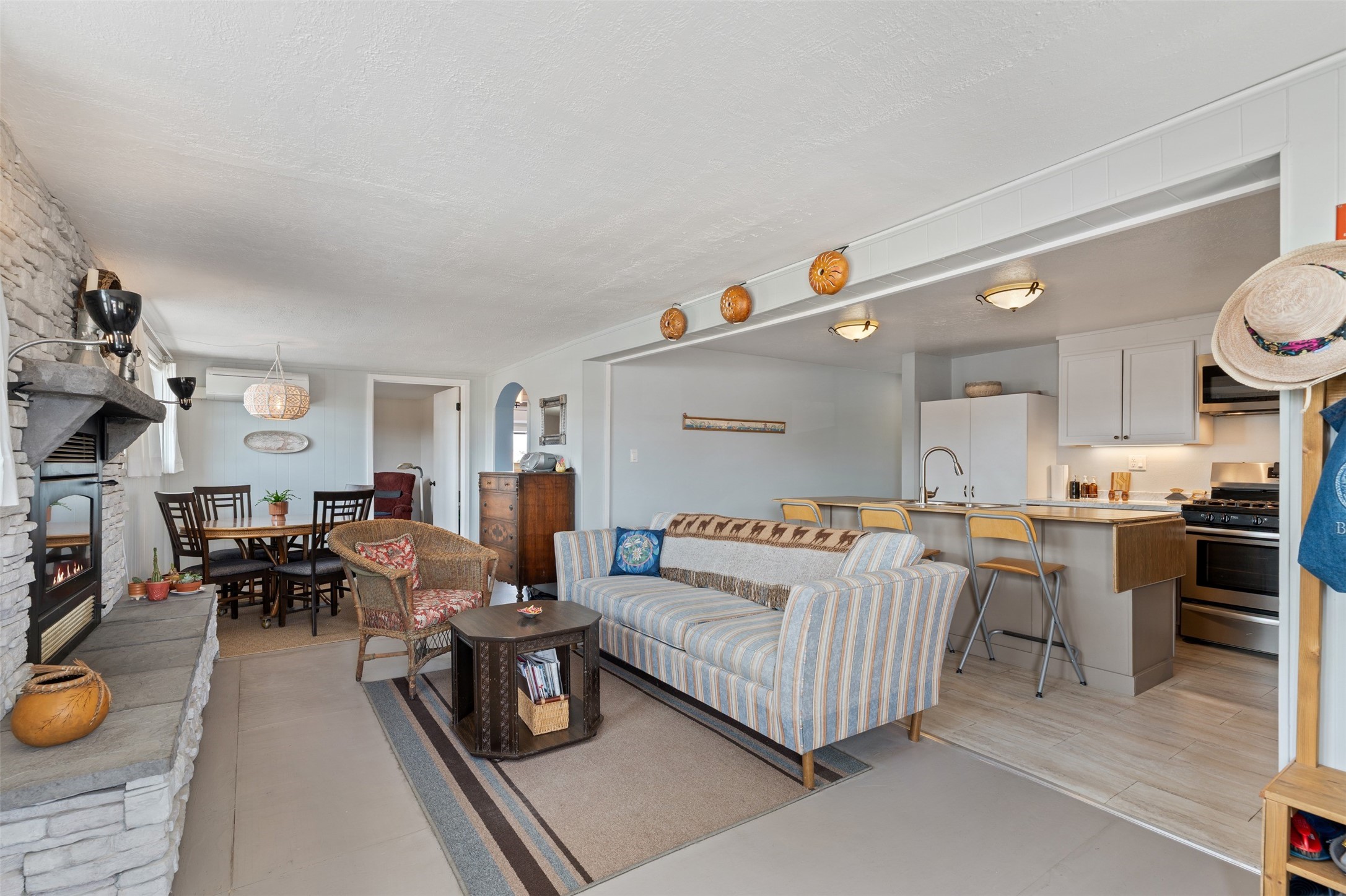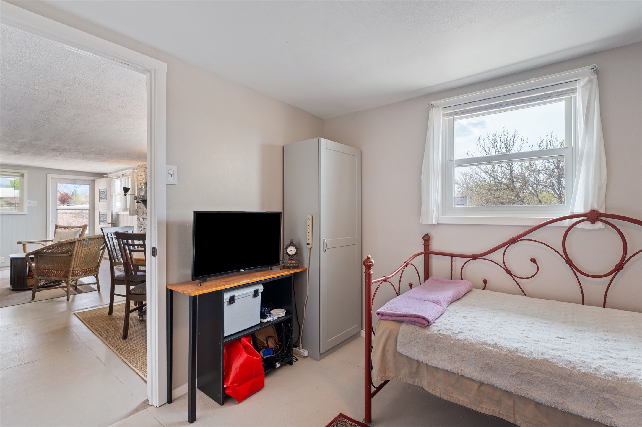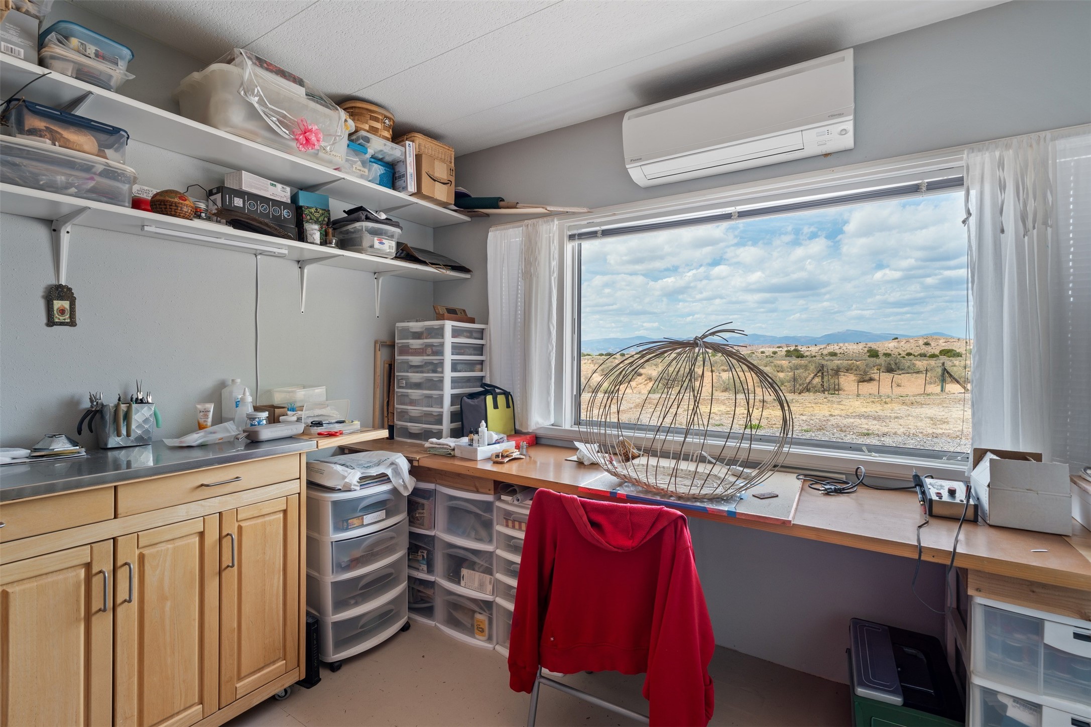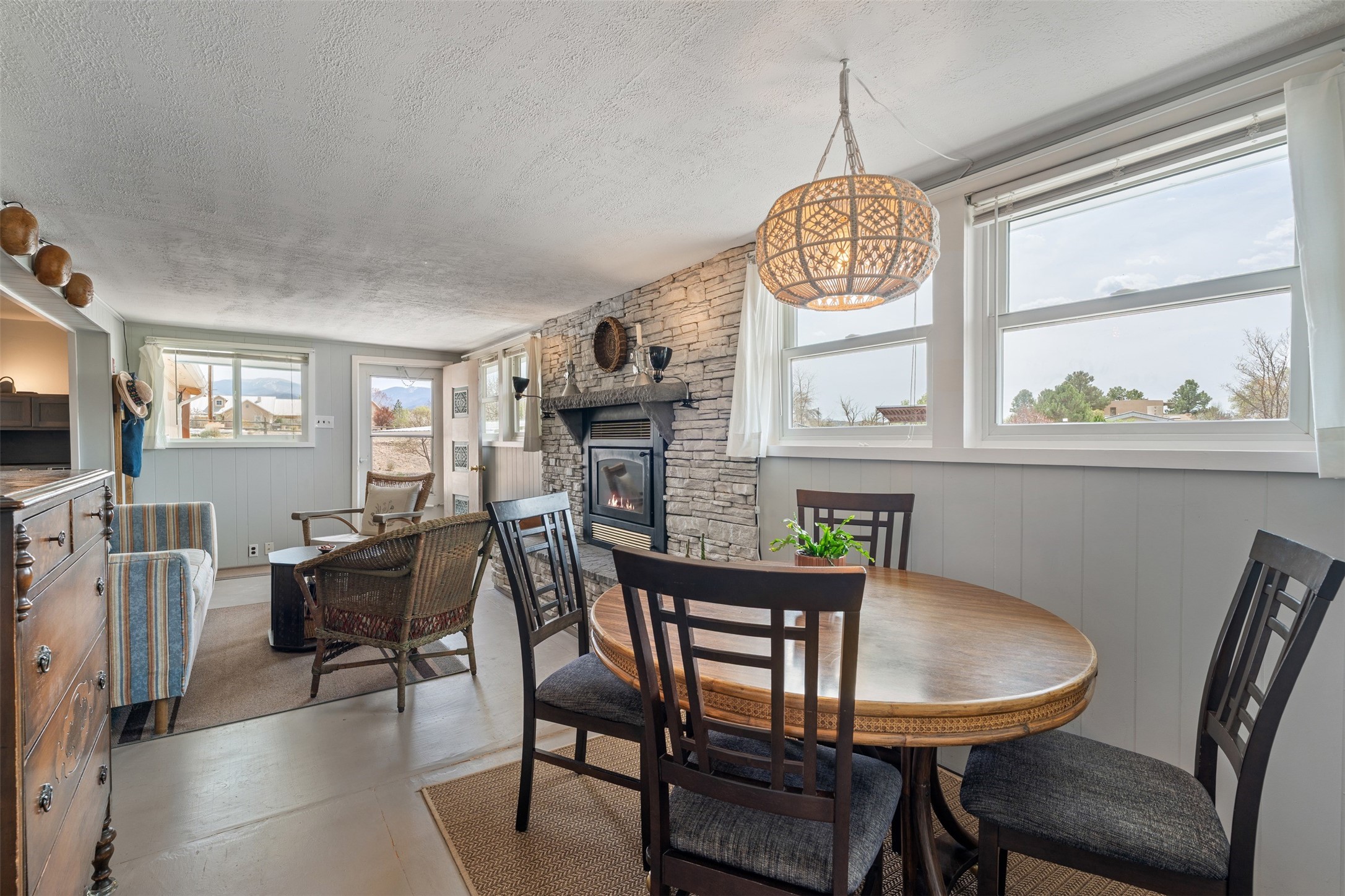 Set on 1+ acres in Namb, 1 Calle Andreita opens to a wide horizon--Pueblo lands stretching out to the West, the Jemez Mountains rising in the distance, and the Sangre de Cristo Mountains to the East, catching the evening light as the sun sets. It's a tranquil setting that feels quiet and grounded, with a daily rhythm shaped by sky, high desert vistas, and the occasional visit from horses at the fence line, drawn in by water, snacks, or human companionship.The property is configured as a duplex, totaling approximately 1,750 square feet, offering flexibility for a range of uses. The main residence, approximately 960sq/ft, includes three bedrooms and two bathrooms. A fully screened, private portal faces north--an easy place to settle in with a book, share a meal, or take in the surrounding landscape while protected from the heat of the afternoon sun. The attached guest house, approximately 790sq/ft, provides two additional bedrooms and a full bathroom, with its own portal oriented toward the Sangre de Cristos, with morning light and open views.Both living spaces have been updated with refreshed kitchens and bathrooms, and each includes its own washer and dryer. The land itself offers room to expand into outdoor living--gardens, gathering spaces, or simply open ground to enjoy as-is. A quiet corner of the property, bordering Pojoaque Pueblo land with outstanding views, is the perfect spot for a morning coffee, an evening cocktail, or a blissful meditation. Mature trees, including apple, apricot, and peach, add texture and seasonal color, while surface irrigation rights and a private well support long-term stewardship of the land.Additional improvements include three storage sheds and a double carport with extra storage. Despite the quiet, unhurried rhythm of life in Namb, the location remains practical--roughly 25 minutes to the Santa Fe Plaza and under 30 minutes to Los Alamos and the National Laboratory.