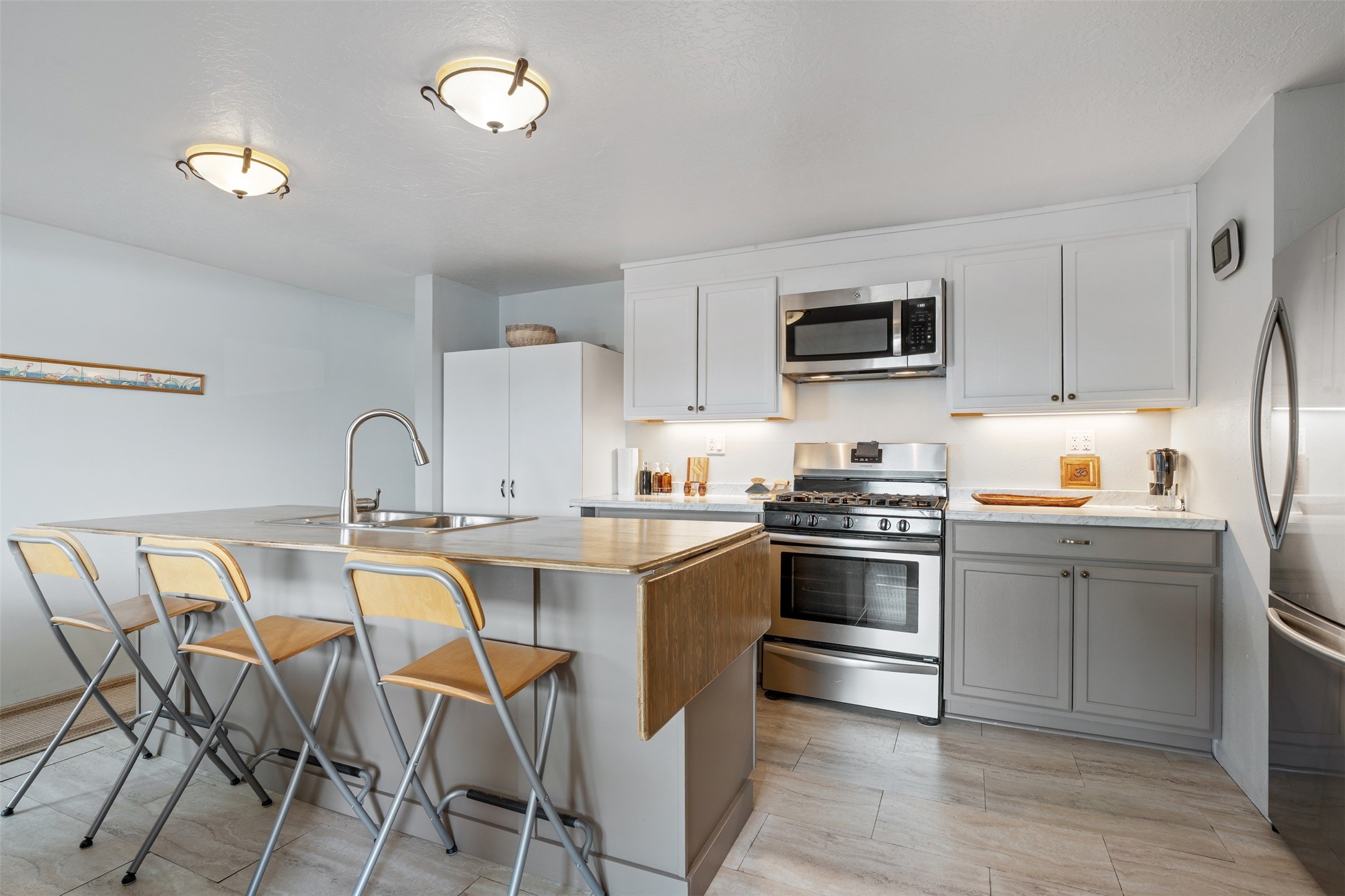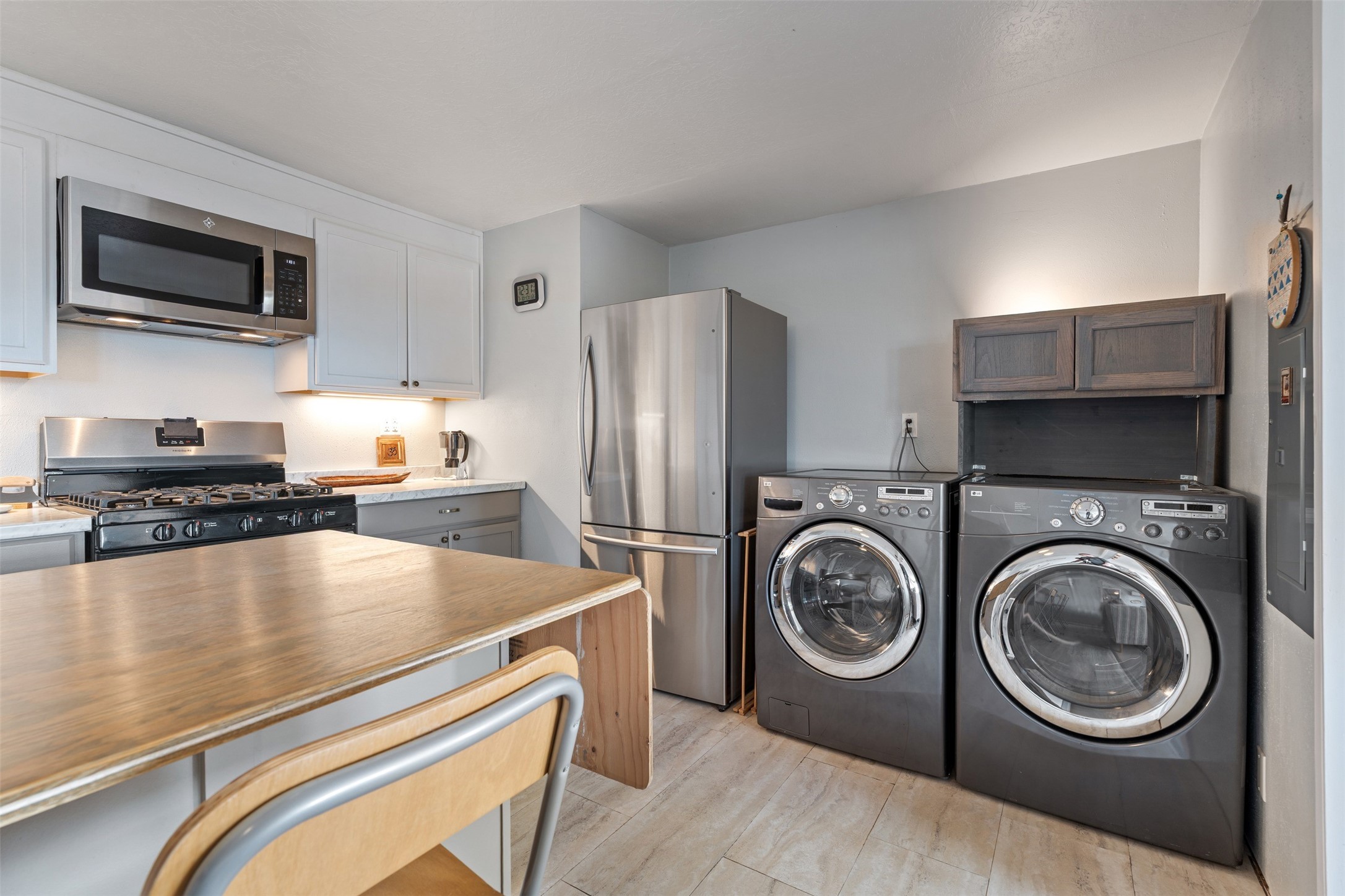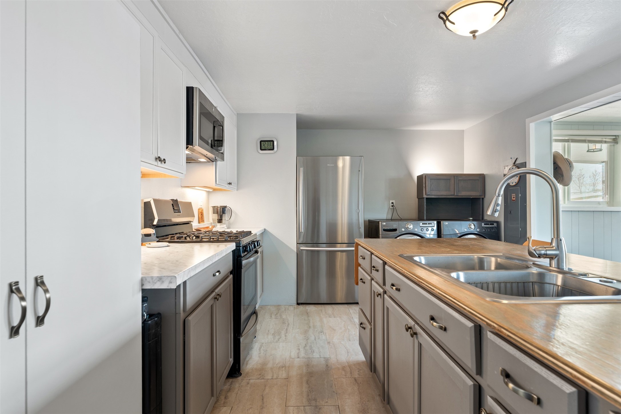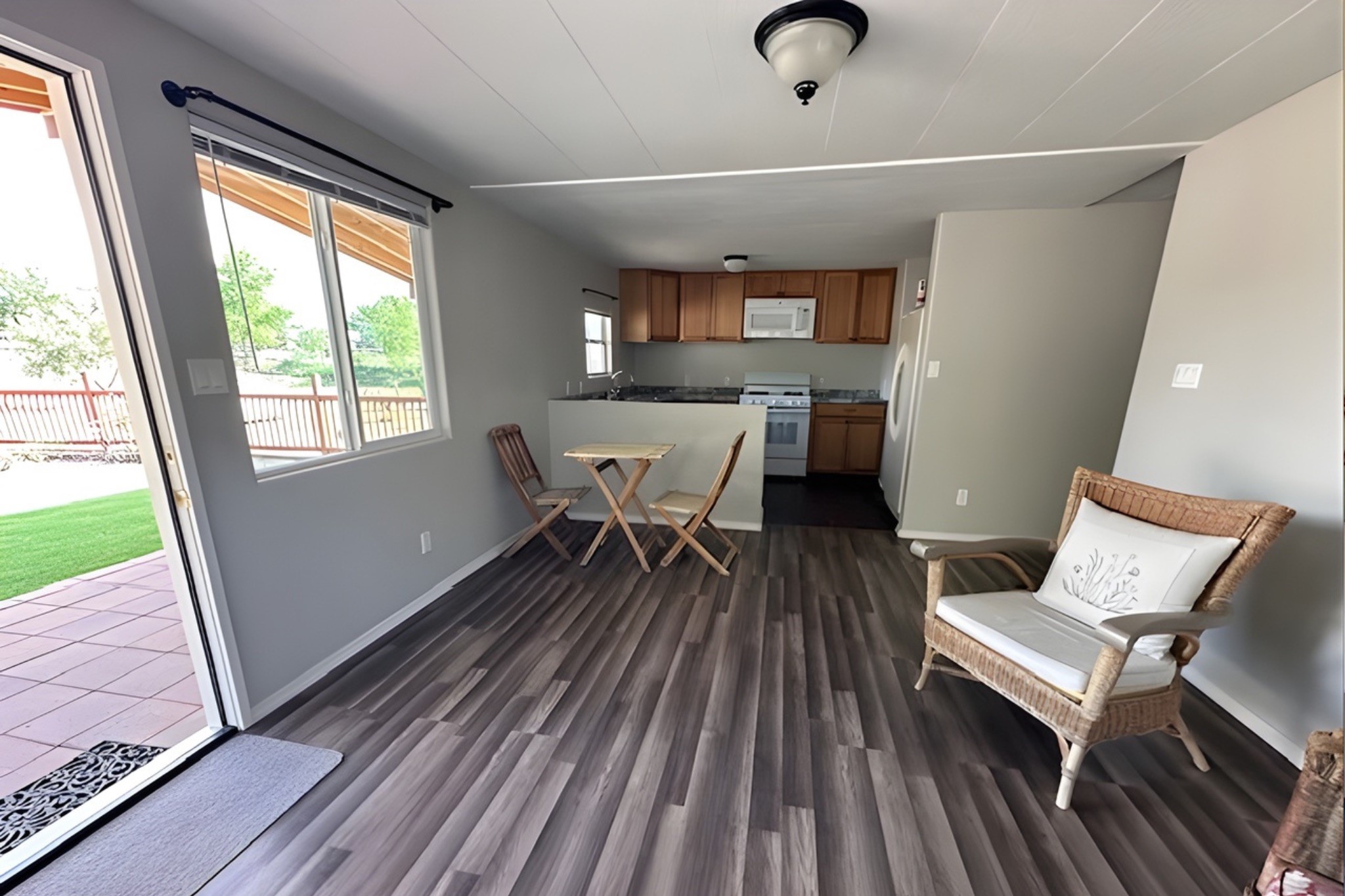 Set on 1+ acres in Namb, 1 Calle Andreita opens to a wide horizon--Pueblo lands stretching out to the West, the Jemez Mountains rising in the distance, and the Sangre de Cristo Mountains to the East, catching the evening light as the sun sets. It's a tranquil setting that feels quiet and grounded, with a daily rhythm shaped by sky, high desert vistas, and the occasional visit from horses at the fence line, drawn in by water, snacks, or human companionship.The property is configured as a duplex, totaling approximately 1,750 square feet, offering flexibility for a range of uses. The main residence, approximately 960sq/ft, includes three bedrooms and two bathrooms. A fully screened, private portal faces north--an easy place to settle in with a book, share a meal, or take in the surrounding landscape while protected from the heat of the afternoon sun. The attached guest house, approximately 790sq/ft, provides two additional bedrooms and a full bathroom, with its own portal oriented toward the Sangre de Cristos, with morning light and open views.Both living spaces have been updated with refreshed kitchens and bathrooms, and each includes its own washer and dryer. The land itself offers room to expand into outdoor living--gardens, gathering spaces, or simply open ground to enjoy as-is. A quiet corner of the property, bordering Pojoaque Pueblo land with outstanding views, is the perfect spot for a morning coffee, an evening cocktail, or a blissful meditation. Mature trees, including apple, apricot, and peach, add texture and seasonal color, while surface irrigation rights and a private well support long-term stewardship of the land.Additional improvements include three storage sheds and a double carport with extra storage. Despite the quiet, unhurried rhythm of life in Namb, the location remains practical--roughly 25 minutes to the Santa Fe Plaza and under 30 minutes to Los Alamos and the National Laboratory.
