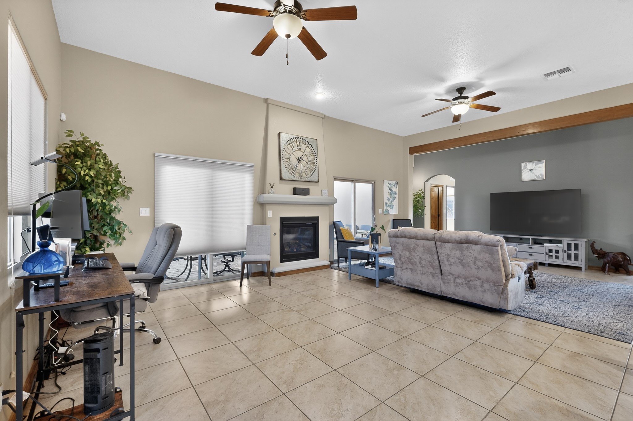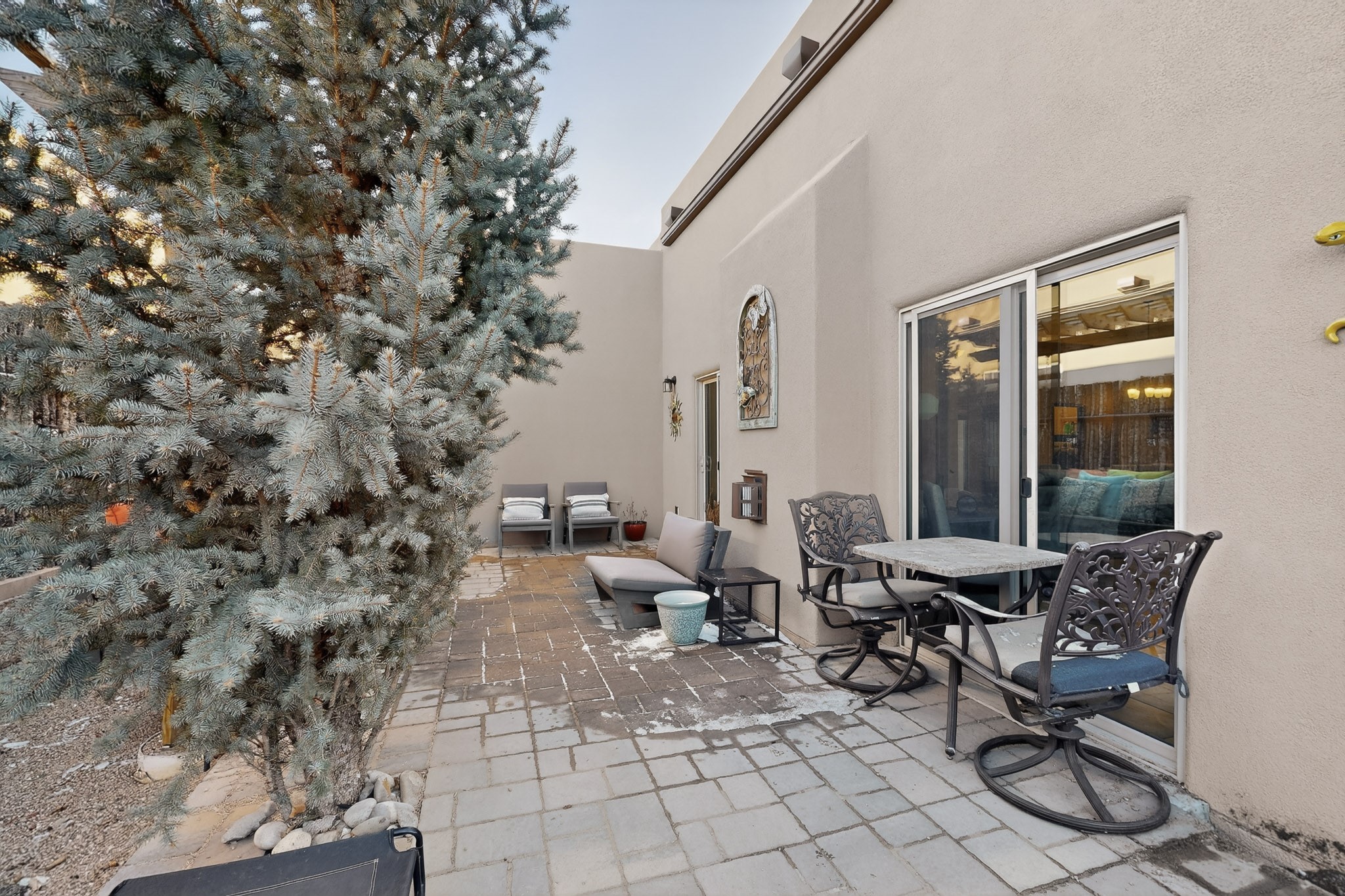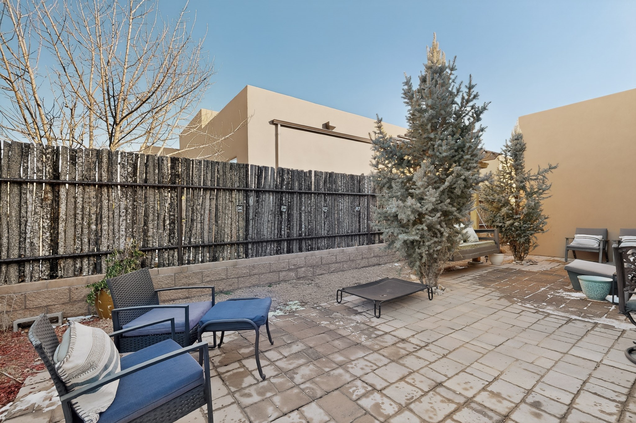 Welcome to this enchanting home in La Pradera. Built in 2018 it is designed for modern living. The open concept layout is enhanced by high ceilings, creating an airy and inviting atmosphere. The chefs kitchen features granite countertops and a walk-in pantry that is perfect for culinary enthusiasts. The primary suite is thoughtfully separated from the other bedrooms, allowing for privacy and comfort. Additional features include a tankless water heater, soaking tub, separate shower and spacious walk-in closet. Enjoy the serene outdoor living space which includes a private sanctuary with a swinging daybed, ideal for relaxation. With easy commuting to Los Alamos or Albuquerque and nearby walking trails and open space, this home is a perfect blend of convenience and tranquility.