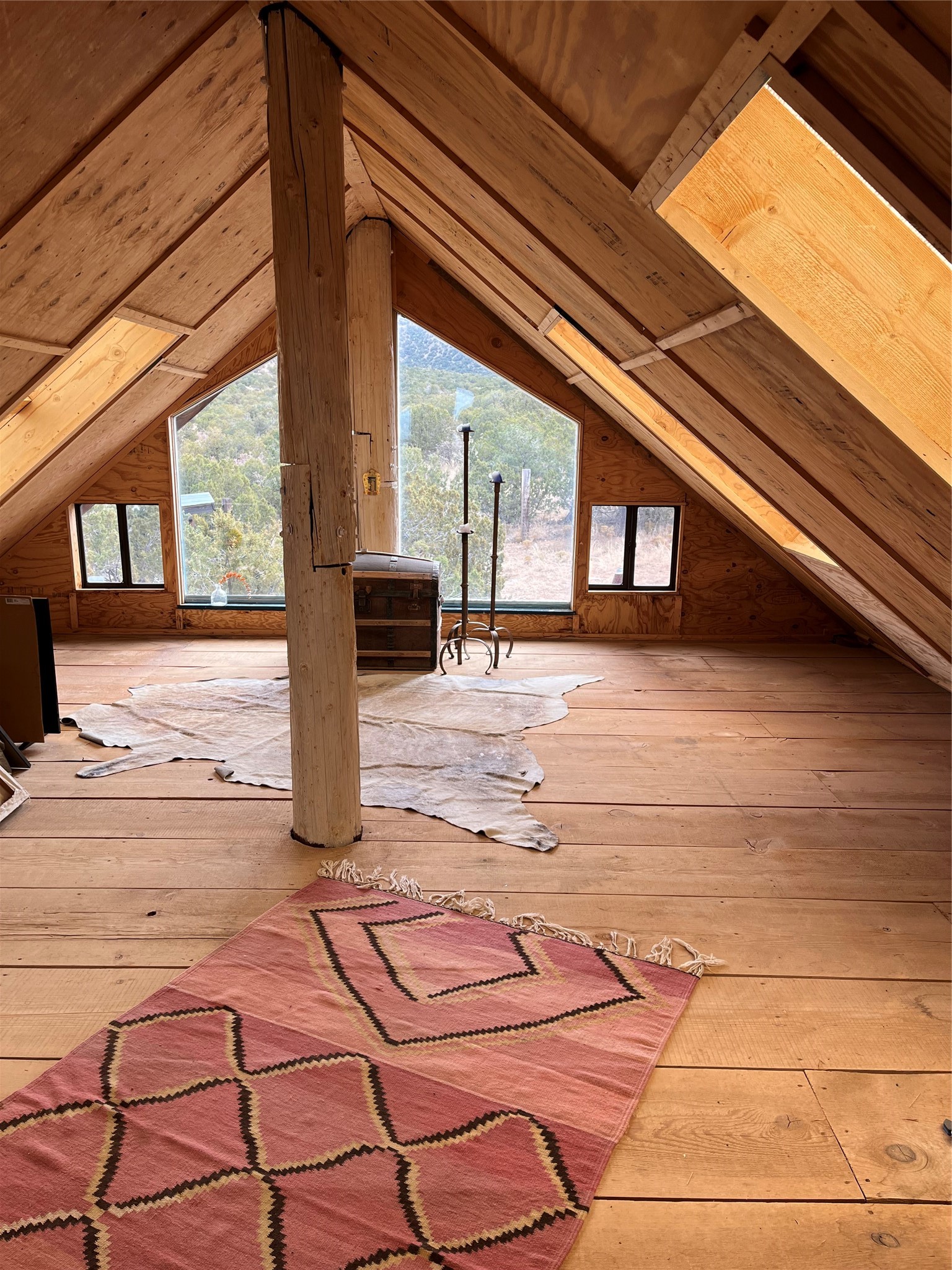 Thoughtfully designed and consciously placed, this off-grid straw bale home sits on approximately 10 acres in the Cerrillos/Madrid area, positioned to take full advantage of sweeping mountain views, privacy, and easy access. Located less than a quarter mile from Highway 14, the property offers a rare combination of seclusion and convenience. The main residence offers two bedrooms and a sunroom, high ceilings, abundant natural light, and an open, inviting layout. Interior details include teak and concrete flooring, an open kitchen, generous storage, and a large, well-lit bathroom. The home is served by a private well and septic system and is powered by its own PV solar system, designed for efficient off-grid living. A separate 800+/- sq ft artist's studio/barn adds exceptional versatility. The structure includes a full loft, a large sauna, brick flooring, oversized double doors opening to a secluded brick patio, and a viewing deck. This building offers flexible studio, workshop, or storage space and significant potential for future enhancement. The land is partially fenced and extends across Camino Cerro Chato, providing added privacy and multiple view corridors. Additional features include a horse pen and run-in shed, multiple outdoor seating areas that take in the surrounding landscape, and select furnishings, carpets, and tools that may convey with the sale. This is a distinctive property well-suited for buyers seeking privacy, creative space, and a sustainable lifestyle in one of Santa Fe County's most compelling high-desert settings.