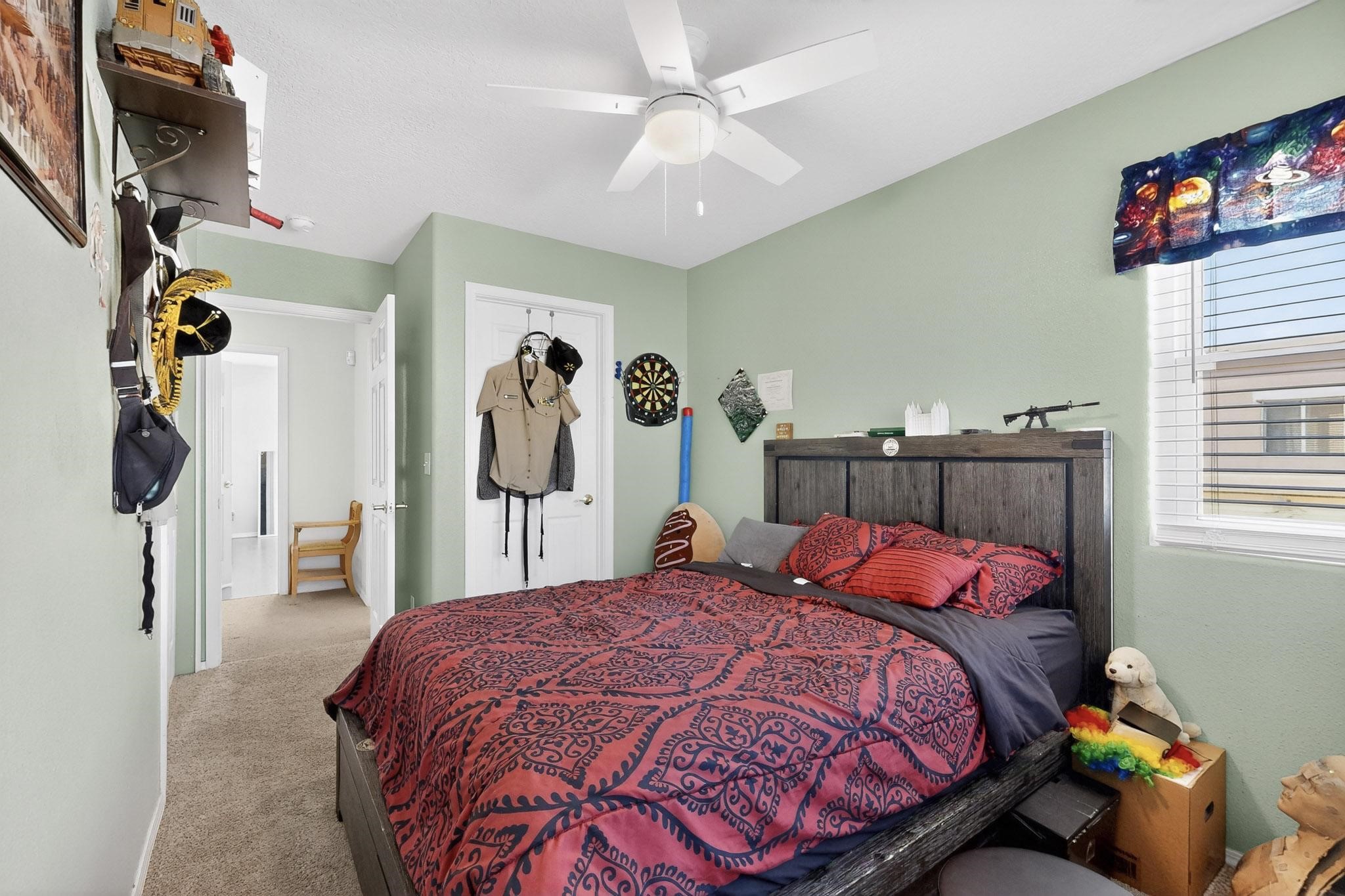 Welcome to 32 Sunset Canyon Lane, a fantastic 5-bedroom, 3-bath home built in 2006 that perfectly combines comfort, style, and modern efficiency. The functional floor plan offers a convenient bedroom and full bathroom on the main floor--ideal for guests or multi-generational living--while the upper level features a huge great room over the garage that serves as a versatile office, additional family room, or even a 6th bedroom.The home underwent extensive updates in 2023, including a new roof, new stucco, a new solar energy system, and new custom windows and patio doors. The interior was equally refreshed with bathroom updates featuring new toilets, lighting, and new shower surrounds with bathtubs. The open kitchen remains the heart of the home, boasting a huge walk-in pantry and abundant natural light, while the upper floor offers the added convenience of a dedicated laundry room near the main bedrooms.Outside, enjoy a low-maintenance, xeriscape backyard designed for easy-care living. The community enhances the lifestyle with a low $55/month HOA that covers nightly security patrols and the professional upkeep of walking trails and three well-maintained parks. Offering two separate living areas and significant energy savings, this property is a peaceful retreat that delivers the perfect balance of functionality and charm.