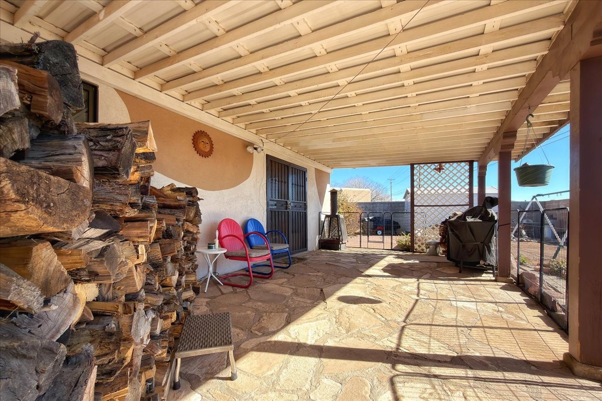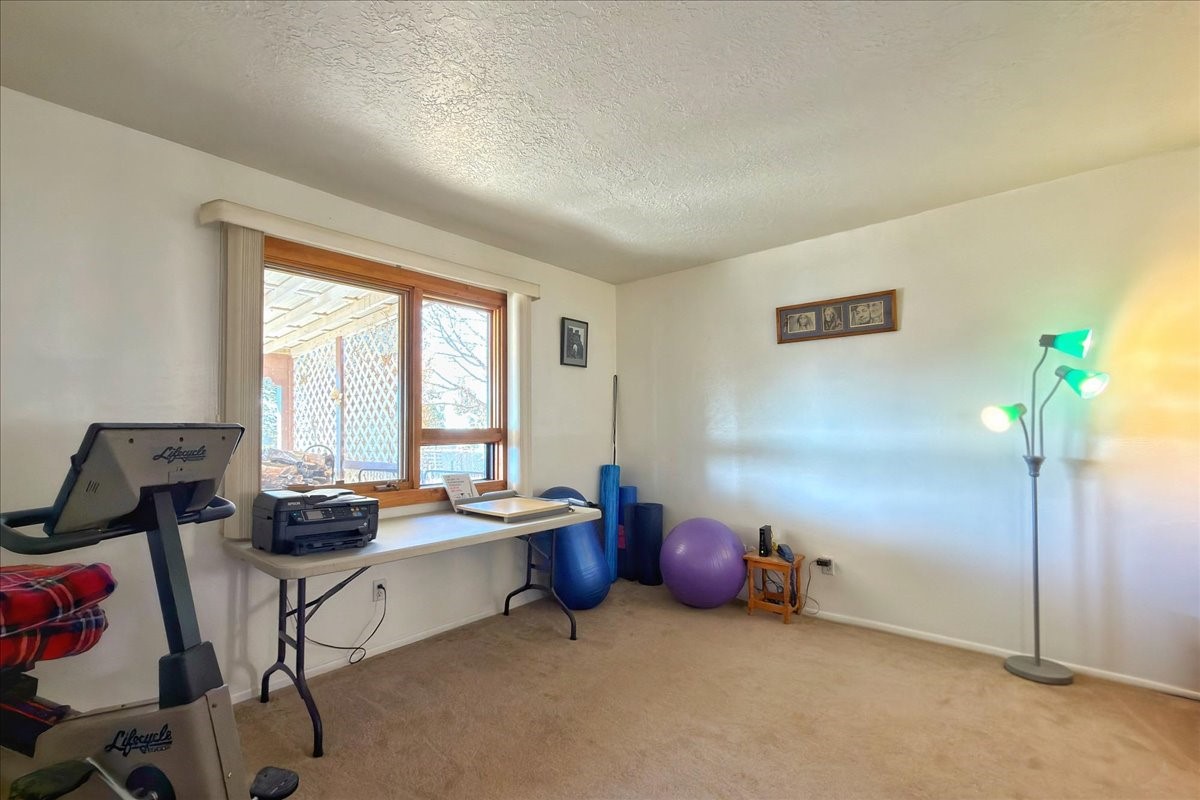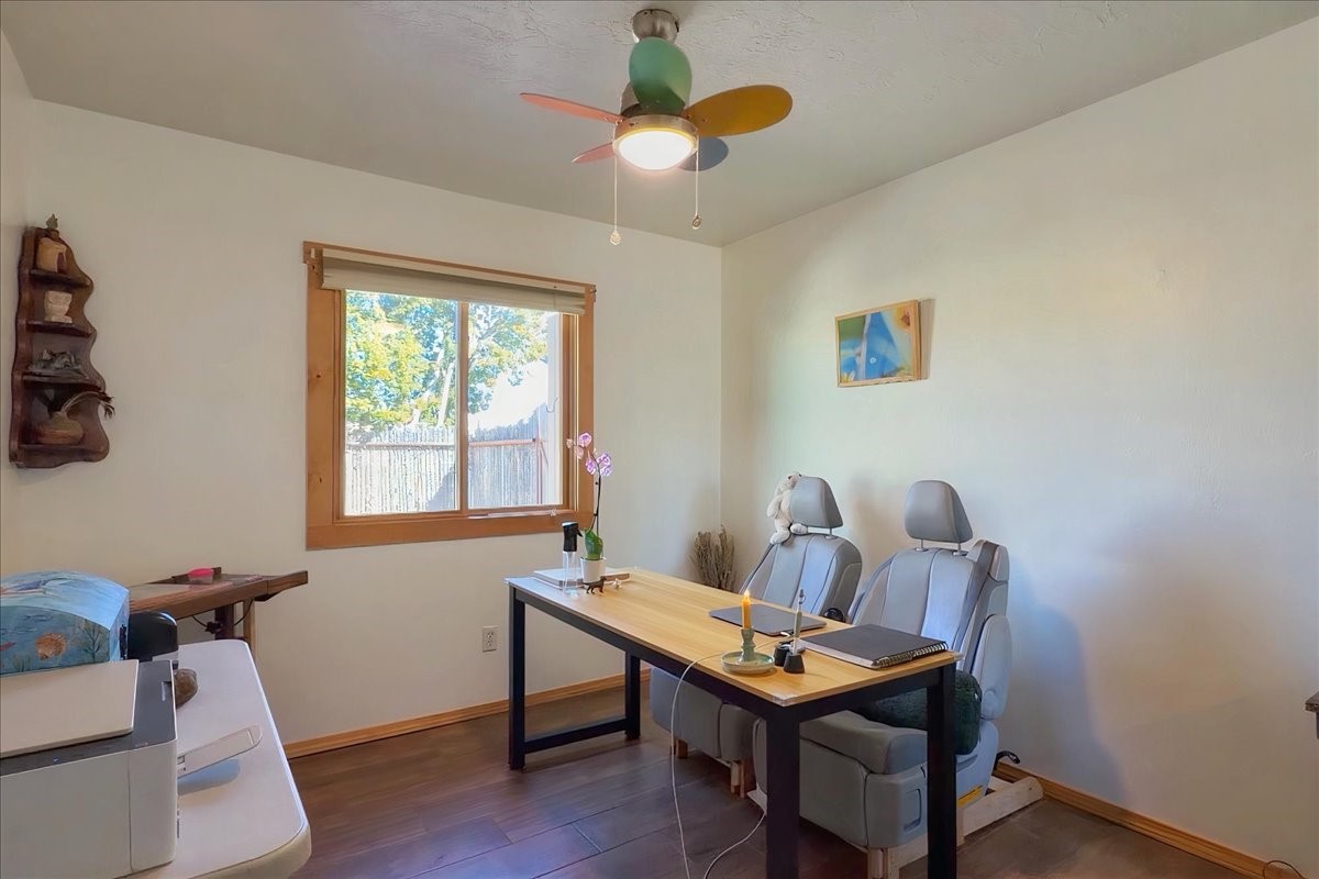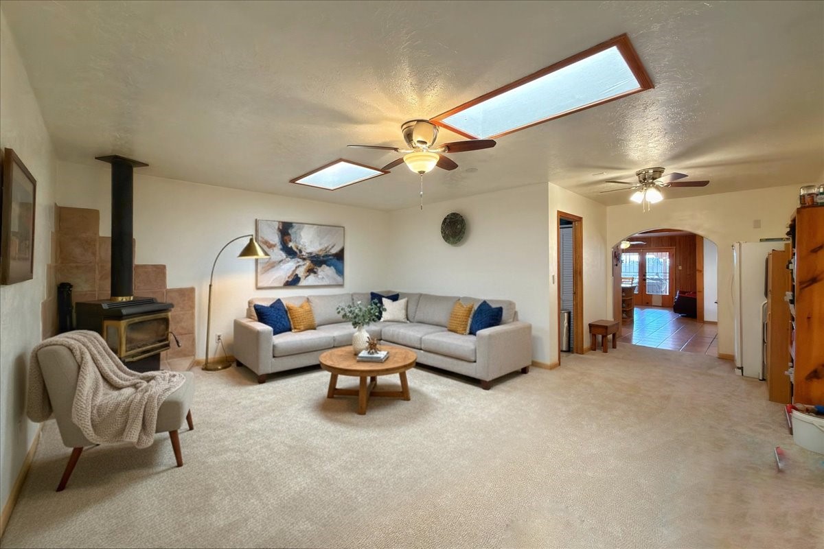 A rare value in Vista del Prado, this centrally located gem offers exceptional square footage on a generous in-town lot on a cul-de-sac. With three bedrooms, two baths, an office, and a versatile garage conversion currently used as a den, the flexible floor plan easily adapts to a variety of lifestyles--whether you envision a hobby room, art studio, library, or additional living space.The updated kitchen features granite countertops and solid-wood cabinetry, and the home has been well cared for with the comfort of central air conditioning and a durable propanel roof. Outdoors, the backyard includes a covered patio, ample space for an expansive garden, and two storage sheds for added convenience. There's also a lovely walled courtyard in the front that's perfect for pets or sitting an enjoying a cup of coffee.Ideally situated near shopping, the new Zia Rail Runner station, and the Genoveva Chavez Community Center, with the Santa Fe Plaza just a 15-minute drive away, this home offers an exceptional combination of space, location, and value. Central, spacious, and full of possibility--this is a special opportunity not to be missed.