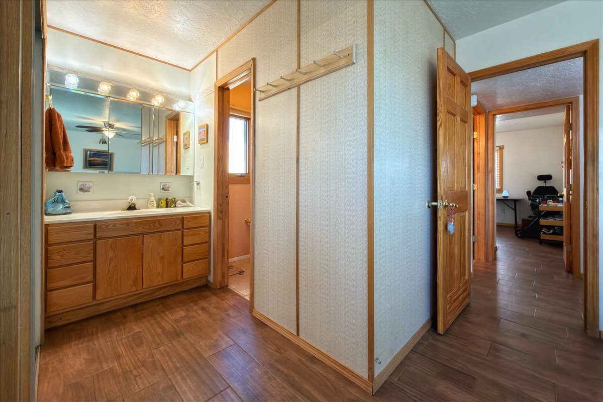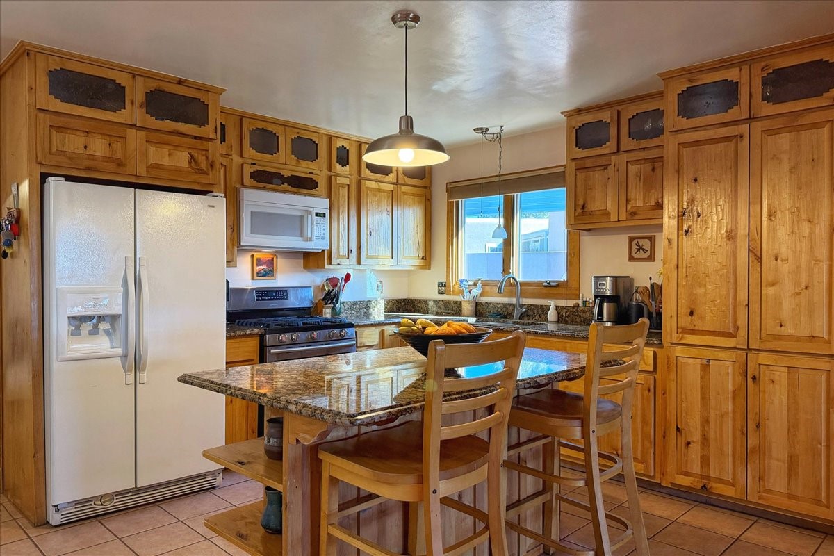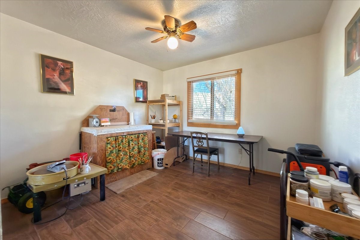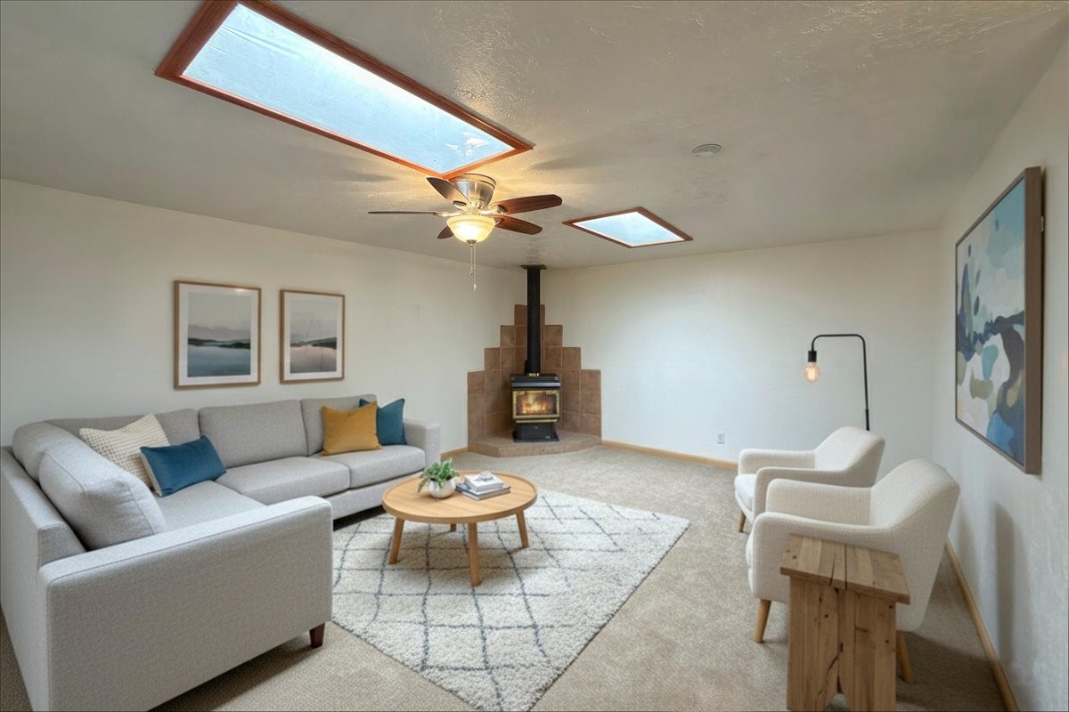 A rare value in Vista del Prado, this centrally located gem offers exceptional square footage on a generous in-town lot on a cul-de-sac. With three bedrooms, two baths, an office, and a versatile garage conversion currently used as a den, the flexible floor plan easily adapts to a variety of lifestyles--whether you envision a hobby room, art studio, library, or additional living space.The updated kitchen features granite countertops and solid-wood cabinetry, and the home has been well cared for with the comfort of central air conditioning and a durable propanel roof. Outdoors, the backyard includes a covered patio, ample space for an expansive garden, and two storage sheds for added convenience. There's also a lovely walled courtyard in the front that's perfect for pets or sitting an enjoying a cup of coffee.Ideally situated near shopping, the new Zia Rail Runner station, and the Genoveva Chavez Community Center, with the Santa Fe Plaza just a 15-minute drive away, this home offers an exceptional combination of space, location, and value. Central, spacious, and full of possibility--this is a special opportunity not to be missed.