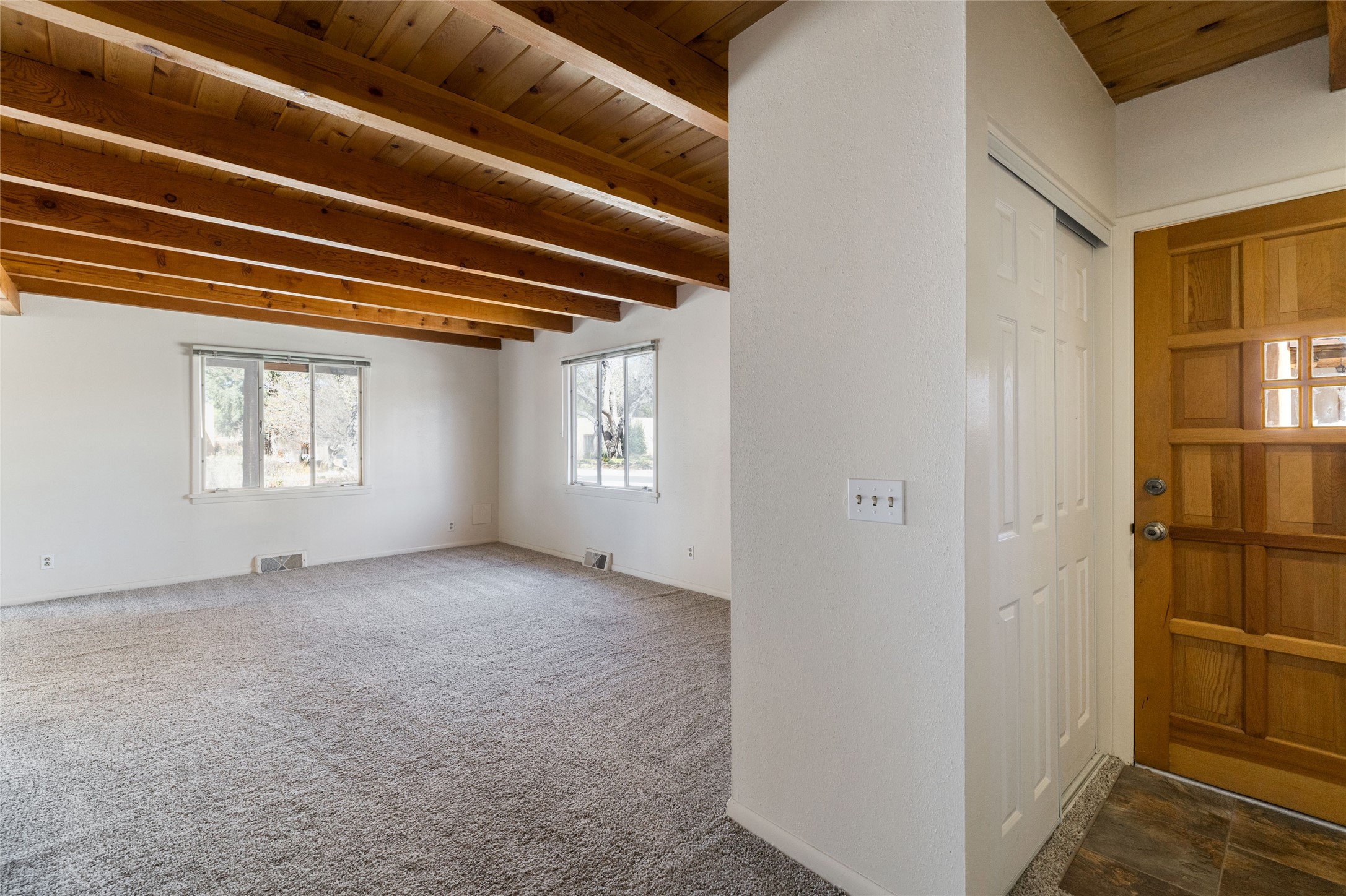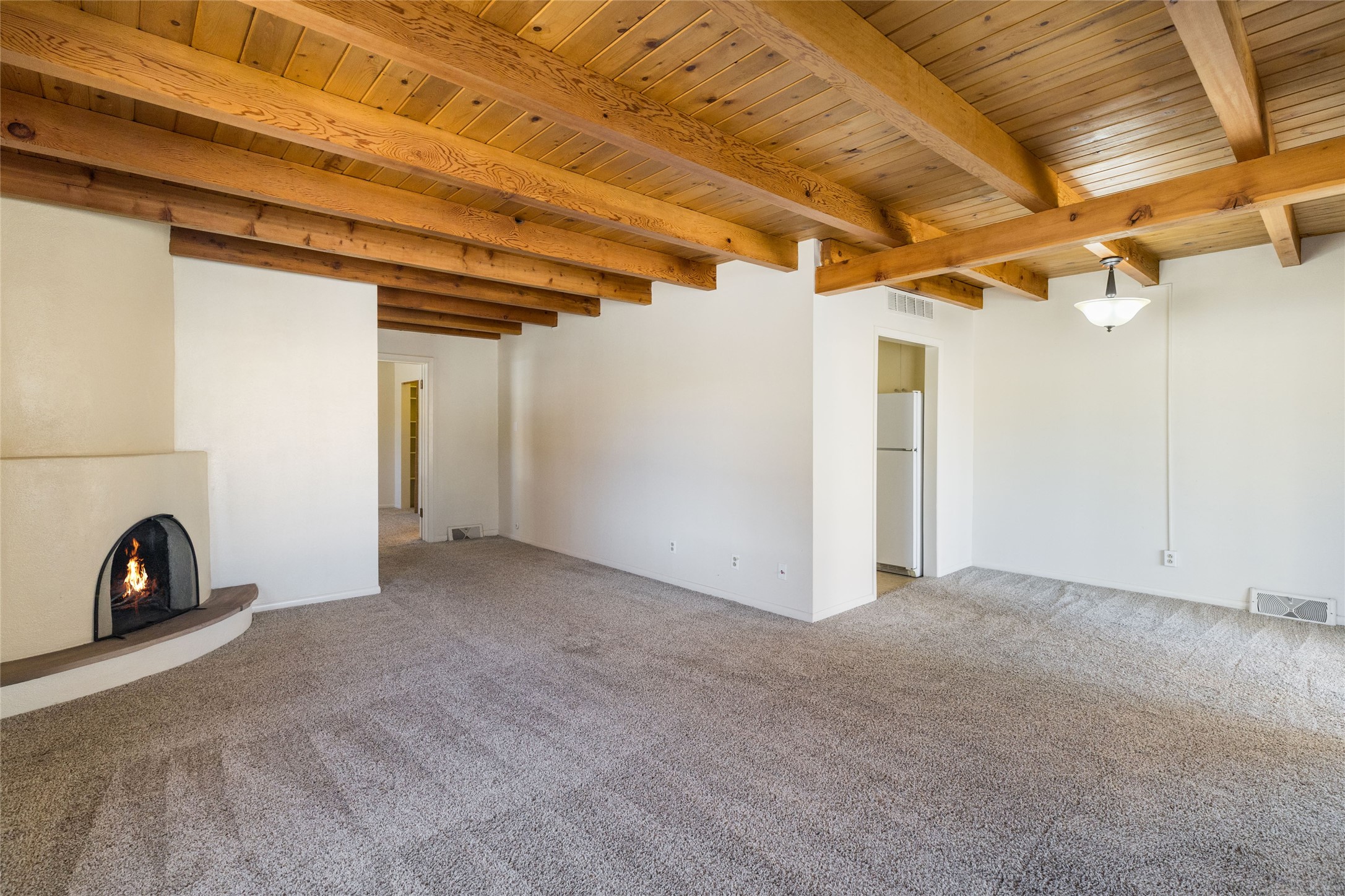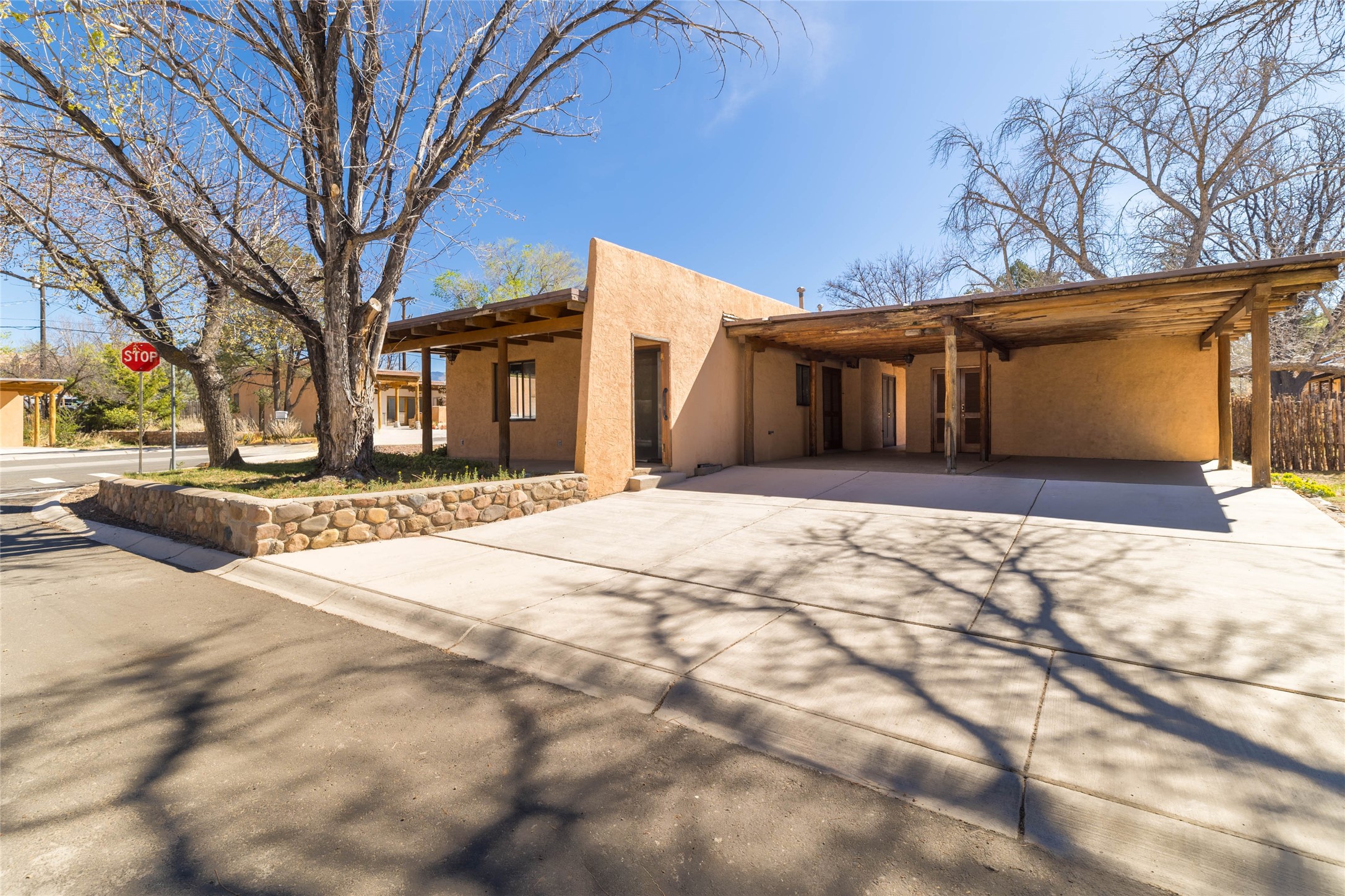 Experience the lifestyle of Downtown Santa Fe at Plaza Del Monte, a gated community located within one of the Southwest's most iconic destinations, just minutes from the historic Santa Fe Plaza. This rare offering presents a compelling opportunity for investors, second-home owners, and adventure travelers alike, with the added benefit of allowable short-term rentals. The community offers a unique and peaceful setting with nearby access to open space, hiking and biking trails, and outdoor recreation, while remaining close to Santa Fe's celebrated galleries, restaurants, and cultural landmarks. A rare chance to own in a community that blends lifestyle, location, and strong investment potential. A versatile duplex opportunity with strong investment potential. This property offers flexibility for investors seeking rental income, a multi-generational living option, or a Santa Fe retreat with built-in income potential. This versatile duplex floor plan offers a 2-bedroom, 1-bath unit (859 SF) and a 1-bedroom , 1-bath unit (810 SF), both with covered parking spaces per unit. Each residence features a traditional kiva fireplace, and one features wood-beamed ceilings, the other unit has vigas and a beamed ceiling, adding warmth and classic Santa Fe charm to the living spaces. If you're not ready to update, the units can be enjoyed as they are. Take your time and update and add personal touches when the moment is right. This unit is also well-suited for a single-family residence by modifying the floor plan.