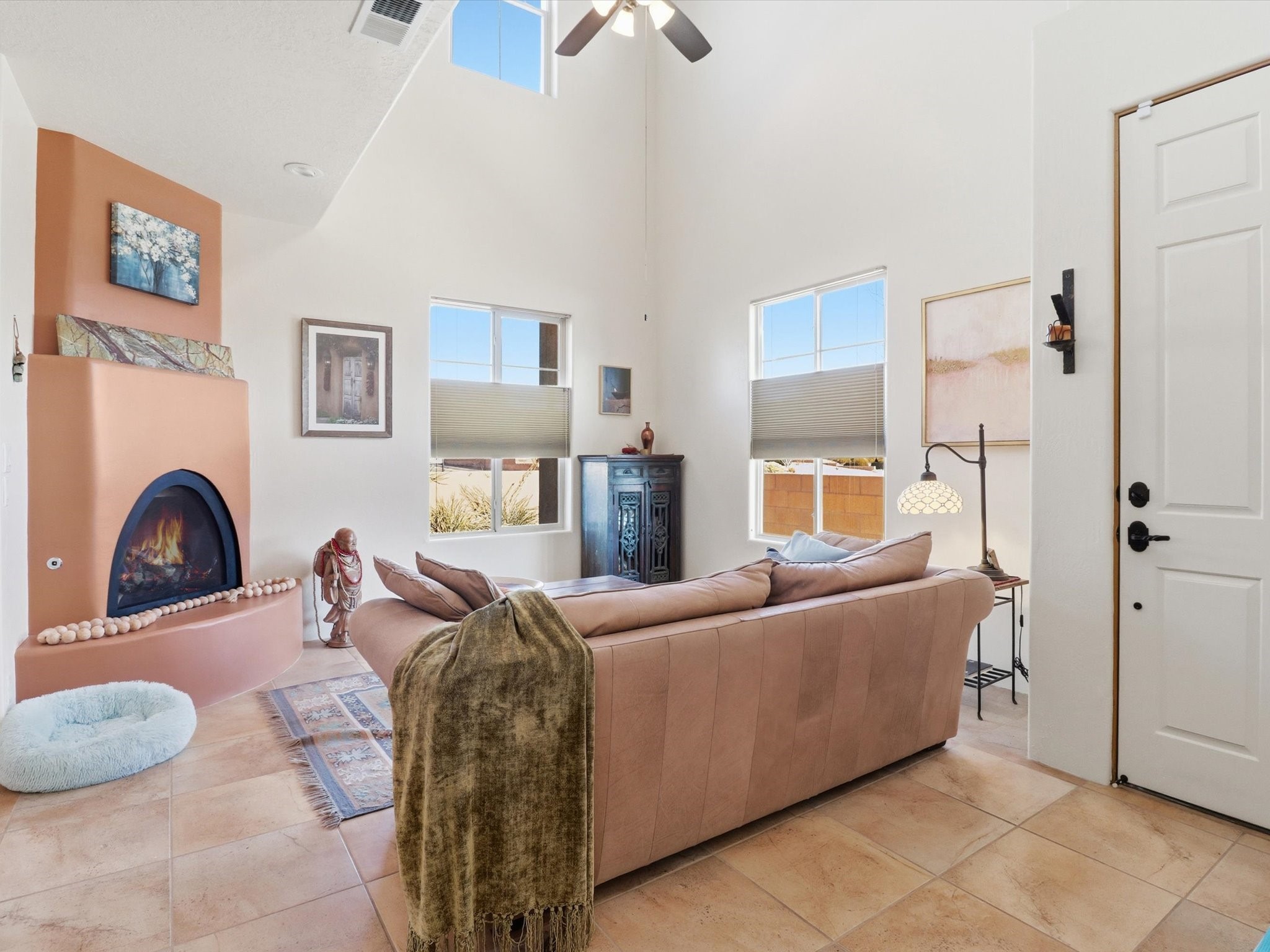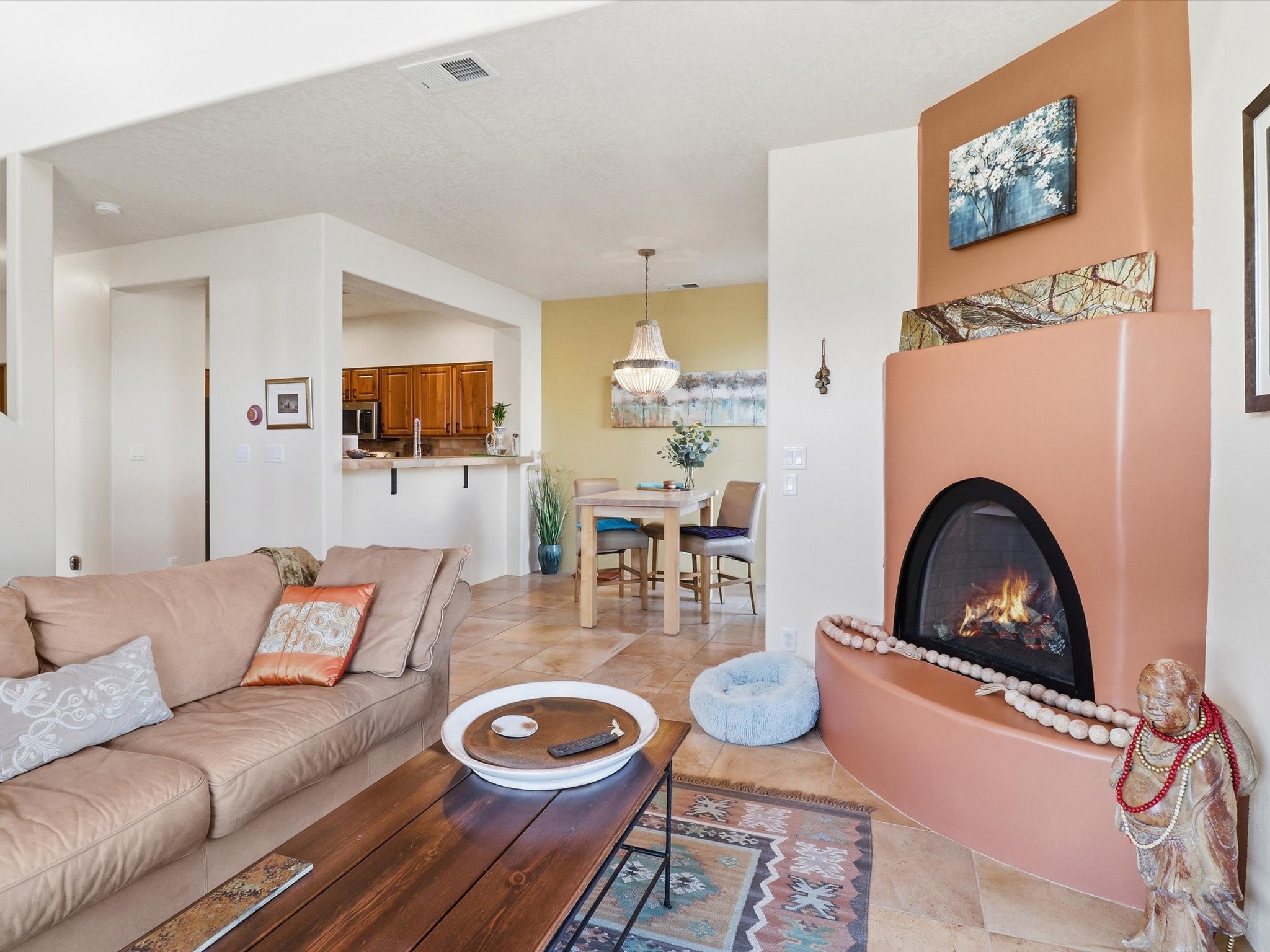 Elevate your lifestyle with this exceptional sun filled end-unit townhome in the desirable Rancho Viejo community. Combine modern comforts and Santa Fe charm in this elegant residence of +/-1700 sq. ft. thoughtfully designed living space with a versatile 3BR and 2 1/2 Bath. Step into a low maintenance wrap around courtyard on a flagstone patio with a sliding door to the tiled dining area. In the kitchen, you'll experience updated modern amenities including a new appliance package (2025) and a Kohler black stainless steel farmhouse sink. Convenient soft close cabinetry and Rev a shelf cabinet drawers for easy access. Enjoy filtered drinking water with the RO water filtration system.The living room is centered around a traditional Kiva gas fireplace and dramatic two-story ceiling adorned with classic vigas and clerestory windows. An efficient HVAC system with a Google Nest control panel allows remote monitoring while away or on the go. In-home and remote monitoring security features include Simplisafe security system and video ring doorbell.Follow the tiled hallway to the flex room appointed as an additional bedroom, office or media room with courtyard view and entry. Powder room (1/2 bath) is steps away. Upstairs, the primary bedroom ensuite offers a private retreat complete with sliding door to a generous deck to enjoy the remarkably quiet neighborhood with views to the East, South, and West. Your walk-in closet is set adjacent to the double vanity, bathtub and water closet.A loft area and second bedroom with reading nook and full bath completes the upper floor. All rooms adorned with custom Graber cellular shades. Entire interior repainted (2023) with custom accent walls. Solid wood door package complements the warm color palette.Additional upgrades include dimmer switches in every room with new flush mount overhead lighting and replaced lighting fixtures throughout.Ample storage with ground floor closet below stairway, double door linen closet off of loft and custom floor to ceiling cabinets in the attached 2-car garage.With Santa Fe's 320+ days of sunshine a year, the surrounding miles and miles of (paved) walking/biking trails are the perfect place for your sunrise and sunset strolls.