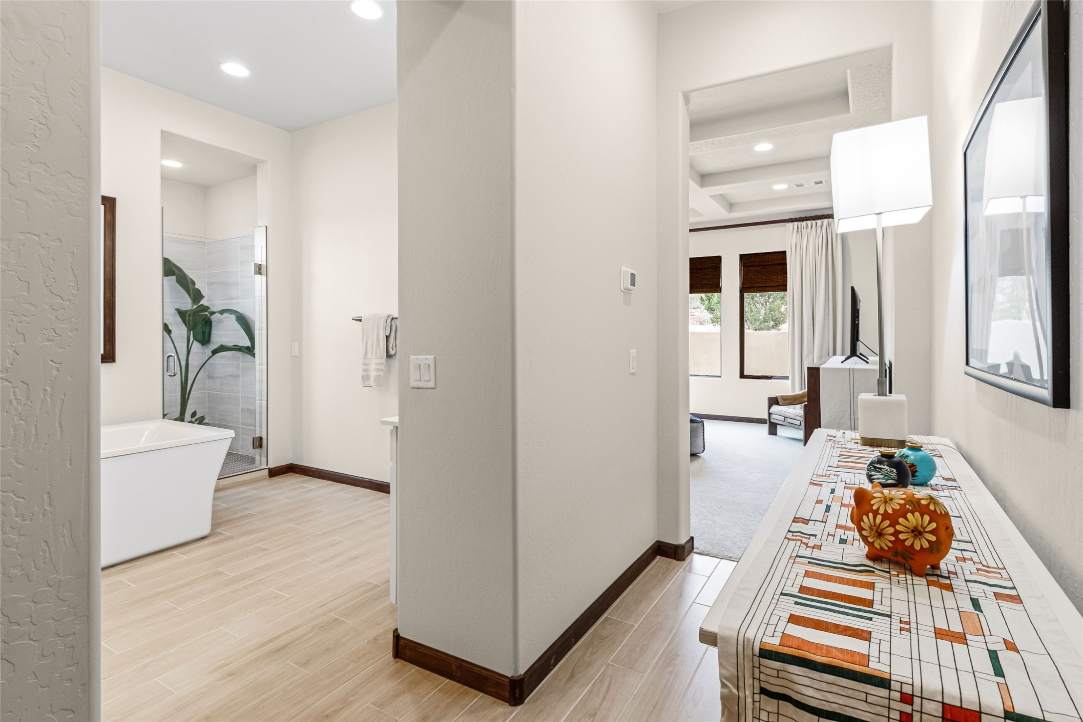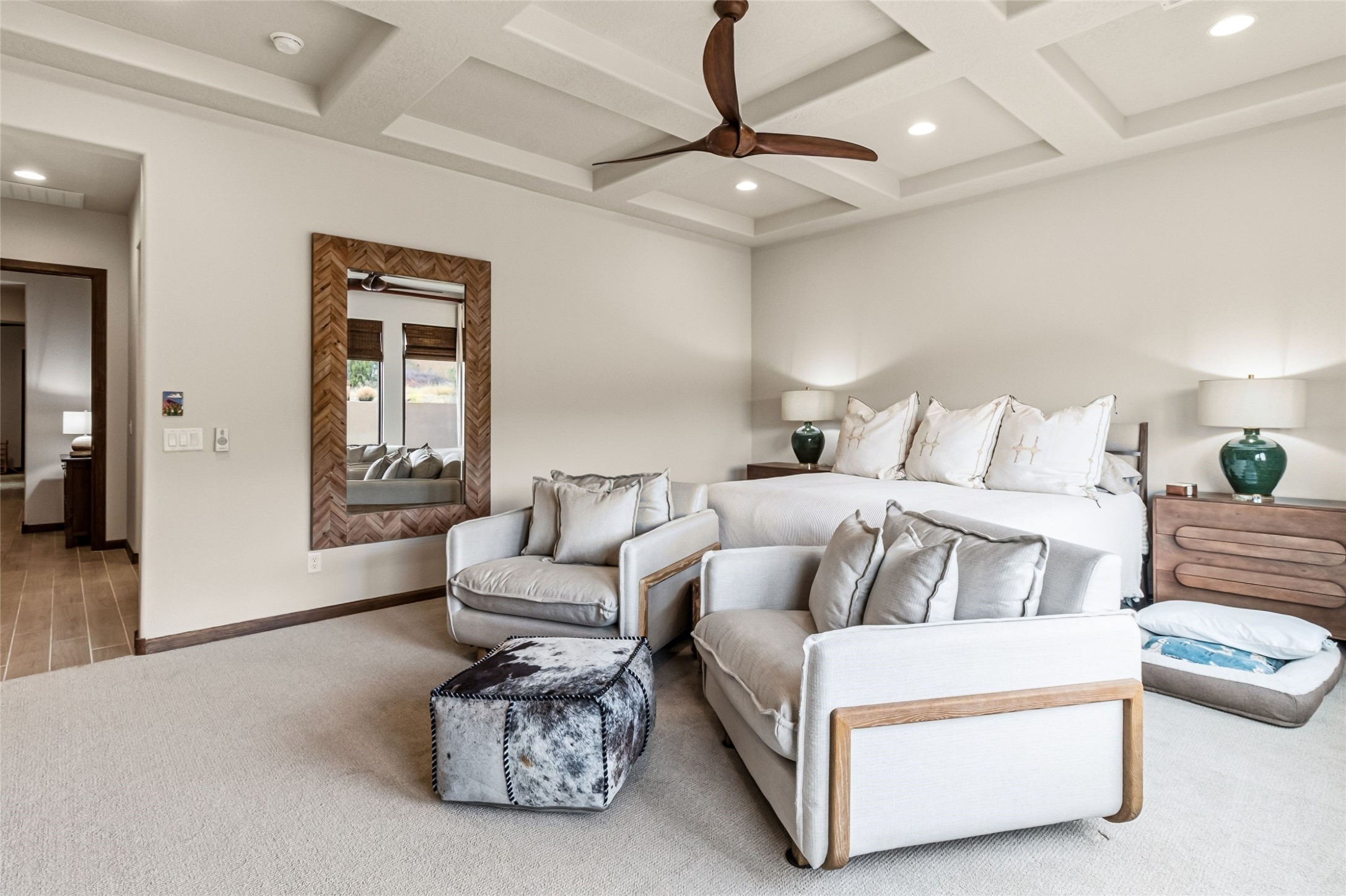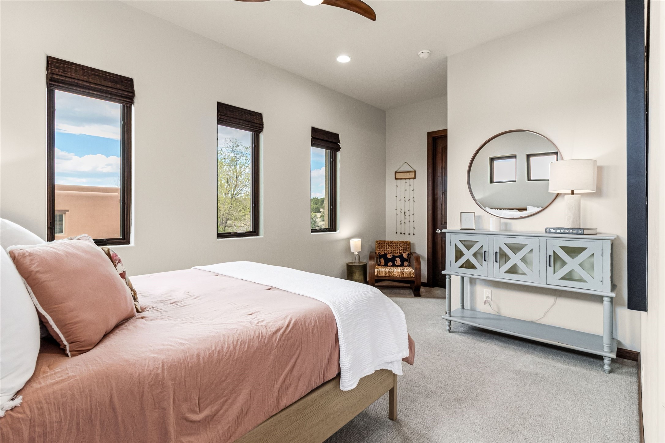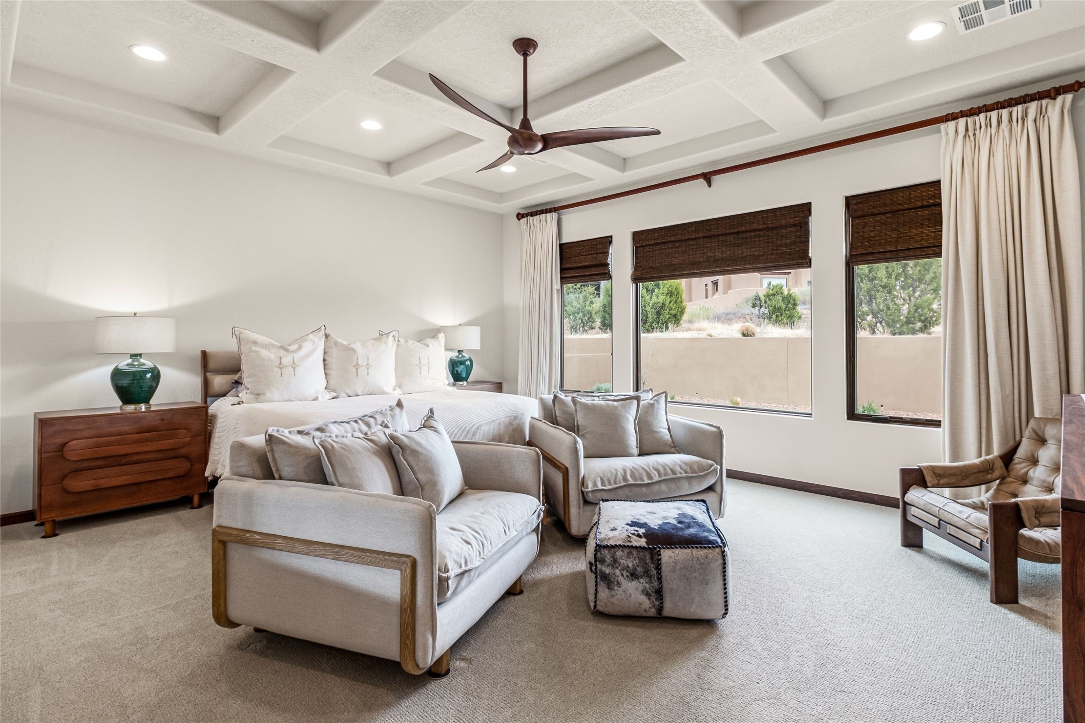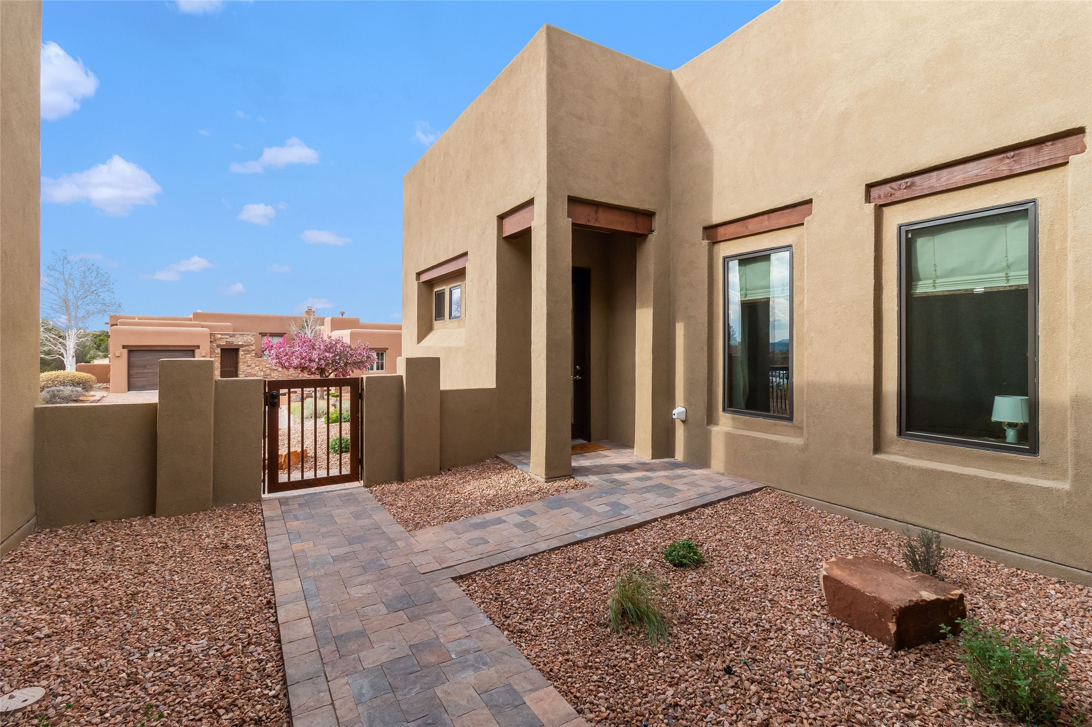 Set at the end of a quiet cul-de-sac in Las Terrazas at Las Campanas, this recently completed 2023 home offers a thoughtful blend of gathering spaces and private retreats. An inviting entry courtyard connects the main residence and a separate casita, creating flexibility for guests, work, or extended stays. Inside, the open layout unfolds with distinct yet connected living, dining, and kitchen spaces, along with a tucked-away family room for more relaxed moments. The kitchen centers around a generous island with quartz countertops, bar seating, and abundant prep space, complemented by double ovens, a coffee bar, and a large walk-in pantry. Retracting sliding glass doors open to a covered portal with a fireplace and a walled, low maintenance yard. The primary suite offers a spa-like bath and spacious closet, while three additional bedrooms are set along a private hallway with a secondary living area. A dedicated office with French doors, along with a tandem three-car garage, mudroom, and ample storage, complete a home designed for comfort, flexibility, and everyday ease. Adjacent to dedicated open space and walking paths, with HOA-covered maintenance, gated entry, 24-hour security, and EMT services.
