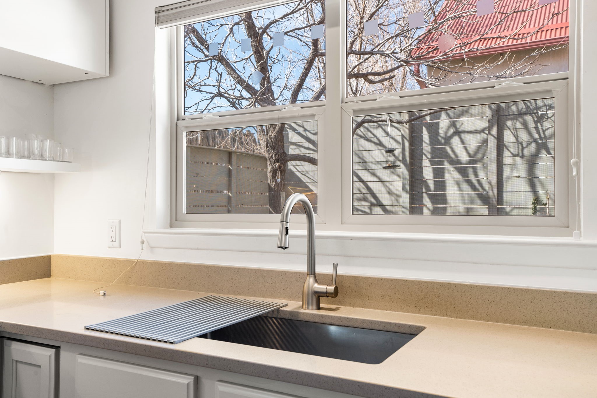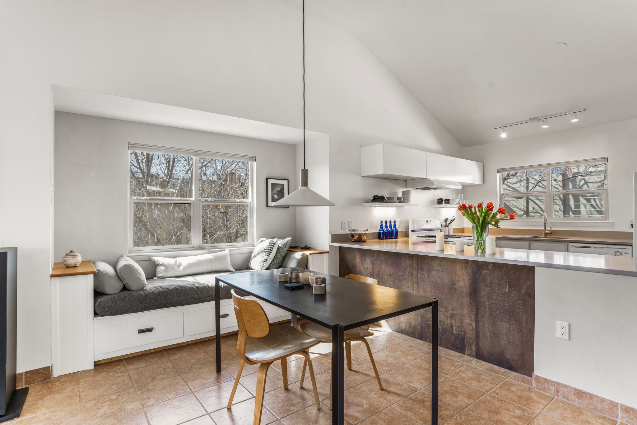 Enjoy a fulfilling lifestyle in a 55+ well-organized, thoughtfully designed co-housing "green" community. Sand River is quiet and peaceful, and owners are committed to living in collaboration, fully participating in all aspects of the community. The complex consists of 28 units along with a Community House offering a commercial kitchen, gathering space, library, guest suite, laundry, administrative office, and EV hook-ups. This 1 bedroom, 1 bathroom end-unit is ideally located in a convenient central location of town, with easy access to nearby shopping, restaurants, and everyday amenities.Inside, you'll find an open floor plan filled with natural light, enhanced by the home's end-unit location. The open kitchen features new countertops and flows seamlessly into the main living space, creating a bright and comfortable area perfect for everyday living or entertaining. A built-in custom window seat adds charm and functionality, while a flex space/office area provides versatility for working from home or additional living needs.The bathroom has been tastefully upgraded with a new vanity, countertop, and backsplash, giving the space a fresh and modern feel. Throughout the home, custom lighting and upgraded fixtures add warmth and style--and they convey with the property.Step outside to enjoy your enclosed back patio, complete with a custom upgraded wood fence, offering privacy and a great space for relaxing outdoors. Additional highlights include ceiling storage, in-floor radiant heating, and new thermostats for improved comfort and efficiency. Recent improvements include a new hot water heater installed in 2025, along with many additional upgrades throughout the home.Residents of Sand River Co-op benefit from an HOA that covers exterior stucco and roof maintenance, helping protect your investment and simplify homeownership. HOA dues are approx $250 per month.With its thoughtful updates, flexible living spaces, and excellent location, this light-filled condo offers comfort, convenience, and value in a welcoming community.