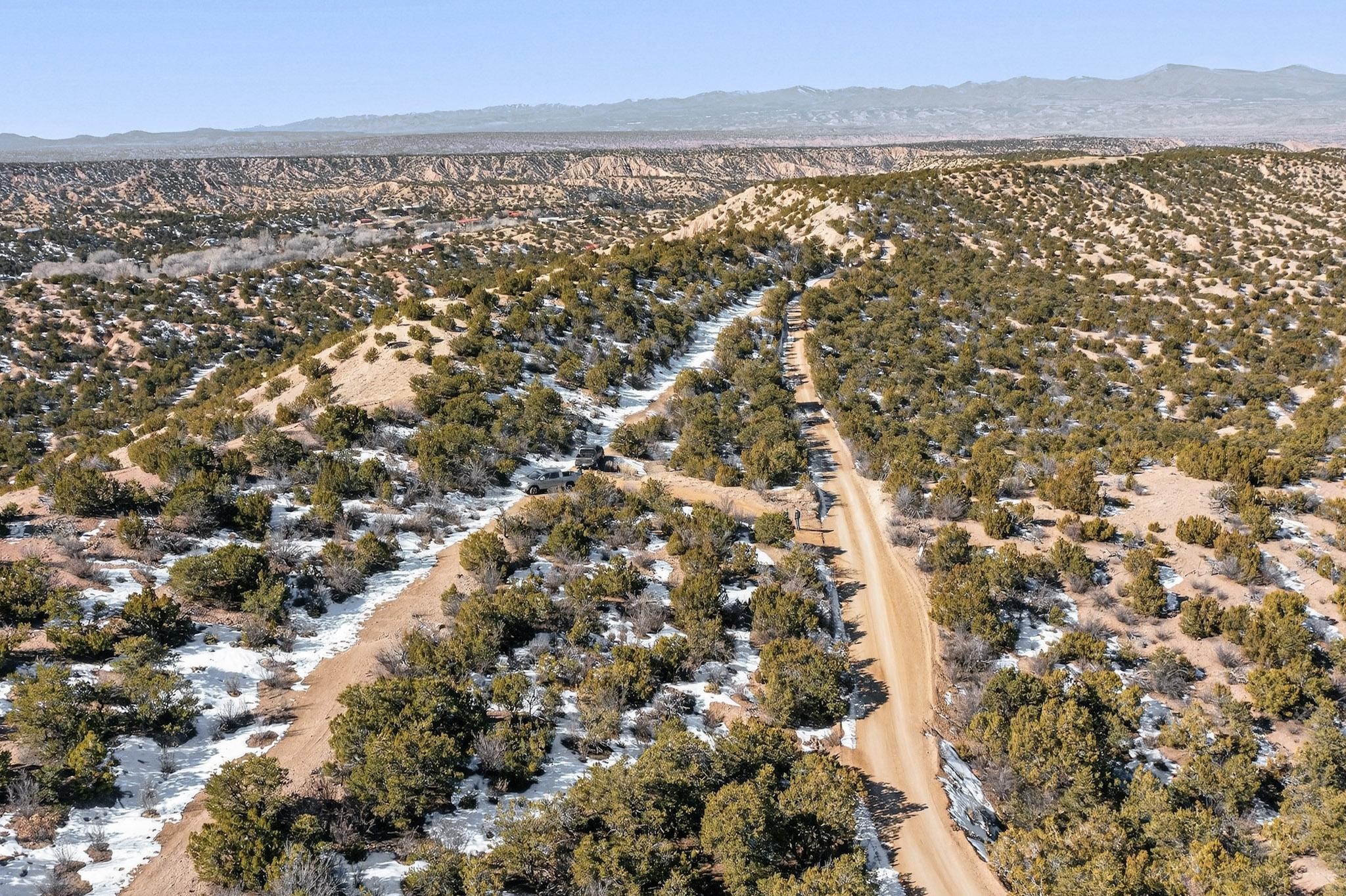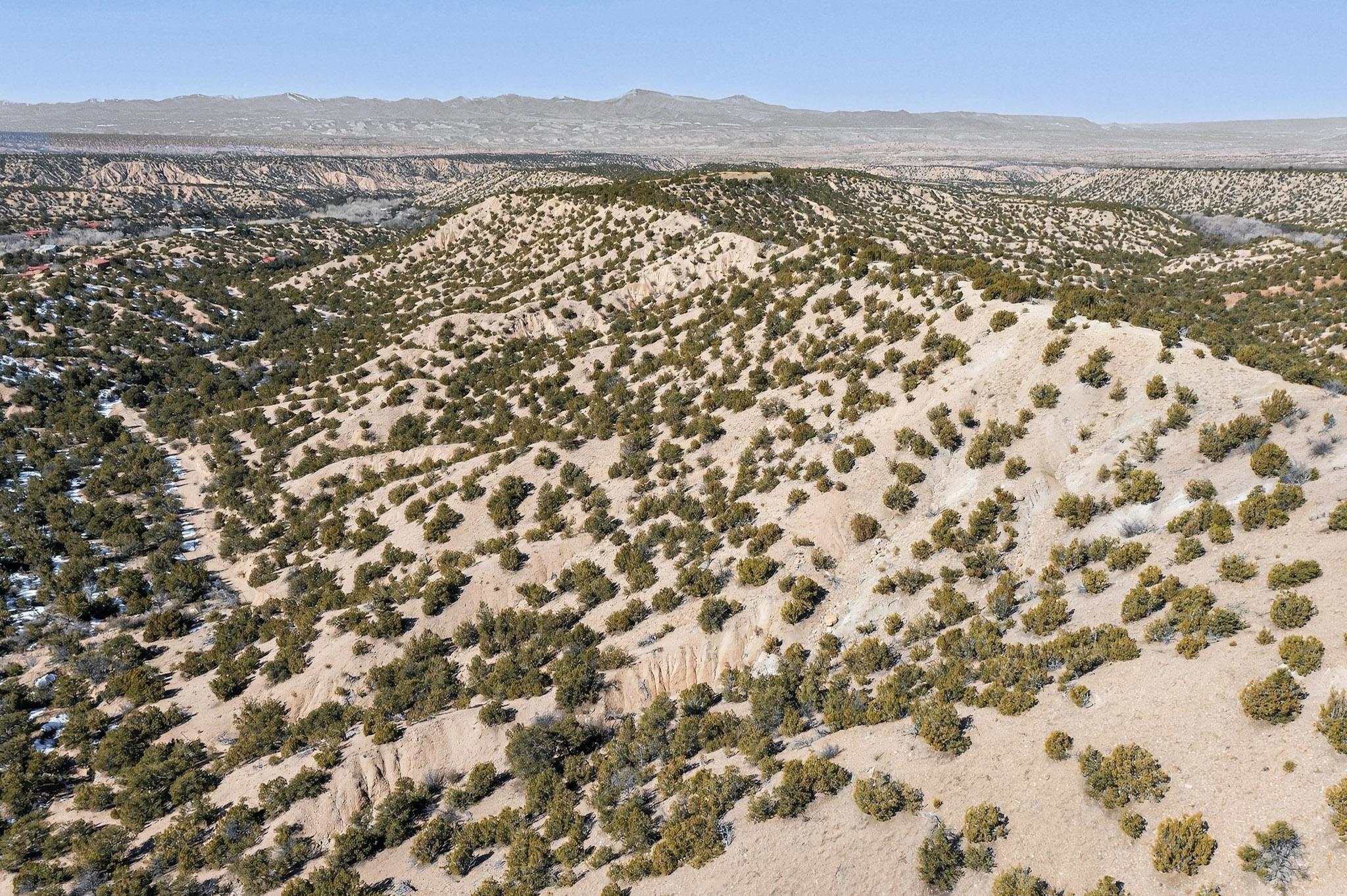 Breathtaking views from this astonishing 15 acre ridge top lot in a small private and gated subdivision moments from the village of Rio En Medio, which has access to a trail head into the mountains of the National Forest and a nearby waterfall. A deep, sandy bottomed, canyon cuts through the lot. Shared well and power available. Short, level and private access road (easement) off the main road. Minimal CC&Rs. All 5 lots can be purchased as a package. The buildable site offers spectacular views but will need expert construction and design flair for each terrain. Minutes to fine dining at the Four Seasons Encantado Resort.