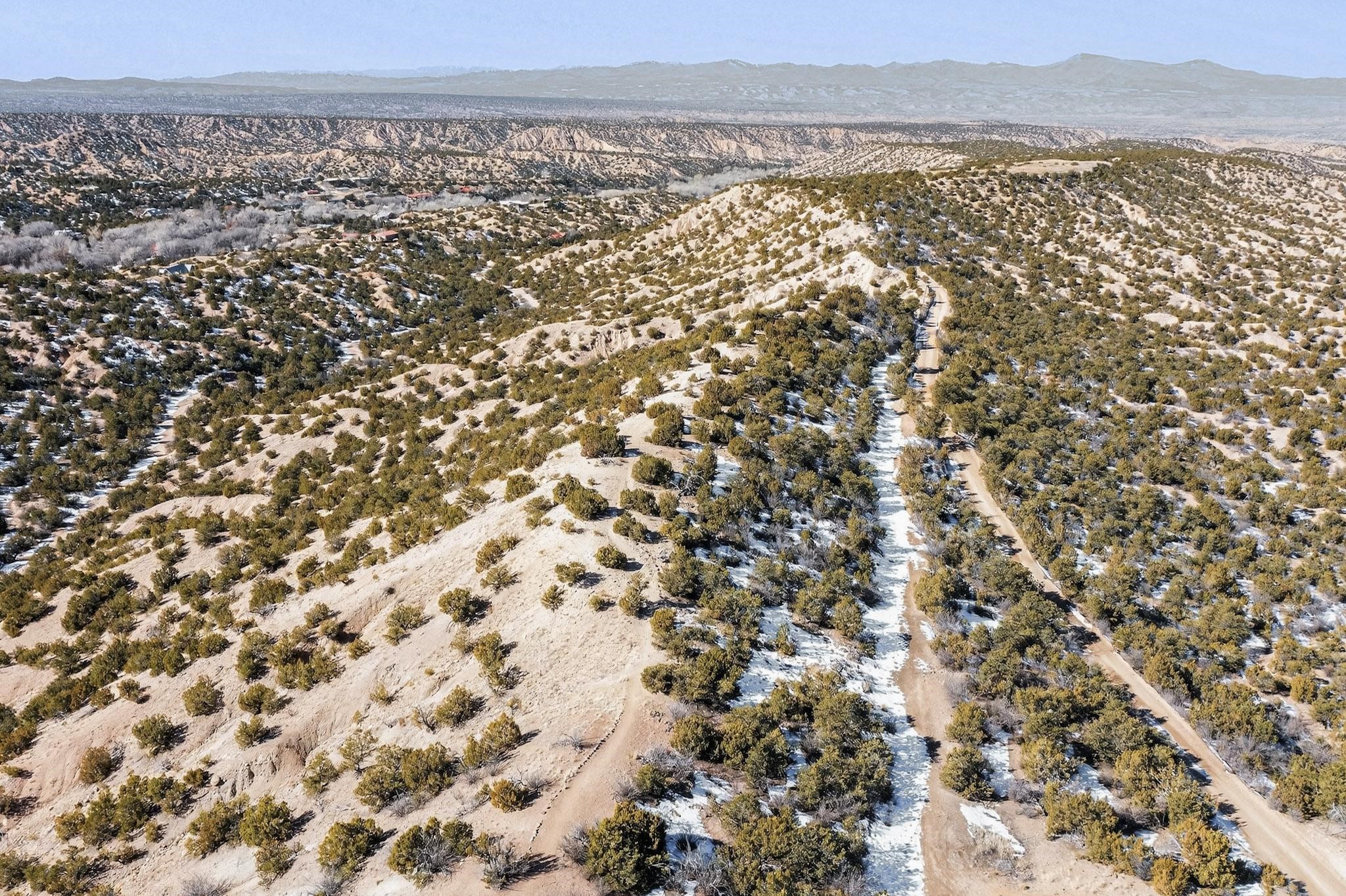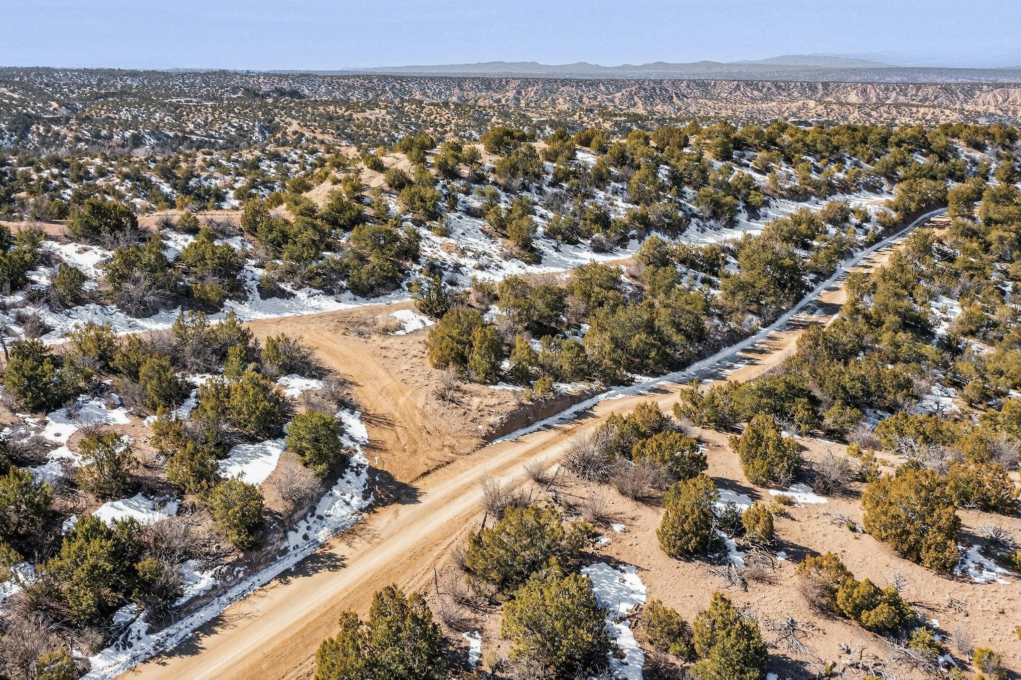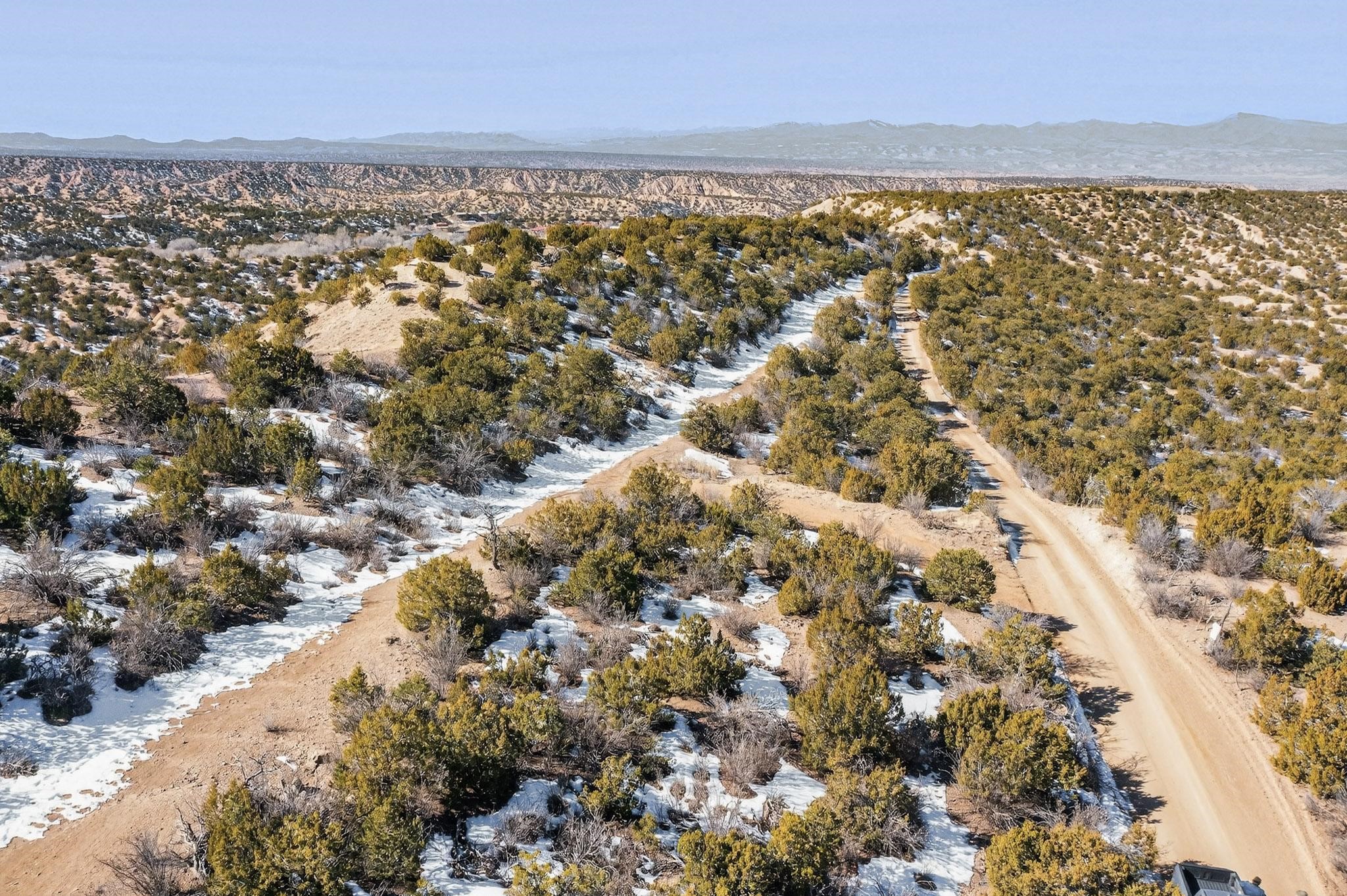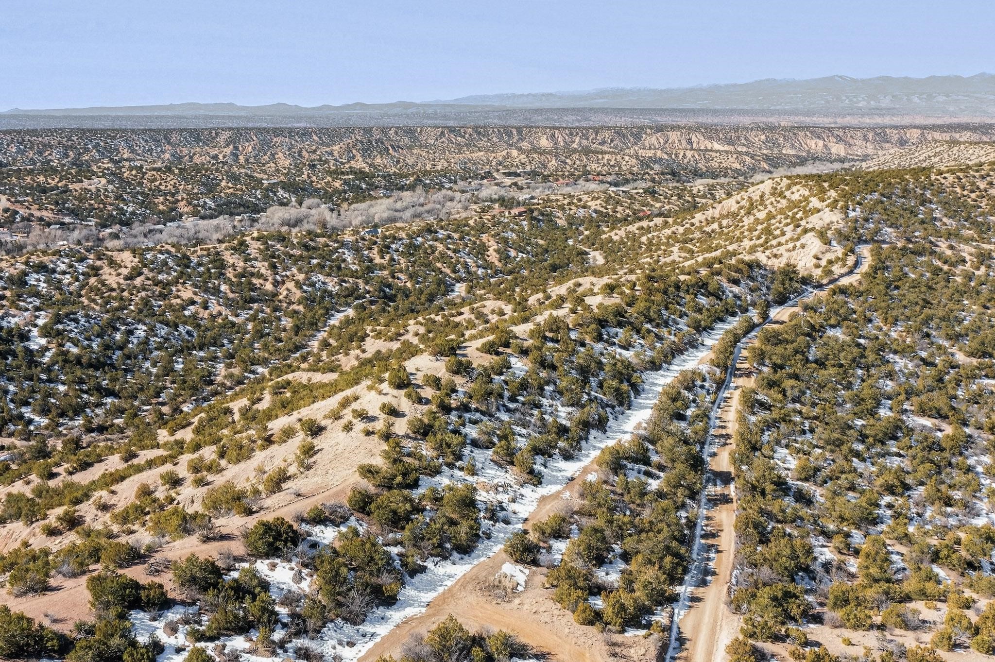 Breathtaking views from this astonishing 15 acre ridge top lot in a small private and gated subdivision moments from the village of Rio En Medio, which has access to a trail head into the mountains of the National Forest and a nearby waterfall. A deep, sandy bottomed, canyon cuts through the lot. Shared well and power available. Short, level and private access road (easement) off the main road. Minimal CC&Rs. All 5 lots can be purchased as a package. The buildable site offers spectacular views but will need expert construction and design flair for each terrain. Minutes to fine dining at the Four Seasons Encantado Resort.