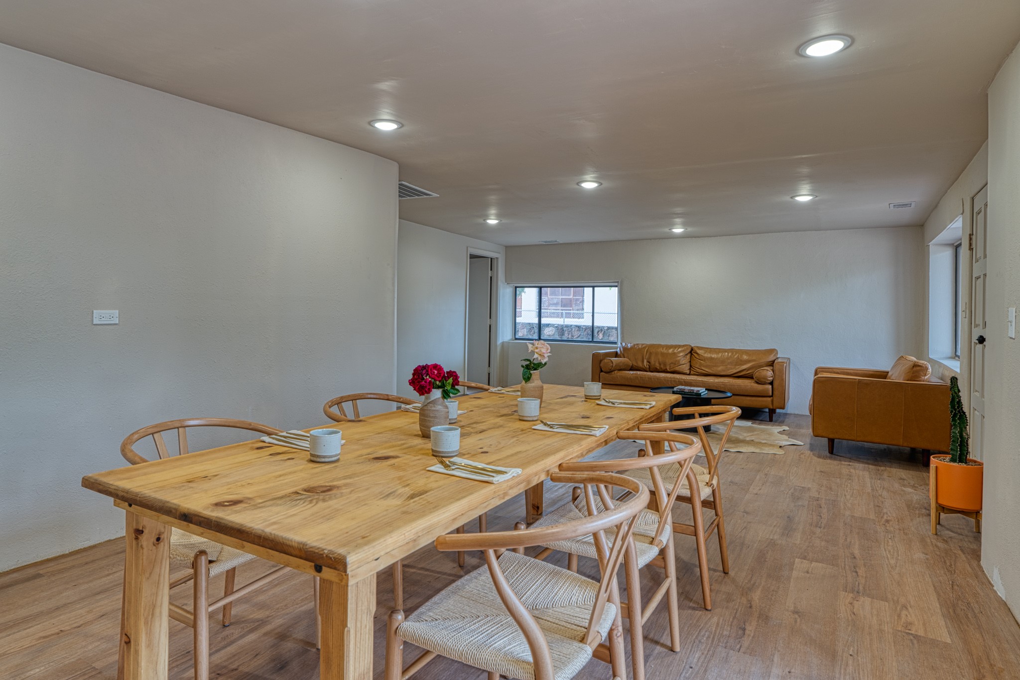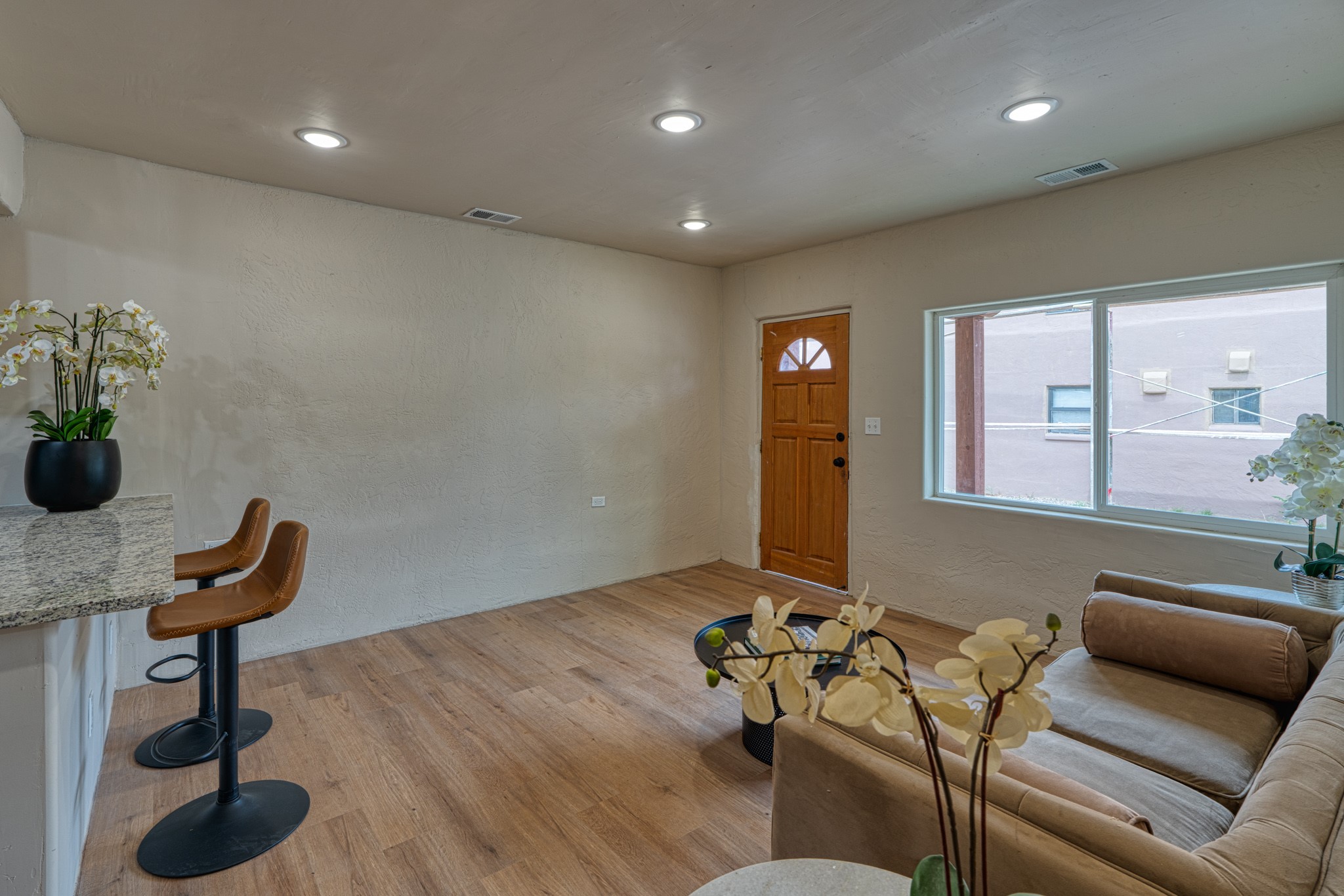 Incredible 7-unit investment opportunity in the heart of Espaola's desirable westside neighborhood, nestledbetween the Rio Grande River and the Plaza. 720 School Street is fully occupied and has been extensivelyremodeled, offering a rare turnkey multifamily property with low/no maintenance ownership. Updates include newflooring, newer central heat and air conditioning, upgraded electrical and plumbing, newer kitchens withgranite countertops, natural stone backsplash, stainless steel appliances, LED lighting throughout, newerstucco, metal roof, and updated windows. Each unit features its own in-unit laundry and outdoor space, plusdesignated parking. Residents also enjoy access to a shared 0.56-acre lot--ideal for relaxing or gathering.Condominium documents are complete and available for review, and ready to record, providing future flexibilityfor individual unit sales. Located approximately 20 miles from Los Alamos National Laboratory, this propertyoffers strong rental appeal with excellent long-term investment potential.