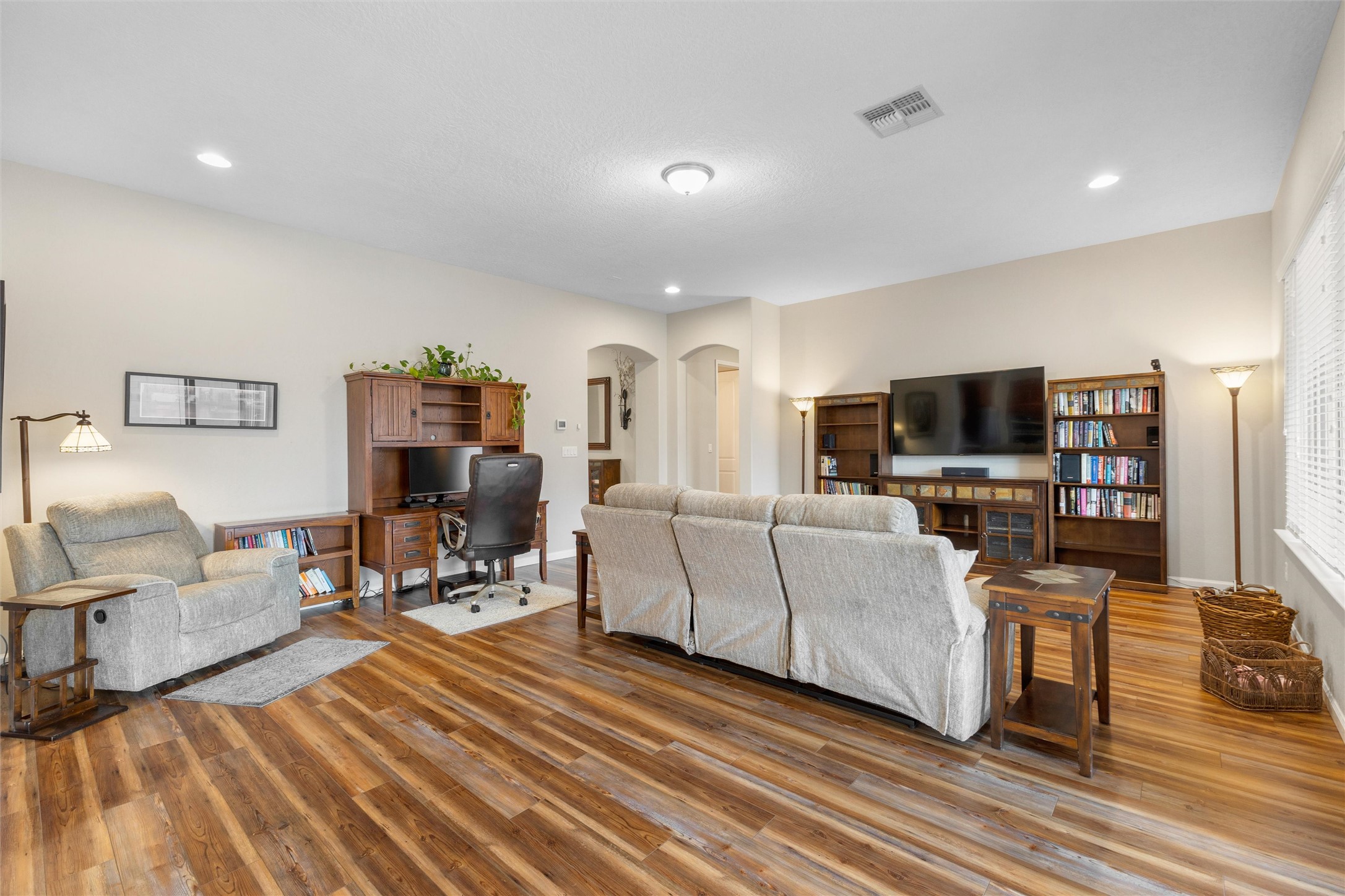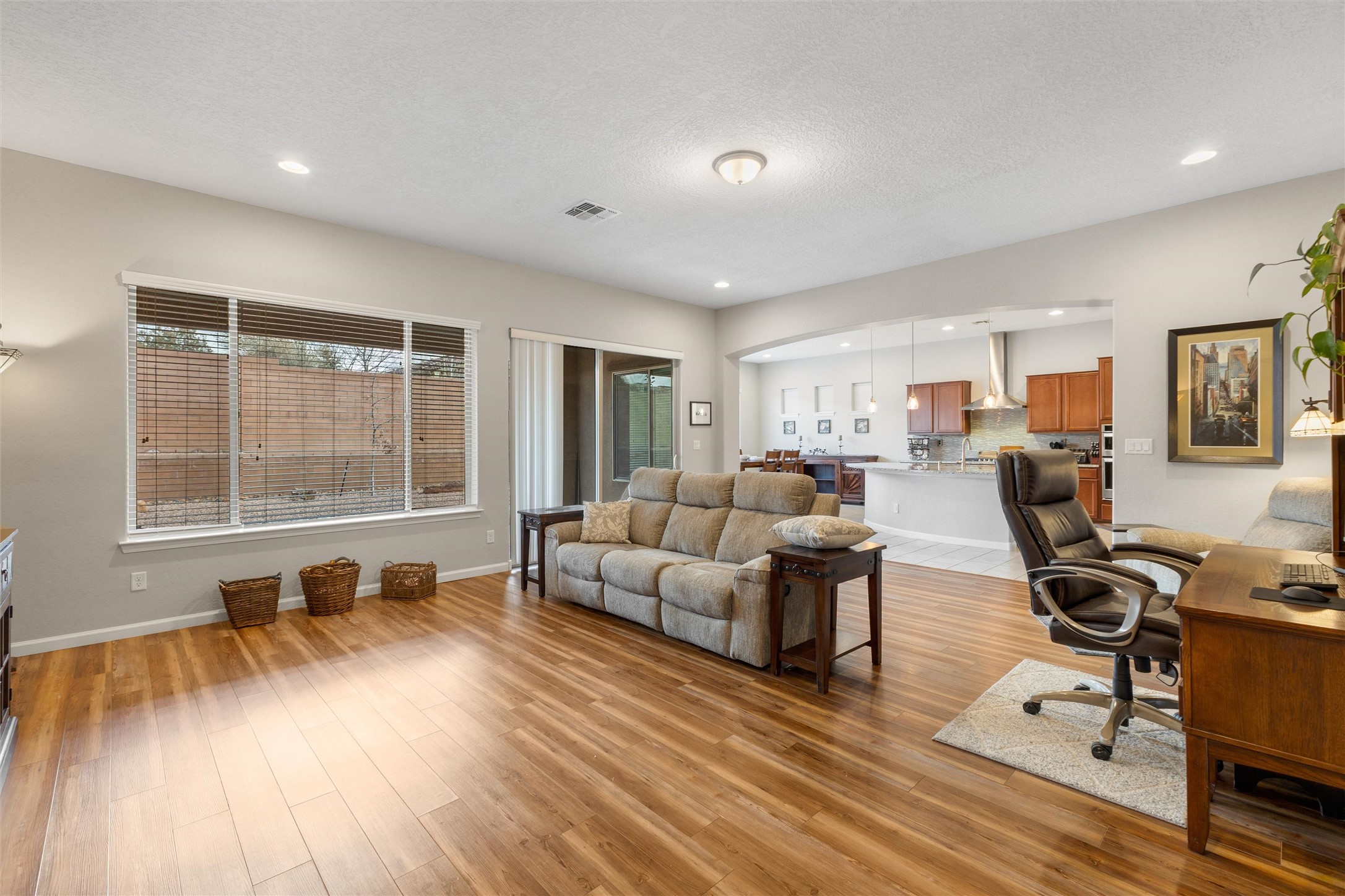 Better Than New! This impeccably maintained 2,490 sq. ft. Pulte home is a masterclass in pride of ownership. Boasting a rare single-story layout with 2 BRs, 2.5 BAs, and TWO flexible bonus rooms, this home adapts to your lifestyle.Enjoy an abundance of natural light and brand-new flooring in the living area. You will notice the comfort of the upgraded carpet/padding in the bedrooms. Modern and efficient essentials throughout, including a tankless water heater, forced air heating and refrigerated air PLUS a sleek, low-maintenance backyard. From the pristine 2-car garage to the airy open-concept living space, this home is 100% move-in ready.