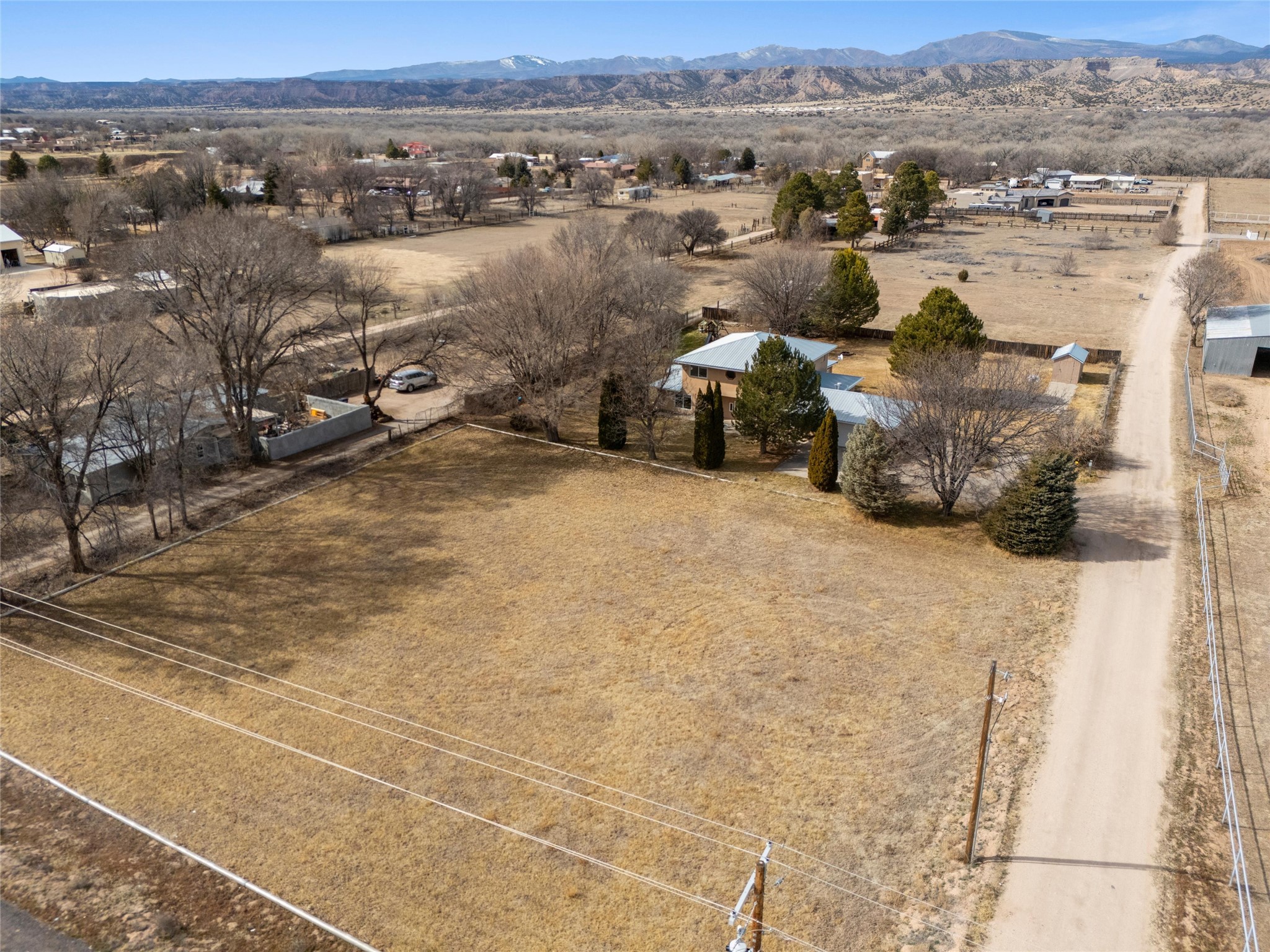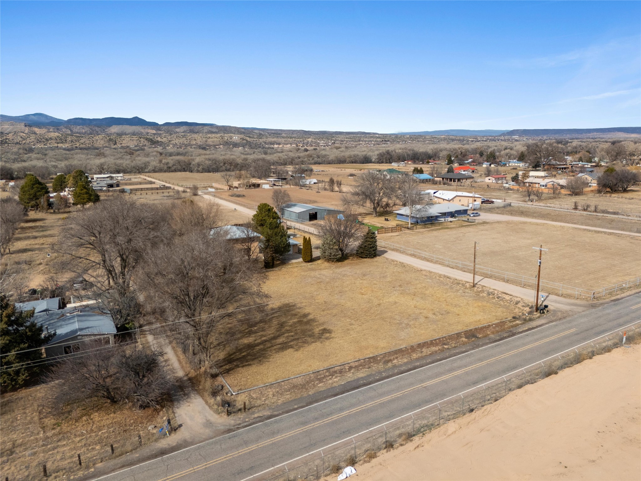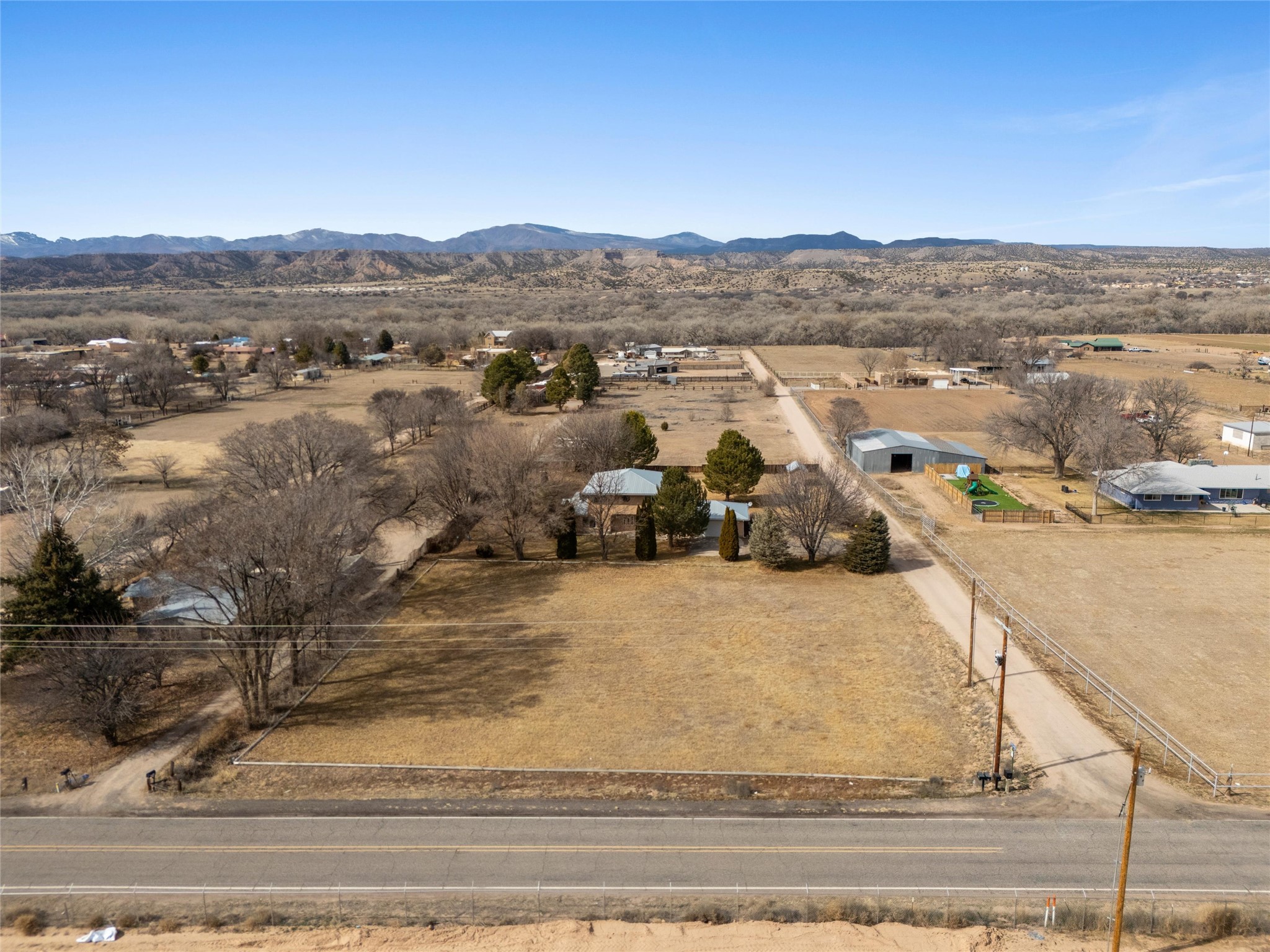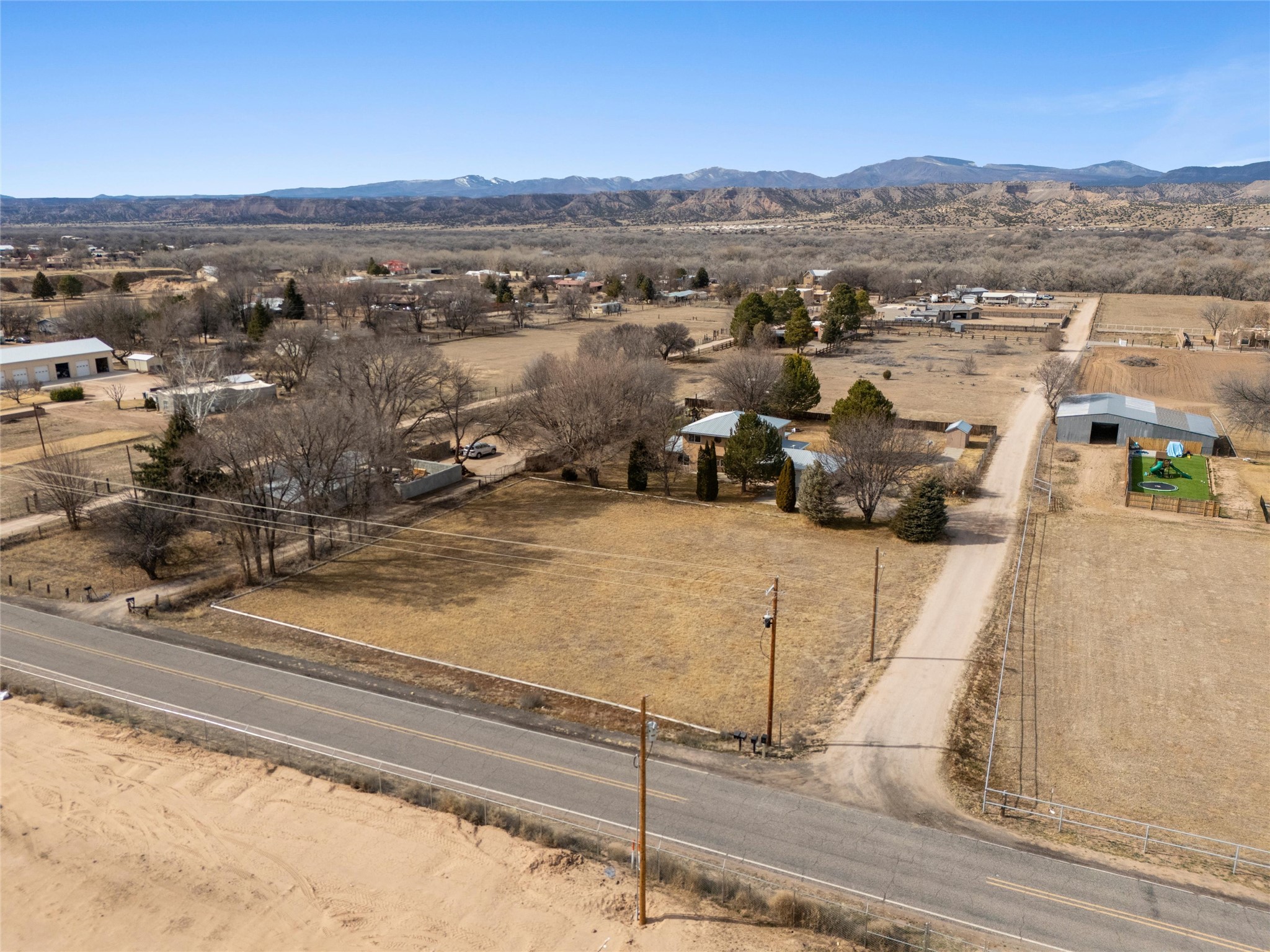 Experience elevated Northern New Mexico living at 299 NM-399 in La Mesilla--where refined comfort meets wide-open skies and river valley beauty. Set on 1.467 acres with valuable water rights, this exceptional 3-bedroom, 2.5-bath residence offers 3,093 square feet of thoughtfully curated living space, designed for both elegance and ease.Every detail reflects the charm and craftsmanship of Northern New Mexico homes, featuring Saltillo tile flooring, granite countertops, and radiant heated floors throughout, creating a warm and inviting atmosphere of timeless luxury. The expansive layout flows effortlessly, with generous living areas perfect for sophisticated entertaining or intimate gatherings. A large master suite with a private ensuite offers a serene retreat, while a spacious office provides an ideal work-from-home or executive setting.Outdoors, the property unfolds into a private sanctuary--complete with a personal well, manicured grounds, and a basketball court for recreation and leisure. Just a short stroll away, the legendary Rio Grande offers serene wildlife and breathtaking sunsets along its banks.For golf enthusiasts, the acclaimed Black Mesa Golf Club is less than a mile away, offering world-class play against dramatic high desert vistas.Perfectly positioned with convenient access to Taos, Los Alamos, and Santa Fe, this property delivers a rare combination of privacy, prestige, and connectivity.With a 2-car attached garage and expansive acreage, this home embodies the refined Northern New Mexico lifestyle in every detail.