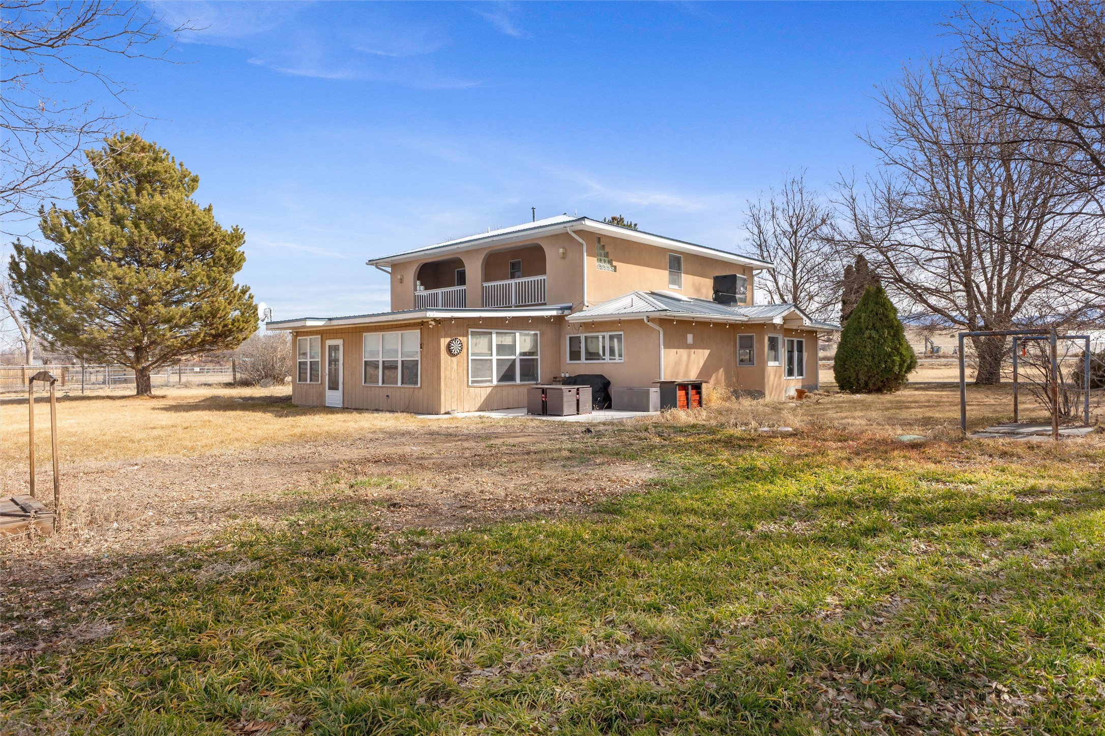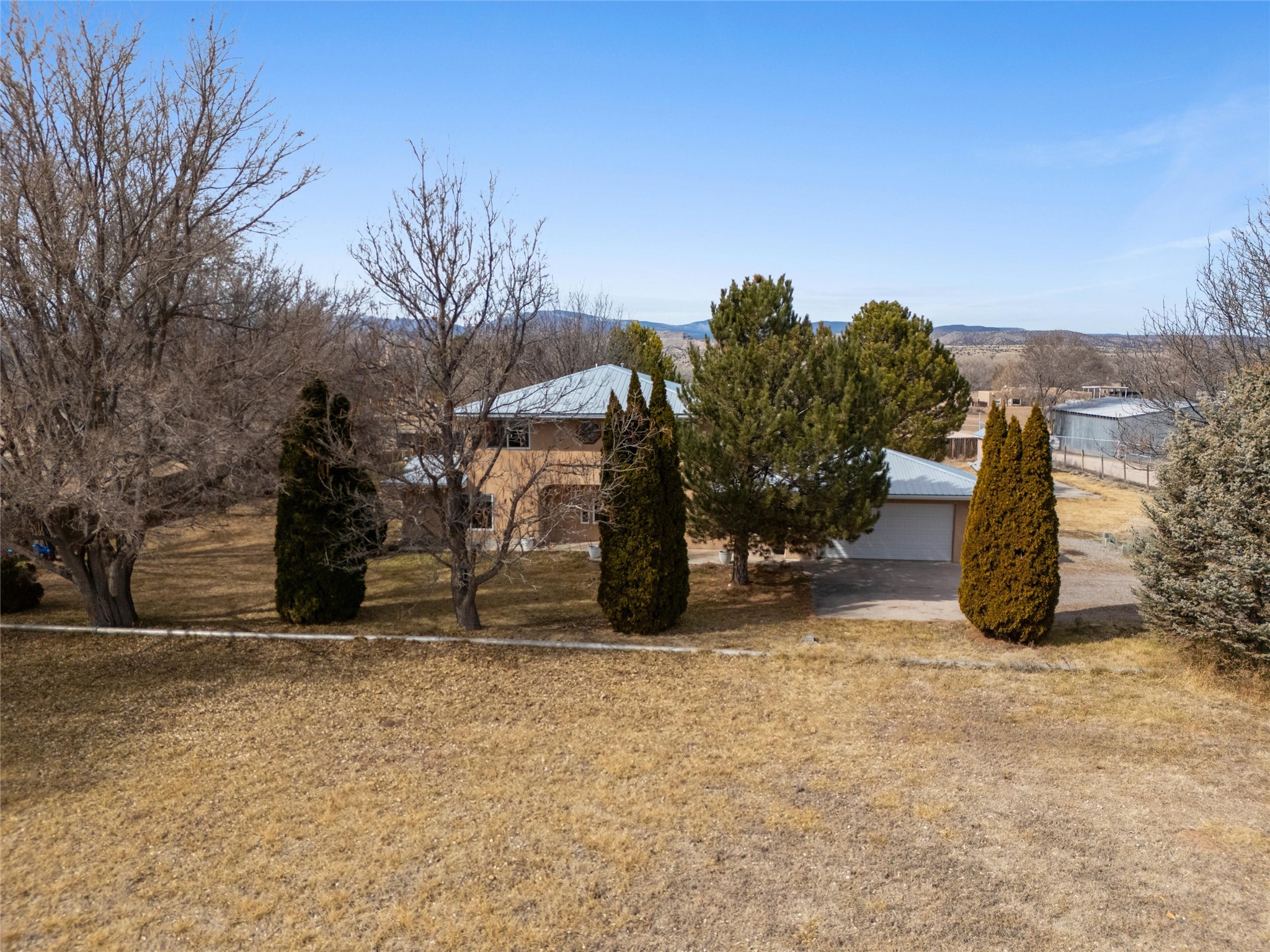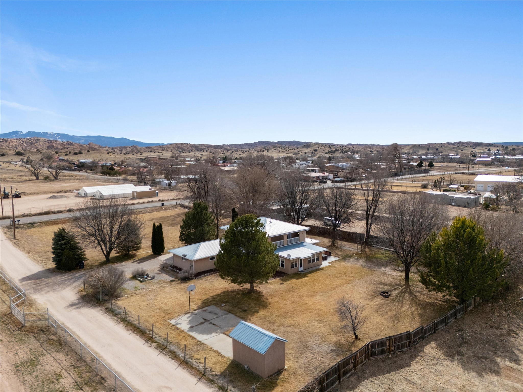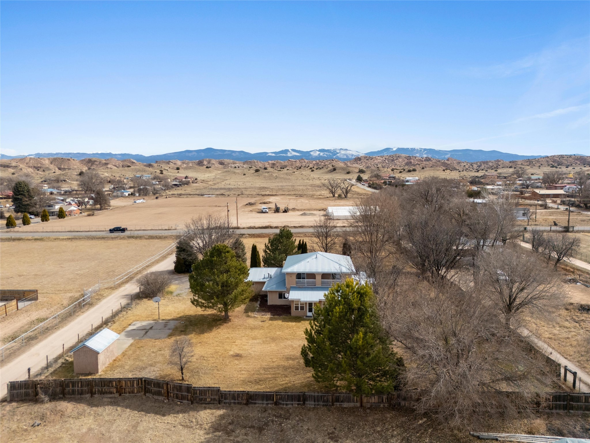Experience elevated Northern New Mexico living at 299 NM-399 in La Mesilla--where refined comfort meets wide-open skies and river valley beauty. Set on 1.467 acres with valuable water rights, this exceptional 3-bedroom, 2.5-bath residence offers 3,093 square feet of thoughtfully curated living space, designed for both elegance and ease.Every detail reflects the charm and craftsmanship of Northern New Mexico homes, featuring Saltillo tile flooring, granite countertops, and radiant heated floors throughout, creating a warm and inviting atmosphere of timeless luxury. The expansive layout flows effortlessly, with generous living areas perfect for sophisticated entertaining or intimate gatherings. A large master suite with a private ensuite offers a serene retreat, while a spacious office provides an ideal work-from-home or executive setting.Outdoors, the property unfolds into a private sanctuary--complete with a personal well, manicured grounds, and a basketball court for recreation and leisure. Just a short stroll away, the legendary Rio Grande offers serene wildlife and breathtaking sunsets along its banks.For golf enthusiasts, the acclaimed Black Mesa Golf Club is less than a mile away, offering world-class play against dramatic high desert vistas.Perfectly positioned with convenient access to Taos, Los Alamos, and Santa Fe, this property delivers a rare combination of privacy, prestige, and connectivity.With a 2-car attached garage and expansive acreage, this home embodies the refined Northern New Mexico lifestyle in every detail.