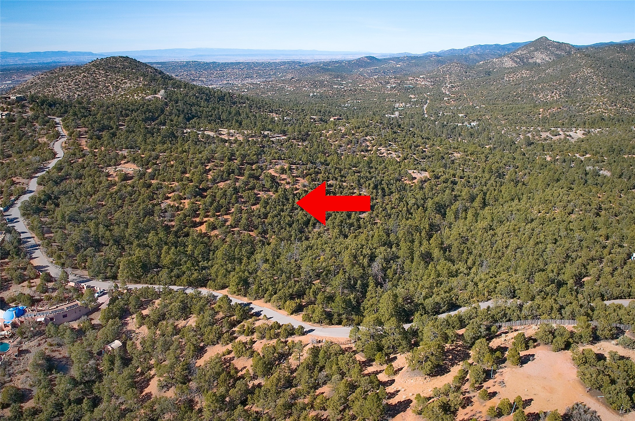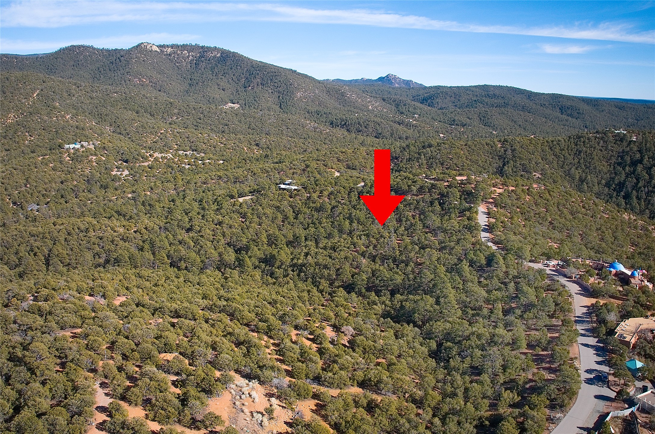 Located in the gated community of the Los Cerros Subdivision on Double Arrow Road off of the Old Santa Fe Trail. 10.03 acres of breathtaking views of the Sangre de Cristo mountains. Atalaya peak is a nice 90 minute hike directly from the property. This lot is ready to go with electrical utilities with a PNM transformer located on the property. A private well will be required. During the past four years, 4 private wells have been installed by other lot owners. The property has a few flat building envelopes to choose from right at the paved road but, of course, it is possible to venture into the property and construct a home with added privacy. The land is populated with Pinon, Ponderosa Pine, Scrub Oak and a variety of cactus. One of the most beautiful locations just 6 miles to town. Double Arrow Road comprises a high-end community. The subdivision, where the property is located, is comprised of nine lots with five high-end homes currently built. Some of the homes have been here since the 1980s. The road is paved leading to the property and it is maintained by the Los Cerros HOA. There will be a road maintenance agreement to sign with the HOA although the property is not part of the HOA. Annual contribution to the HOA will be approximately $500. Check the location and neighborhood on Google Maps. The land high in the Sangre de Cristo foothills, located just off the Old Santa Fe Trail, yet it is only 12 minutes from the Plaza in the center of Santa Fe. By just stepping out your future front door, you can hike or mountain bike the Ponderosa Ridge to Hidden Valley Road down to Wilderness Gate Road and right into town via Canyon Road. Atalaya Mountain trails are also accessible from the property. If you are lucky, you may spot coyotes, mule deer, and a variety of songbirds and birds of prey while you are out exploring.
