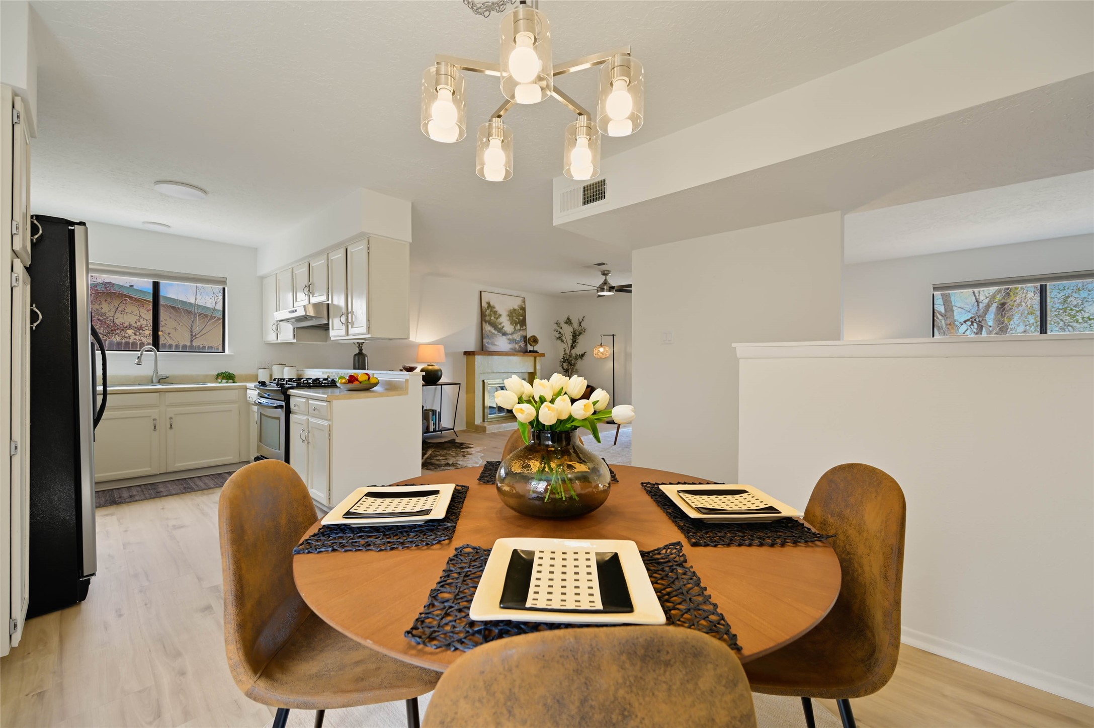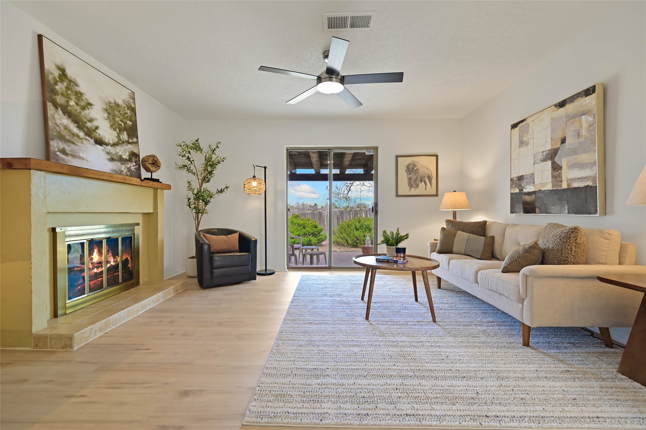 Welcome to this beautifully updated ranch style home located in the well-established Bellamah area. With 4 bedrooms and 2 bathrooms, this 1500 square foot home is ready for you to call it yours today. Enter through the nice courtyard that offers privacy and protection into an inviting flexible living space which then leads to an open concept dining, kitchen and living room space. Updates include fresh paint, new vinyl plank flooring throughout, new light fixtures and window shades as well as updated bathroom vanity, stainless steel appliances and updated fireplace mantel. A spacious backyard and 2-car garage round out this well-cared for home. Centrally located near parks such as Monica Lucero and Herb Martinez, also nearby are the Genoveva Chavez Center, the Arroyo Chamisa Trail system, local restaurants, gyms, shops and more. Imagine the Possibilities and schedule your showing today!