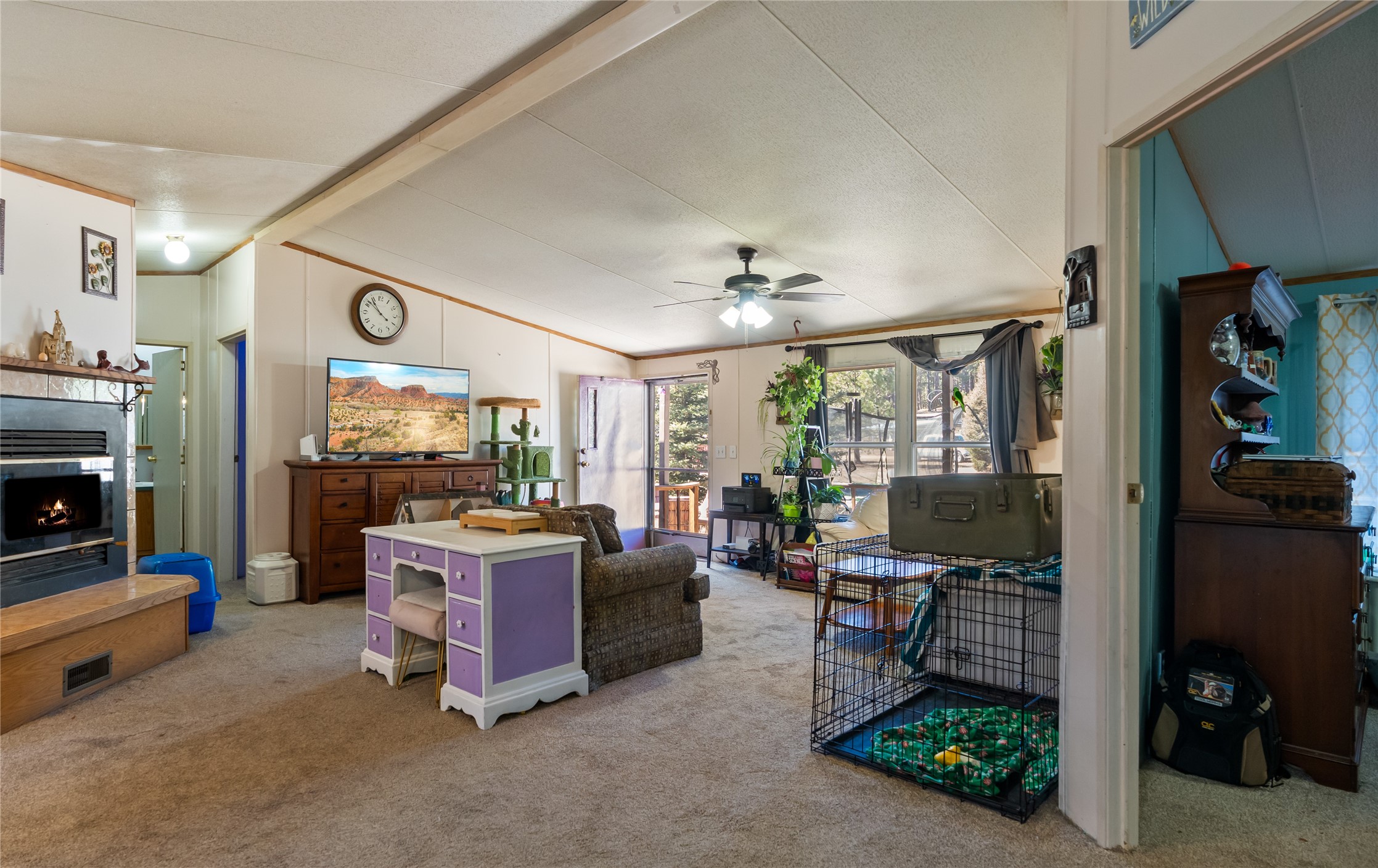 Fabulous Views, Easy Access, and a Great Location! Nestled in the tight-knit community of La Cueva, this home sits on a .84-acre lot overlooking the San Antonio Creek, surrounded by pine trees and nature. The east side of the property backs National Forest. The master bedroom is situated on one side of the home, with two additional bedrooms on the opposite end. Two full baths, including a relaxing garden tub. Open concept living with an efficient fireplace for cozy evenings at home. Country kitchen with plenty of counter space and an attached laundry room/pantry. Fishing and hiking right out your back door! Easy year-round access on a county-maintained road and a reasonable 40-minute commute to Los Alamos.