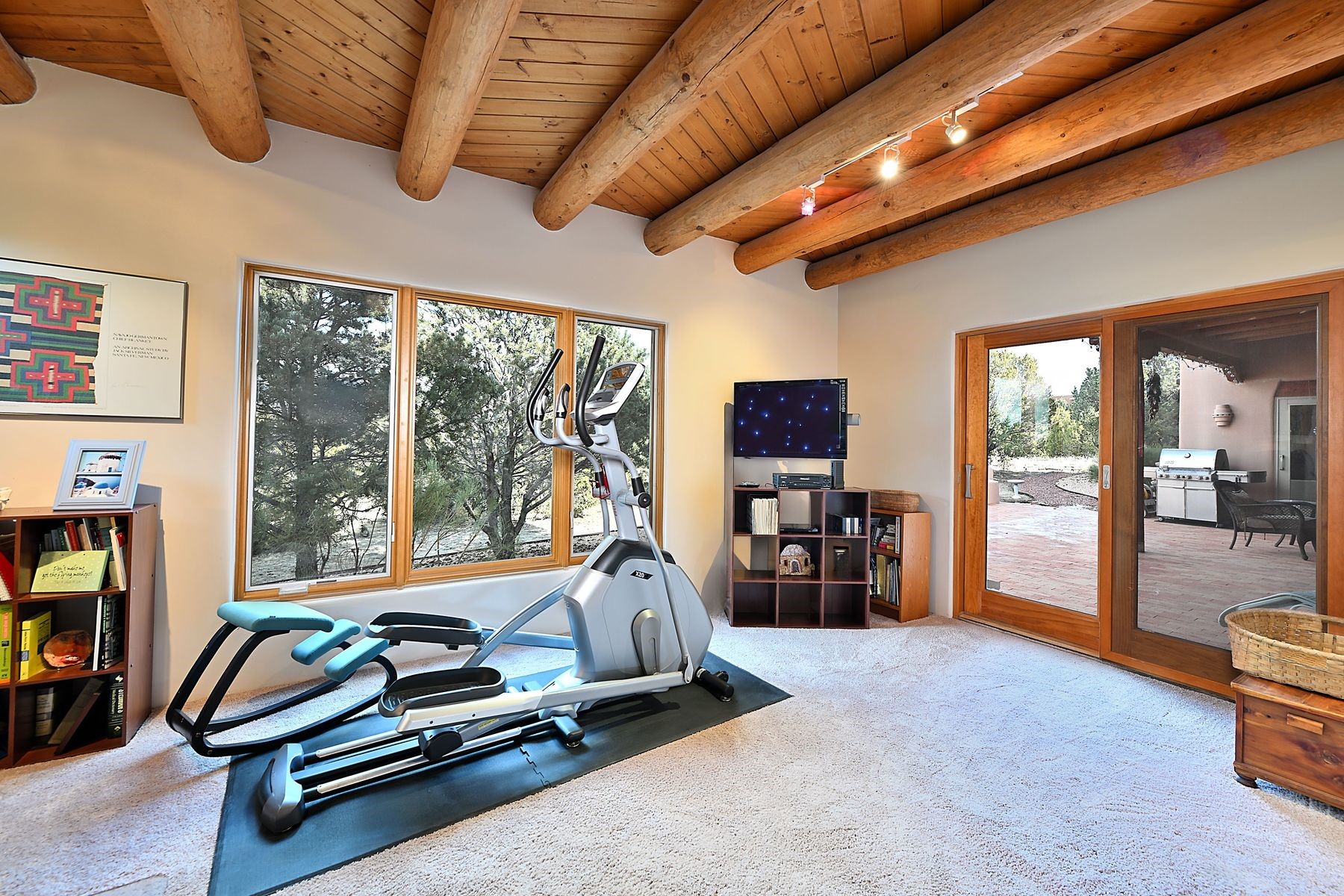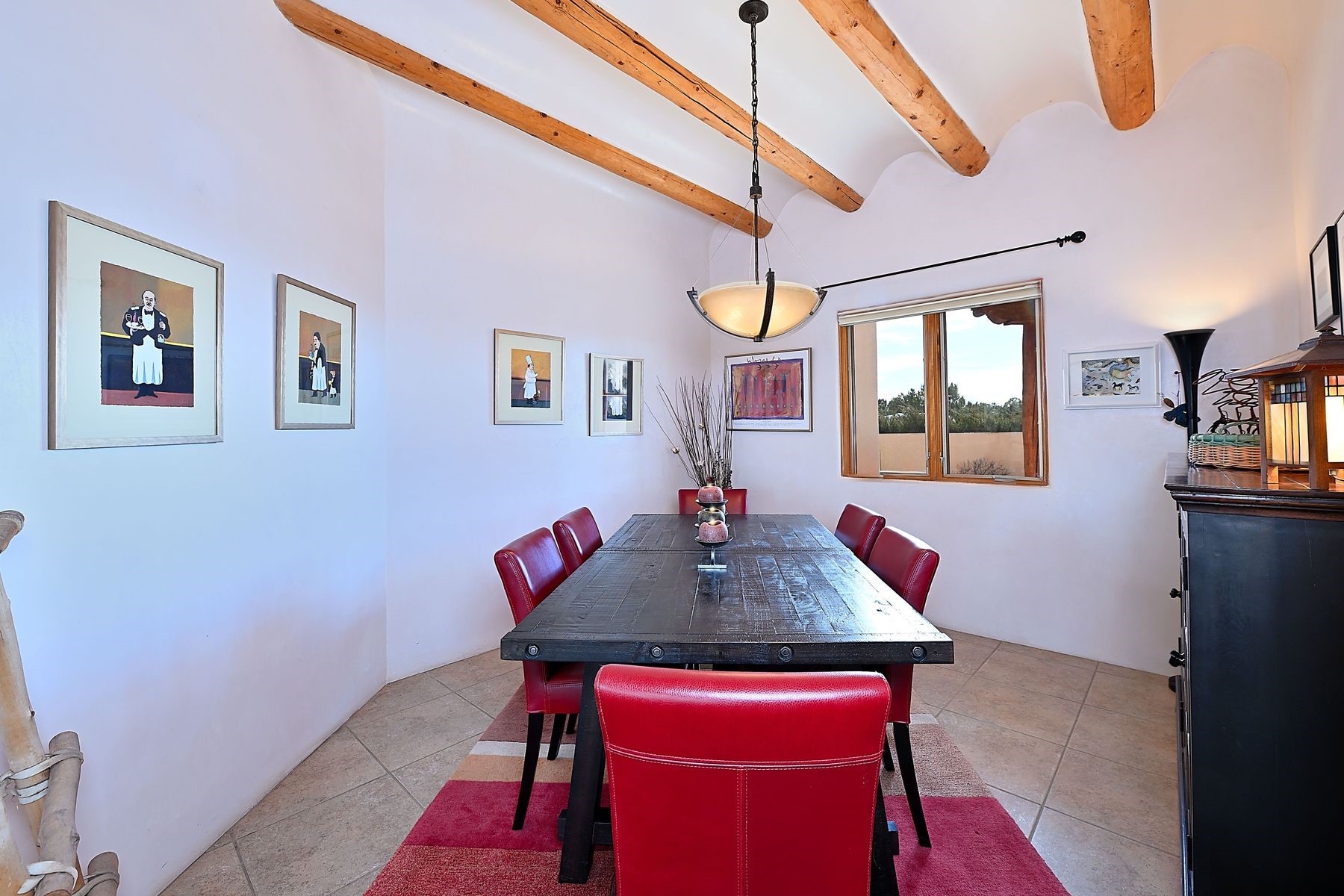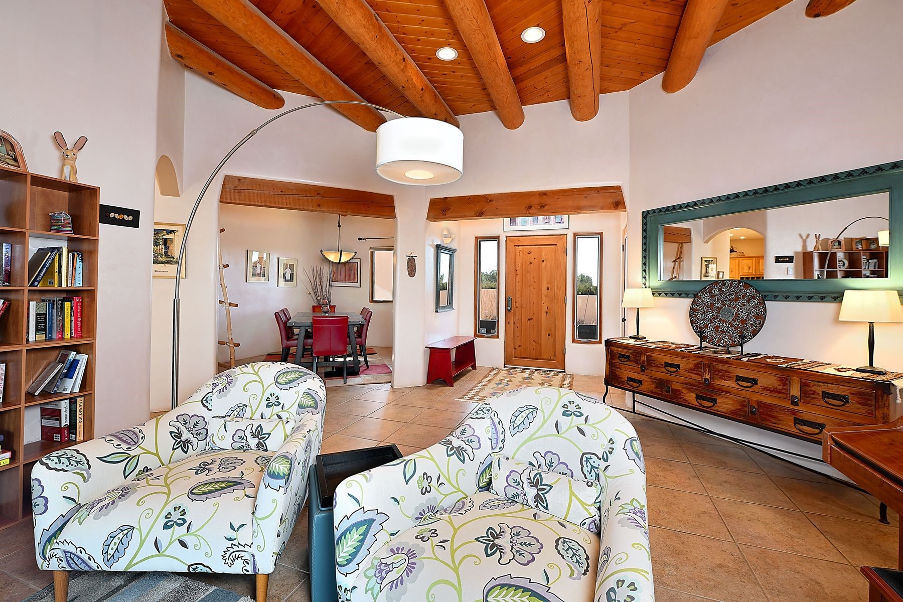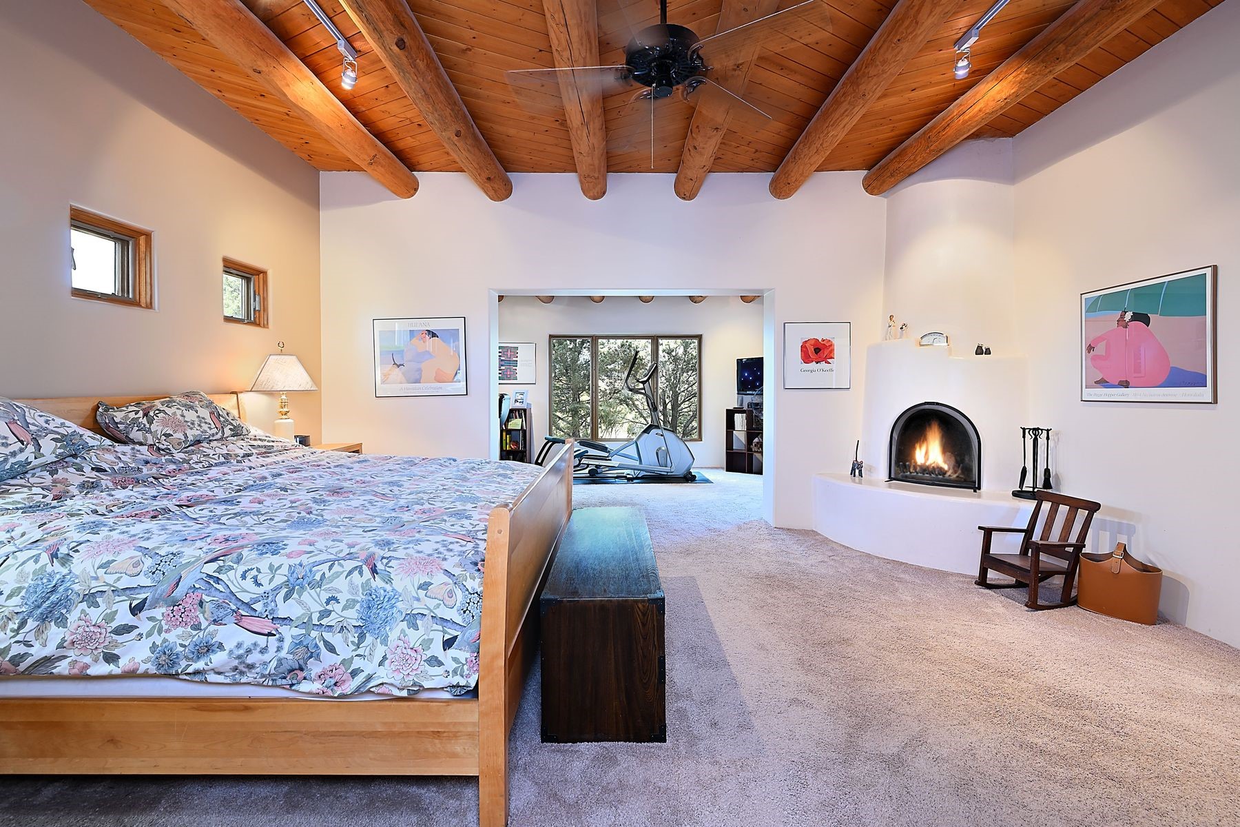 Bright and inviting, this light-filled four-bedroom home in Campos Conejos enjoys a private, quiet spot with spectacular views of the Sangre de Cristos. Plentiful windows, several sets of sliding glass doors, and an enviable portal and patio with a fireplace make the most of the majestic outlook. A central "piano room" and a dedicated dining room offer space for formal gathering and entertaining, while the generous open kitchen and its adjoining family room are destined to be the heart of relaxed day-to-day living. Secluded in the western wing are an owner's suite with a sitting room, a luxurious bath, and two walk-in closets; a guest bedroom or office; and a bright three-quarter bath; two additional bedrooms with a shared bath enjoy the peaceful privacy of the eastern wing of the home. Honey-hued woodwork, stone tile, subdued earth tones, and abundant skylights contribute to a welcoming warmth and an enlivening luster. Other highlights include a spacious laundry room and an oversized three-car garage. The desirable location provides a rare combination of seclusion and easy proximity to a wide variety of attractions and amenities.
