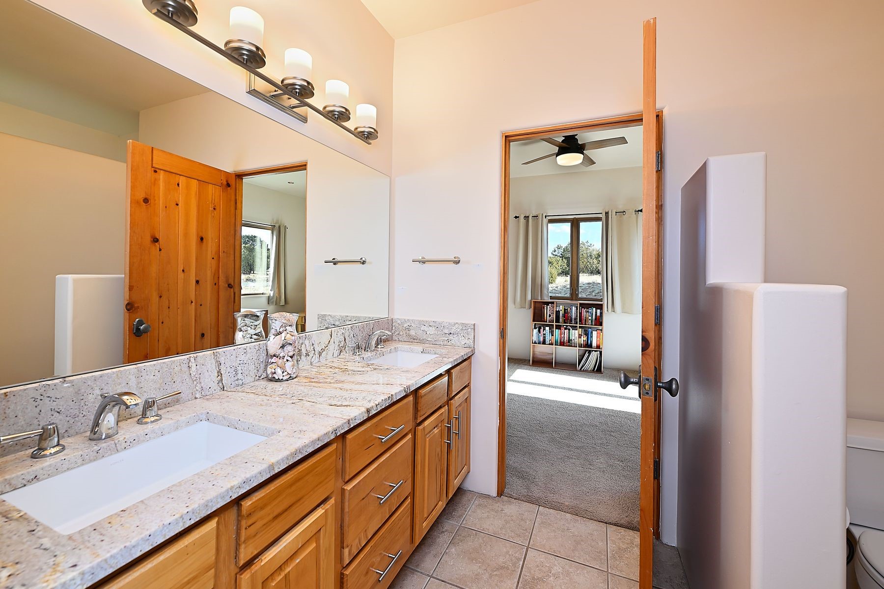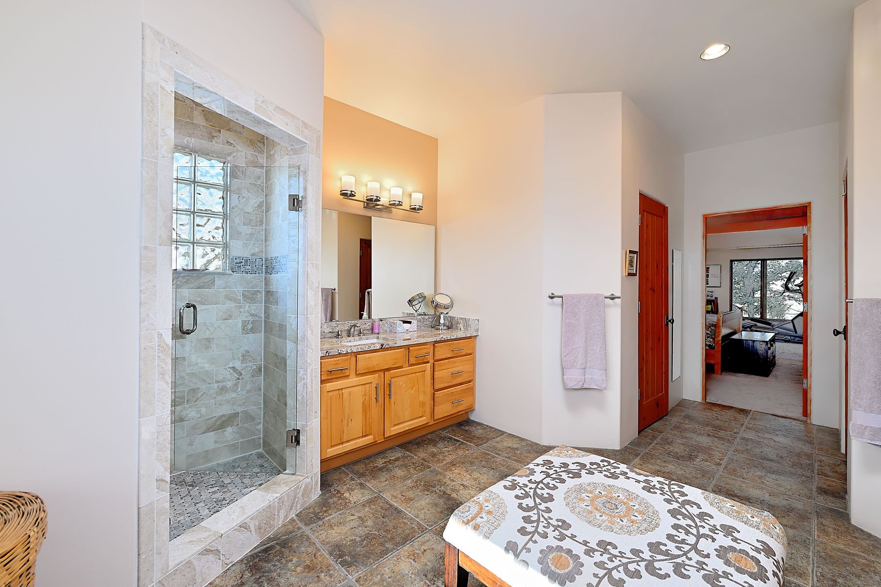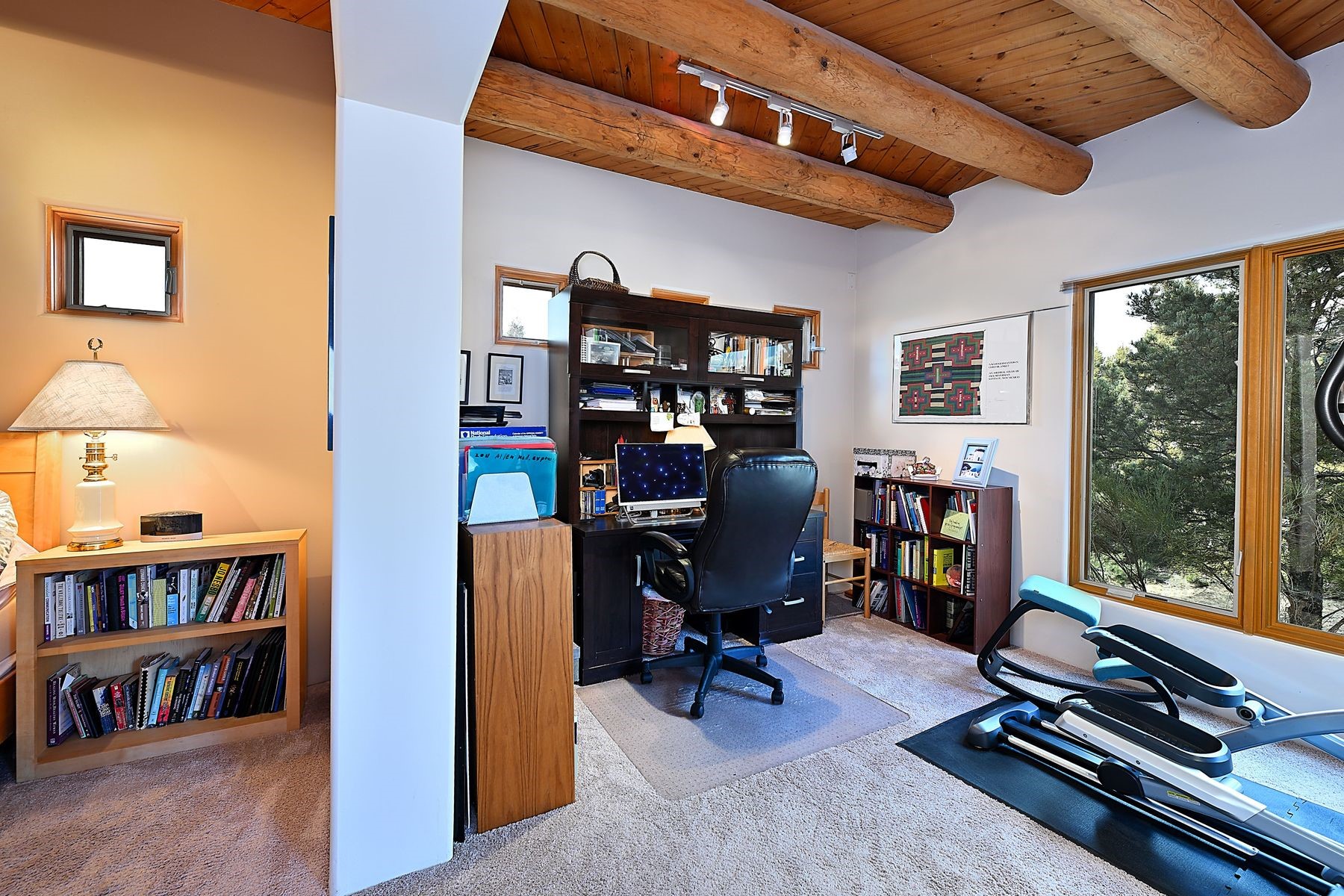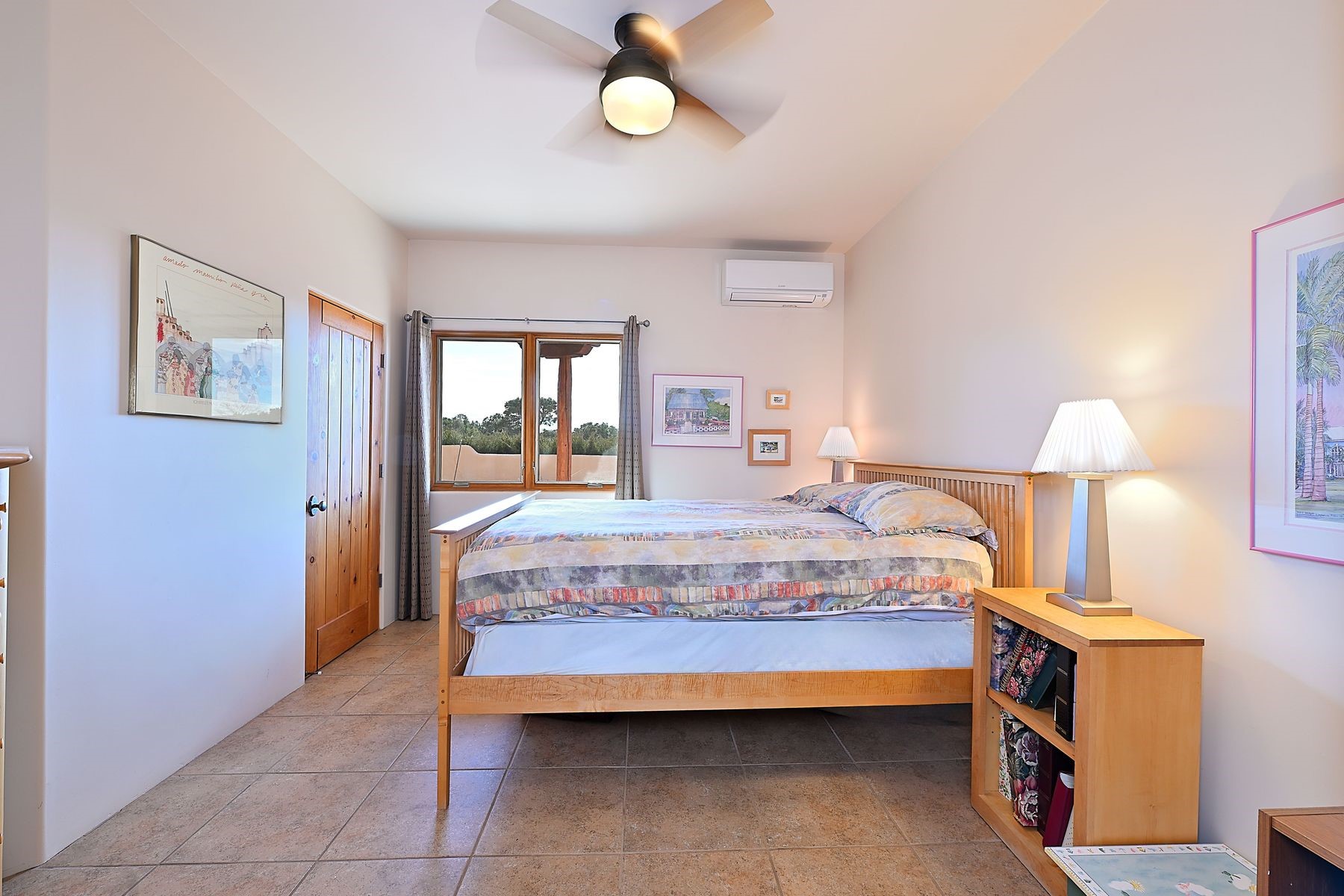 Bright and inviting, this light-filled four-bedroom home in Campos Conejos enjoys a private, quiet spot with spectacular views of the Sangre de Cristos. Plentiful windows, several sets of sliding glass doors, and an enviable portal and patio with a fireplace make the most of the majestic outlook. A central "piano room" and a dedicated dining room offer space for formal gathering and entertaining, while the generous open kitchen and its adjoining family room are destined to be the heart of relaxed day-to-day living. Secluded in the western wing are an owner's suite with a sitting room, a luxurious bath, and two walk-in closets; a guest bedroom or office; and a bright three-quarter bath; two additional bedrooms with a shared bath enjoy the peaceful privacy of the eastern wing of the home. Honey-hued woodwork, stone tile, subdued earth tones, and abundant skylights contribute to a welcoming warmth and an enlivening luster. Other highlights include a spacious laundry room and an oversized three-car garage. The desirable location provides a rare combination of seclusion and easy proximity to a wide variety of attractions and amenities.