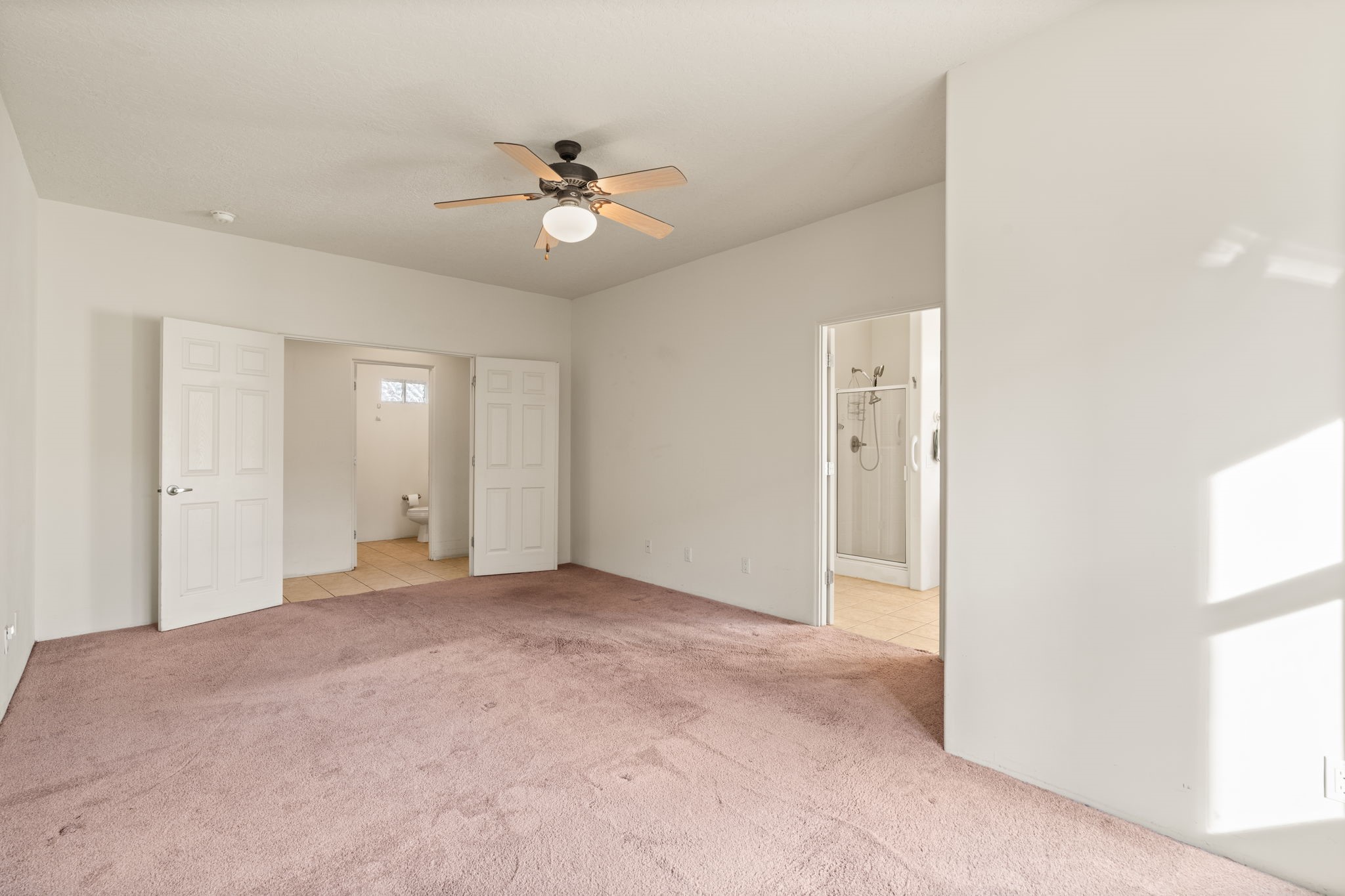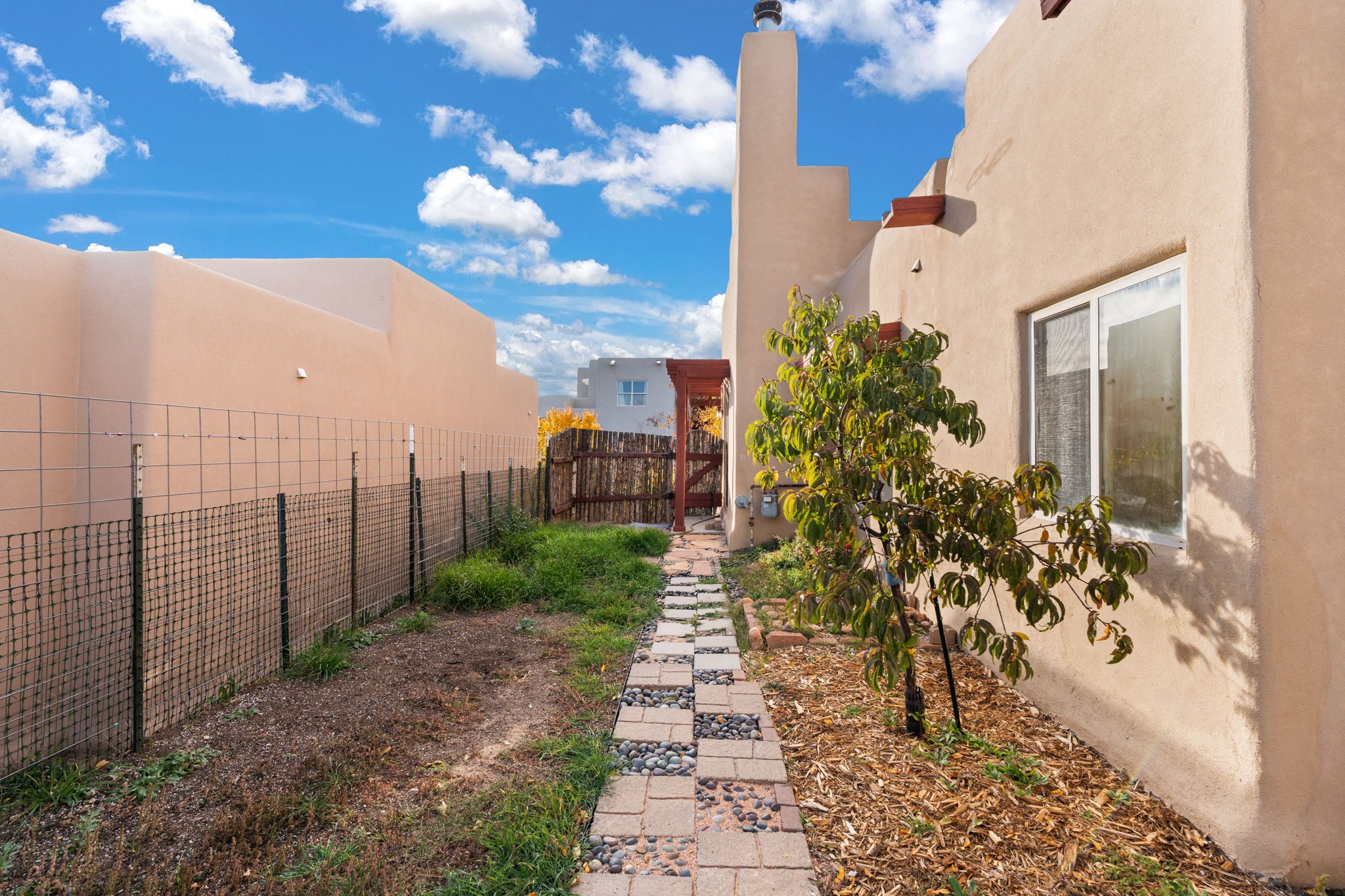 Discover the perfect blend of Southwestern style and comfort in Tierra Contenta. Spacious and versatile, this home features 3 bedrooms and 2.5 baths, 2 car attached garage and plenty of space for comfortable family living or flexible use. The thoughtfully designed floor plan includes a welcoming tiled living area highlighted by a cozy kiva fireplace and beautiful beamed tongue-and-groove ceilings. Step out from the living space to a fenced side yard--perfect for outdoor relaxation, gardening, or pets. Downstairs, the primary owner's suite provides a peaceful retreat, while upstairs you'll find a versatile office/library space or additional bedroom option, plus a sunset deck offering views of the surrounding high-desert landscape and mountains. Built in 2002 and ready for your personal touches, this home combines Santa Fe style with modern functionality in a quiet, convenient location close to amenities, shopping centers, schools and parks, health centers and hospitals, and the Santa Fe Country Club. Easy access to 599 and I-25. Don't miss this opportunity to own a home in Santa Fe and the Land of Enchantment.