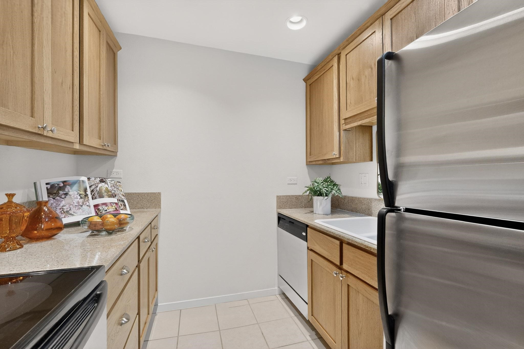 Sweet spot in the San Mateo development, this two-bedroom, two-bath ground-floor unit is located far away from the street, gate and commotion. The ground floor allows for easy access to the outdoors from the patio gate, and from here you are right by the common area (cabana) and dogs` park. The unit is in great shape, featuring tiled floors, a living room wall beautifully painted in a golden hue, and updated light fixtures. The San Mateo complex has on-site management, a swimming pool operating in summer, well-kept common areas, and designated grilling areas. The convenience of grocery stores (Trader Joe`s, Natural Groceries), restaurants, local businesses, banks, and the commuters train station makes this location very comfortable for permanent residence or a vacation spot. Rental for 30 days is allowed after informing the management. Non-smoking complex. Title opened with Jodie Buttler Legacy Title.
