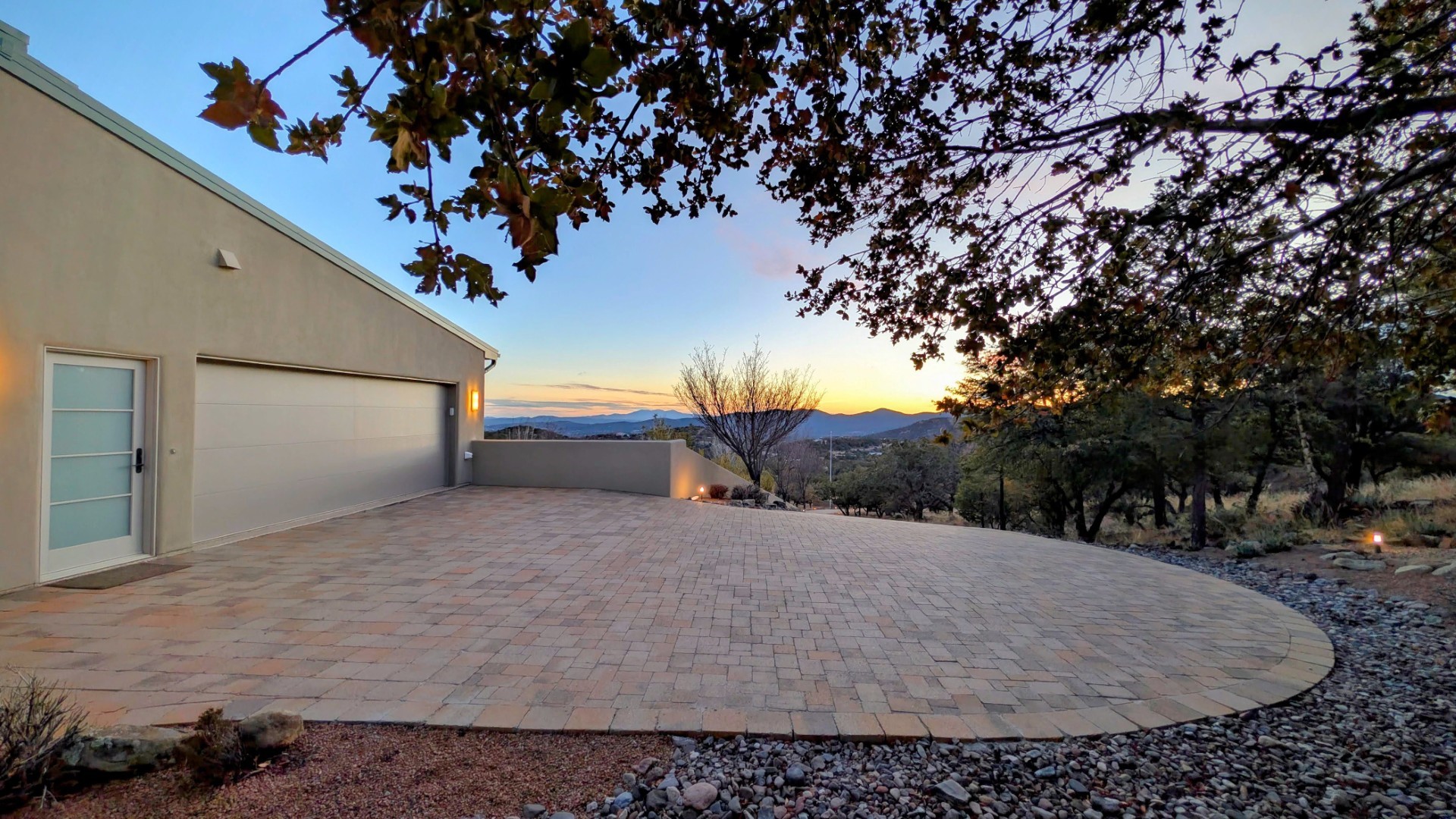 This luxury home will exceed your every expectation; the main level features single floor living with a spacious living room (the earth tone travertine stone provides a timeless elegance), dining room, kitchen, powder room, laundry, office (with two work stations) and primary suite boasting two private baths with dressing area and each with walk in closets, gas fireplace, and a private patio. The lower level (great southern exposure and natural light) is serviced by a hotel-quality elevator. The lower level has a sauna, fitness center, woodworking shop/studio, two separate guest suites with private bathrooms and ample storage. There are several decks on both levels to enjoy the stunning mountain views. The 9.5 kW solar PV system will handle all your electric, heating, and cooling needs. Beautiful mountain views, adjacent to green space, quiet and secluded and only a few miles from town.