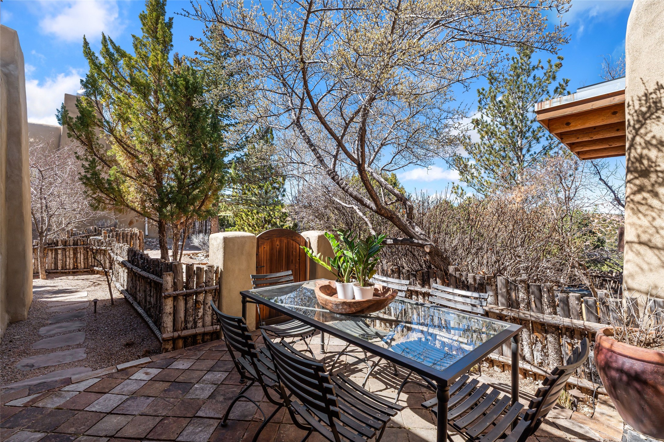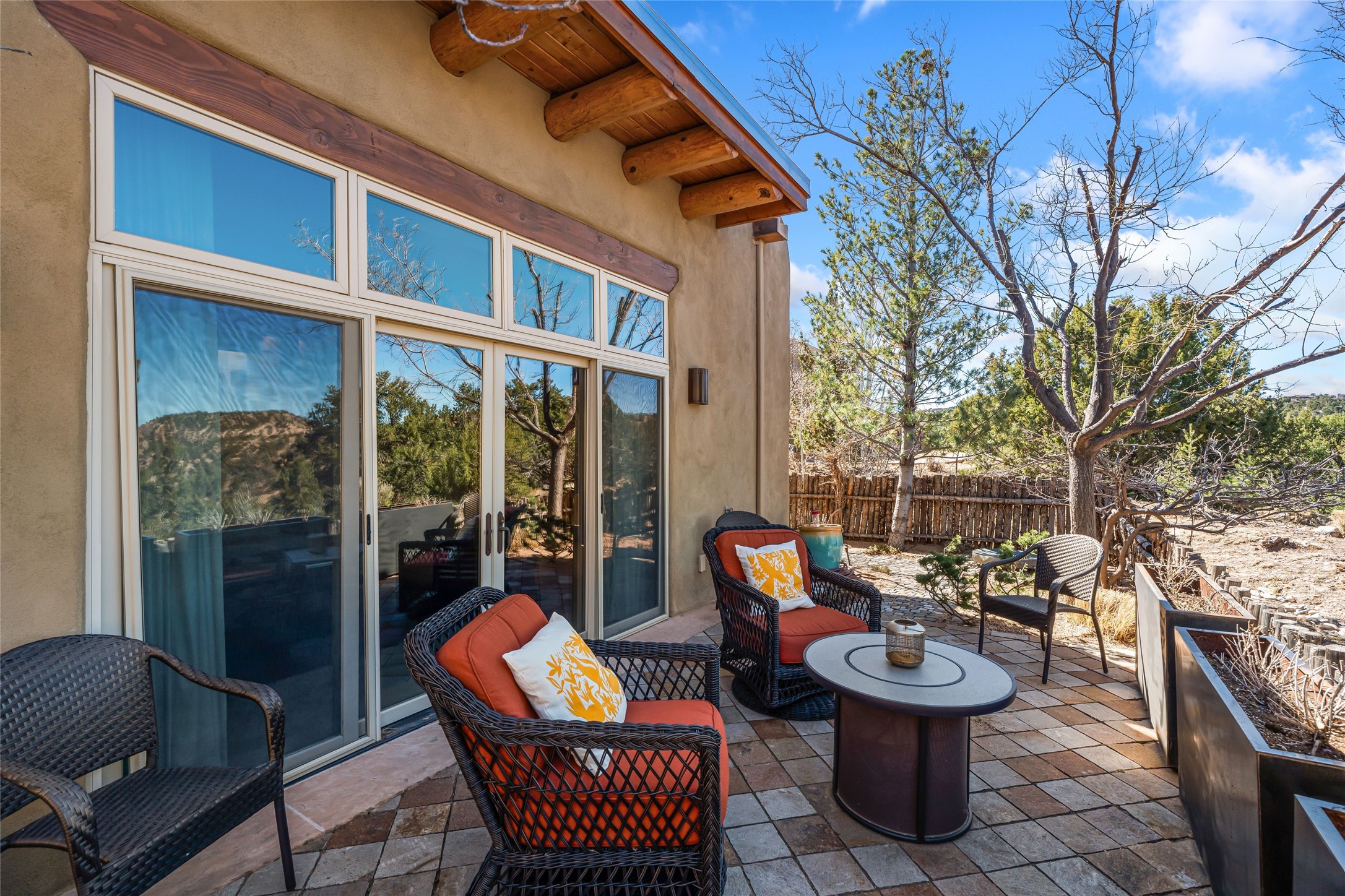 Don't miss this immaculately maintained 3-bedroom, 3-bathroom villa nestled within a prestigious gated community adjacent to the historic Bishop's Lodge, Auberge Resorts Collection. Offering the perfect blend of privacy, elegance, and resort-style living, residents enjoy access to world-class amenities including fine dining, a luxurious spa, and an equestrian facility. Set against breathtaking panoramic views, the community pool provides a tranquil retreat for relaxation and entertaining. Spanning approximately 2,150 square feet, this freestanding villa offers exceptional privacy along with beautiful surrounding vistas. Inside, the home showcases authentic Santa Fe architectural details, including soaring ceilings, traditional vigas, hand-troweled plaster walls, and tile flooring throughout--capturing the timeless character of the region. Each of the three bedrooms opens onto its own private landscaped patio, seamlessly connecting indoor comfort with the natural beauty of the outdoors. Recent upgrades by the current owners include new stove oven range, water heater, water softener, and alarm system, providing modern comfort and peace of mind. Ideally located just minutes from the historic Santa Fe Plaza and the renowned Canyon Road Art District, this exceptional villa is perfect as a luxury second home, full-time residence, or investment opportunity. This property offers a rare chance to experience the very best of Santa Fe living.