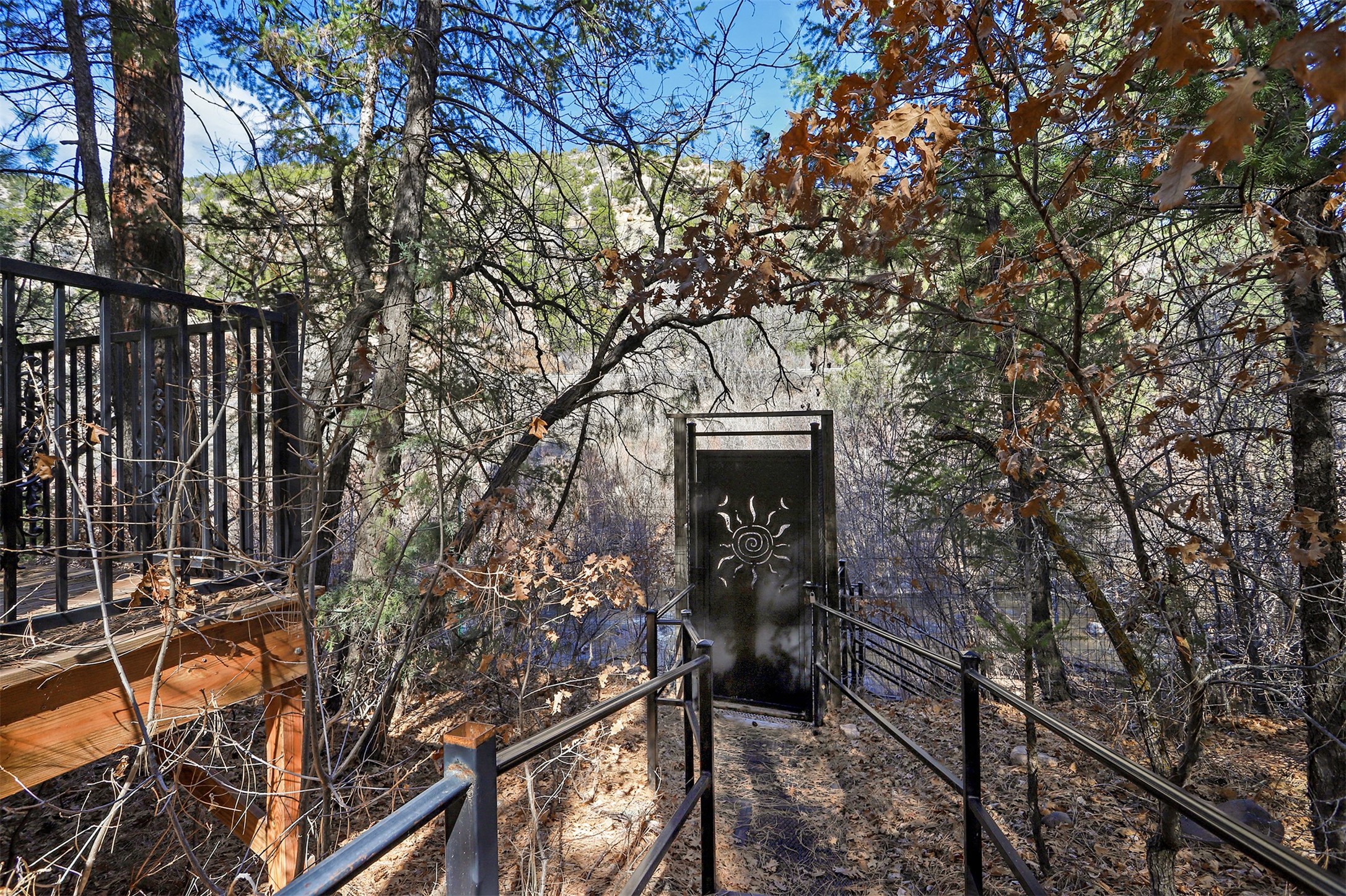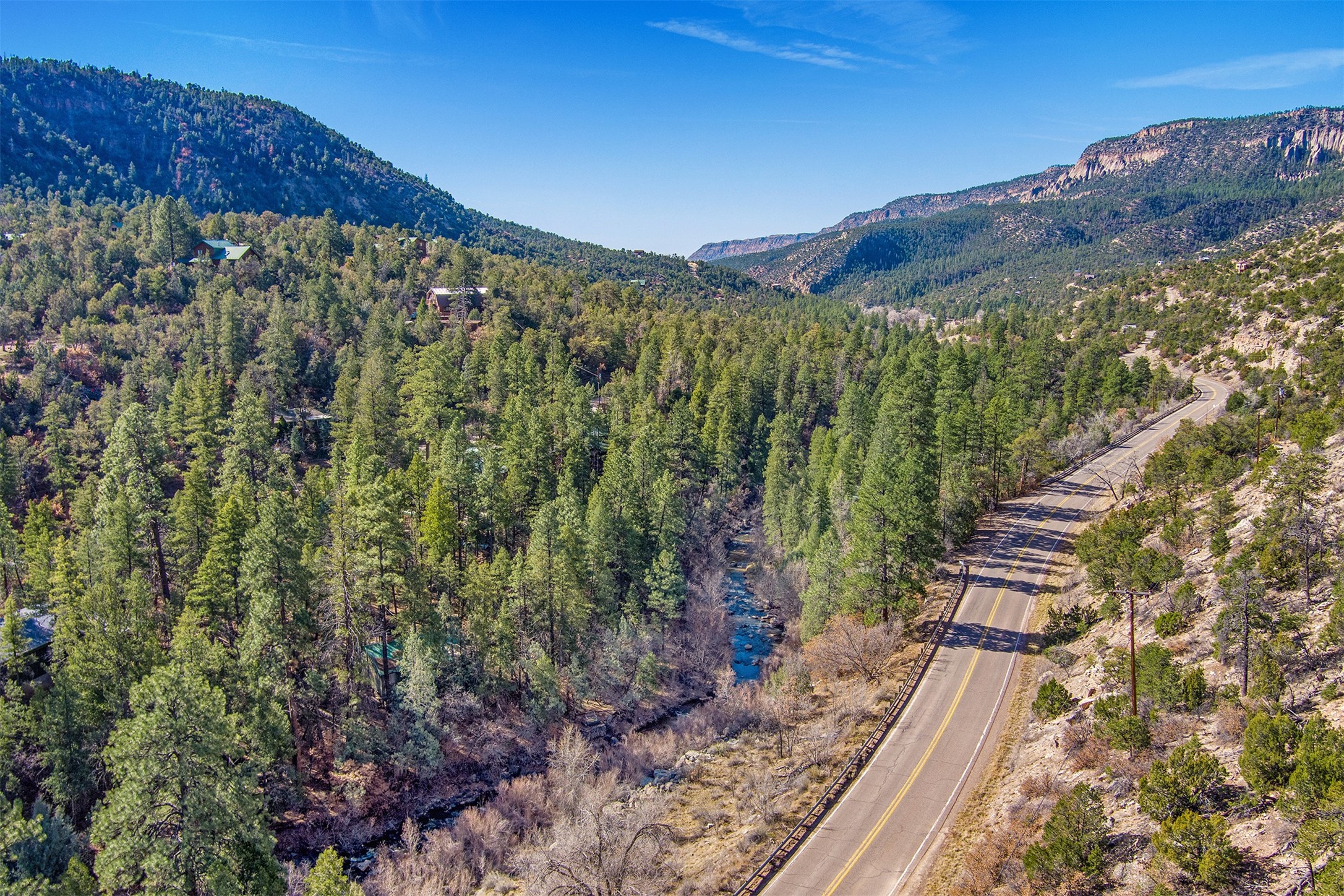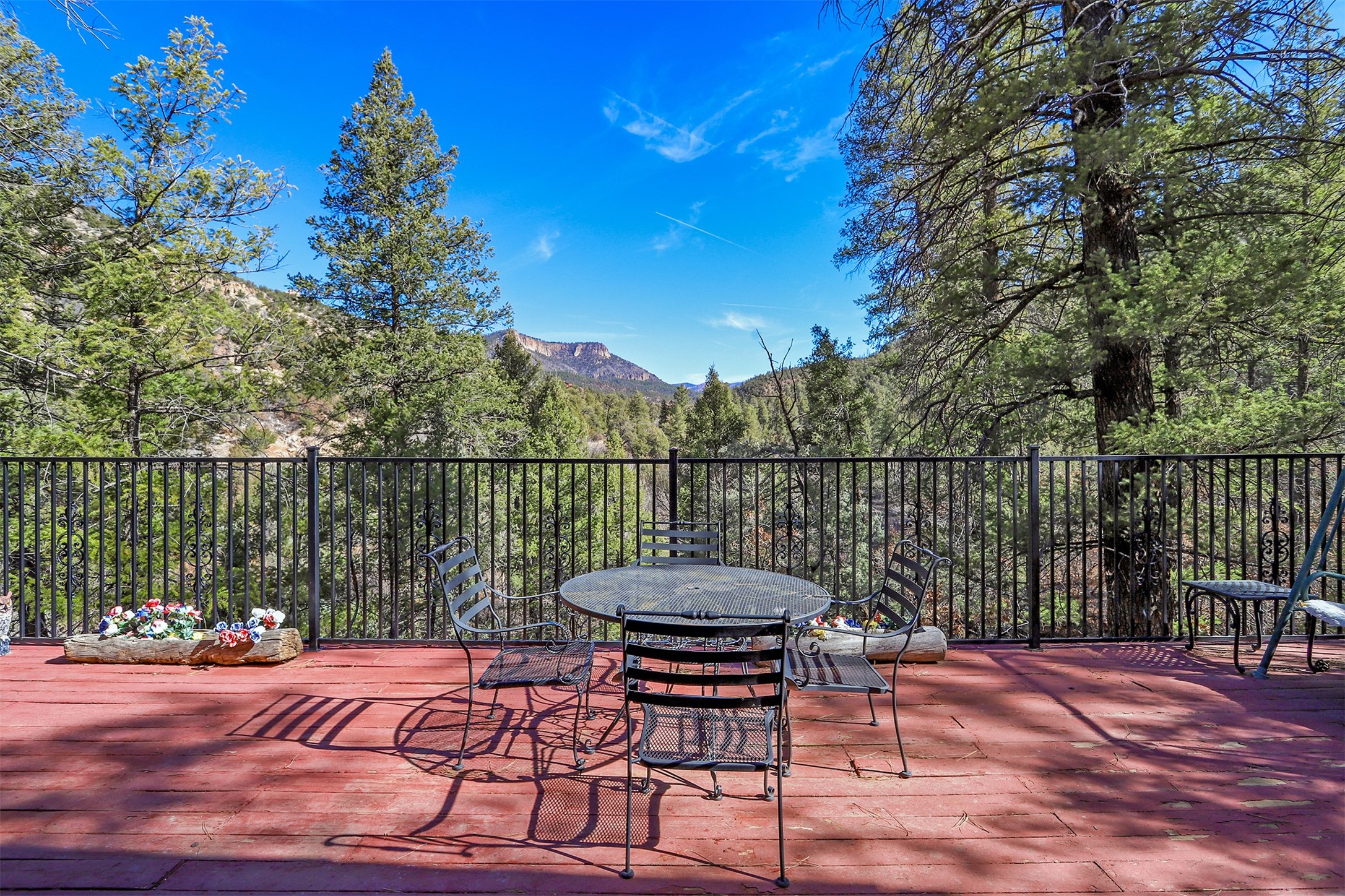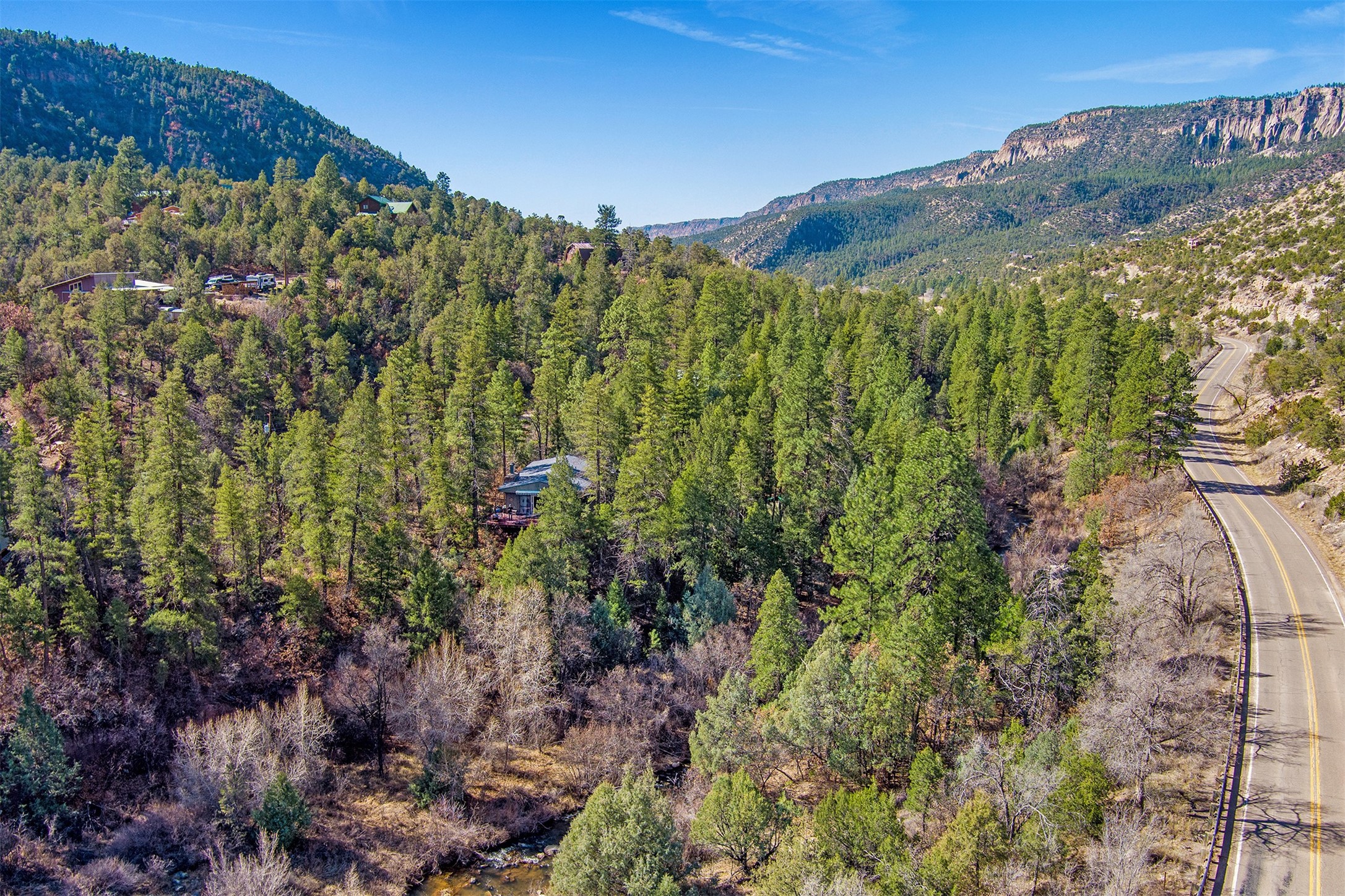 If you have been looking for that Jemez Mountain getaway on this river, wait no more! This 3 bedroom, 2 bath mountain home is ready for you. Sit by the large stone fireplace in the living room or out on the deck gazing at the upper Jemez Canyon. Take your fishing gear down the winding steps down to the river at the bottom of the property. Have your morning coffee in the sitting area next to the master bedroom that you can also access the stairs that lead to the river. There is a garage space under the structure to keep the toys and your outdoor gear. The home has also been operated as a successful short-term rental. Sunsetter style awning will shield you from the sun or rain. Come check out the relaxing sound of the river running by your mountain retreat!
