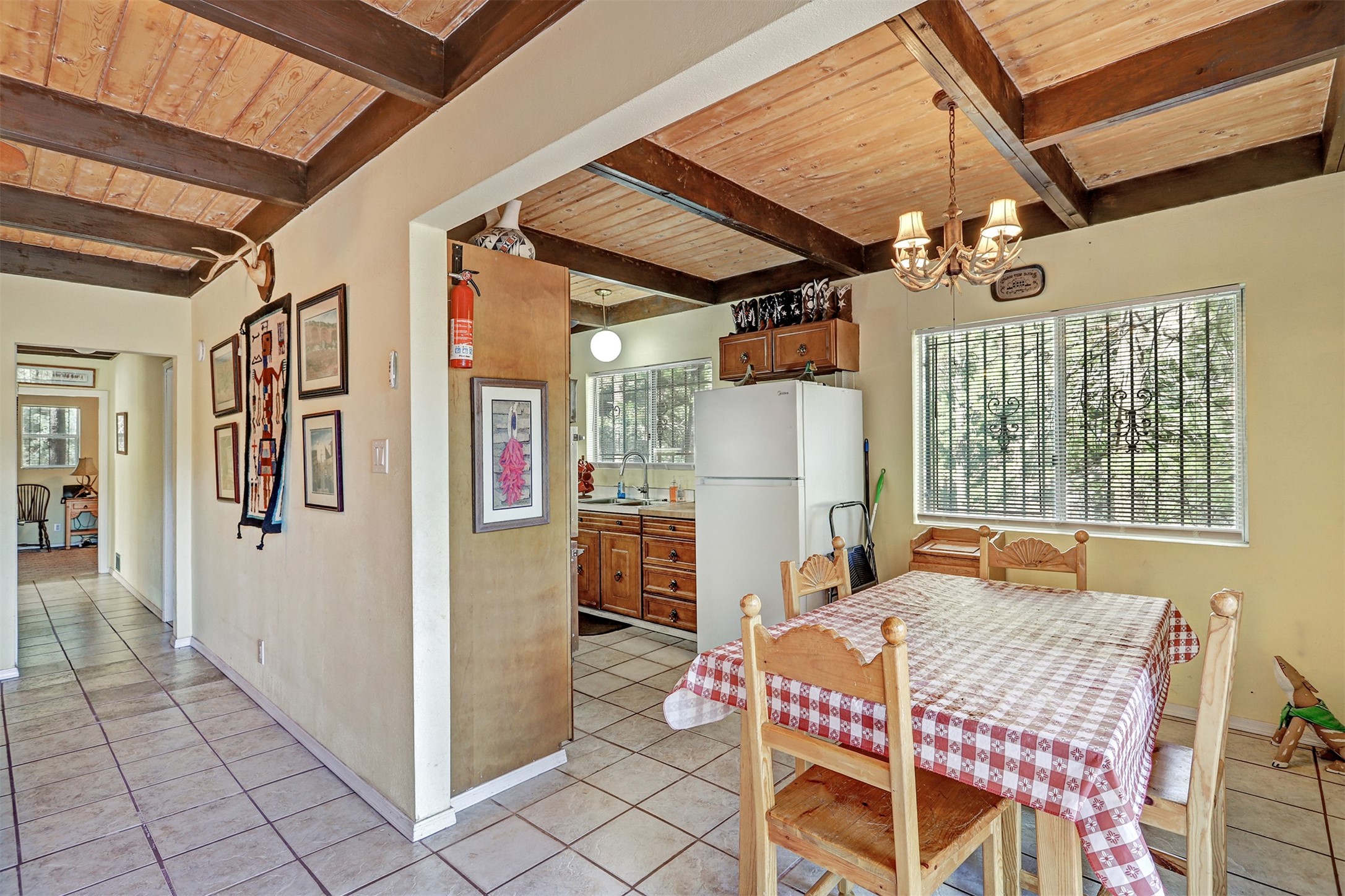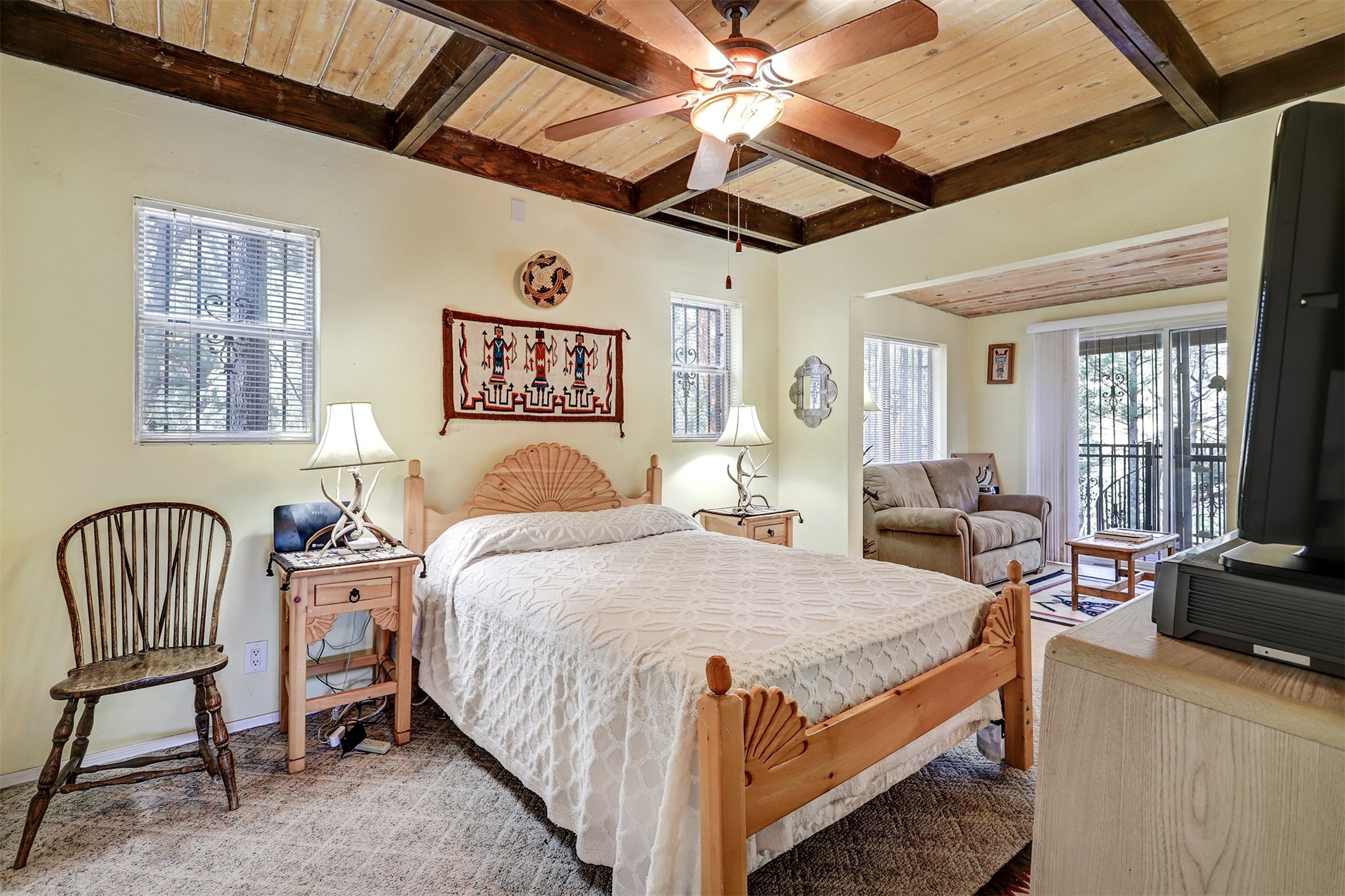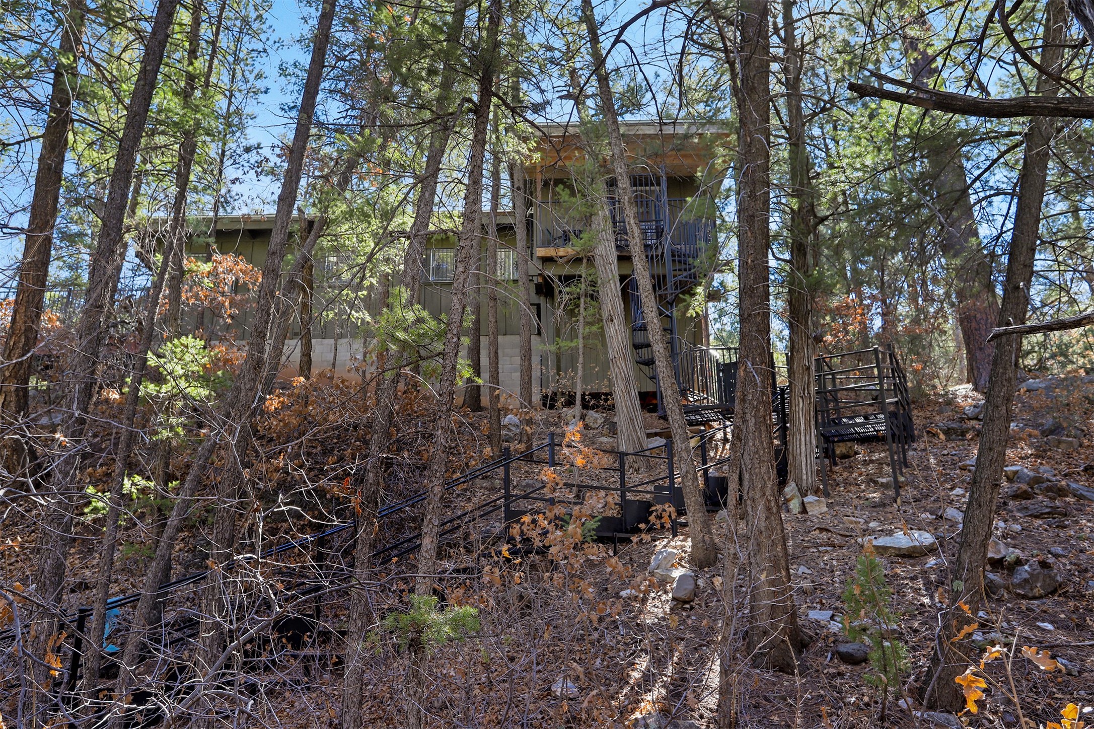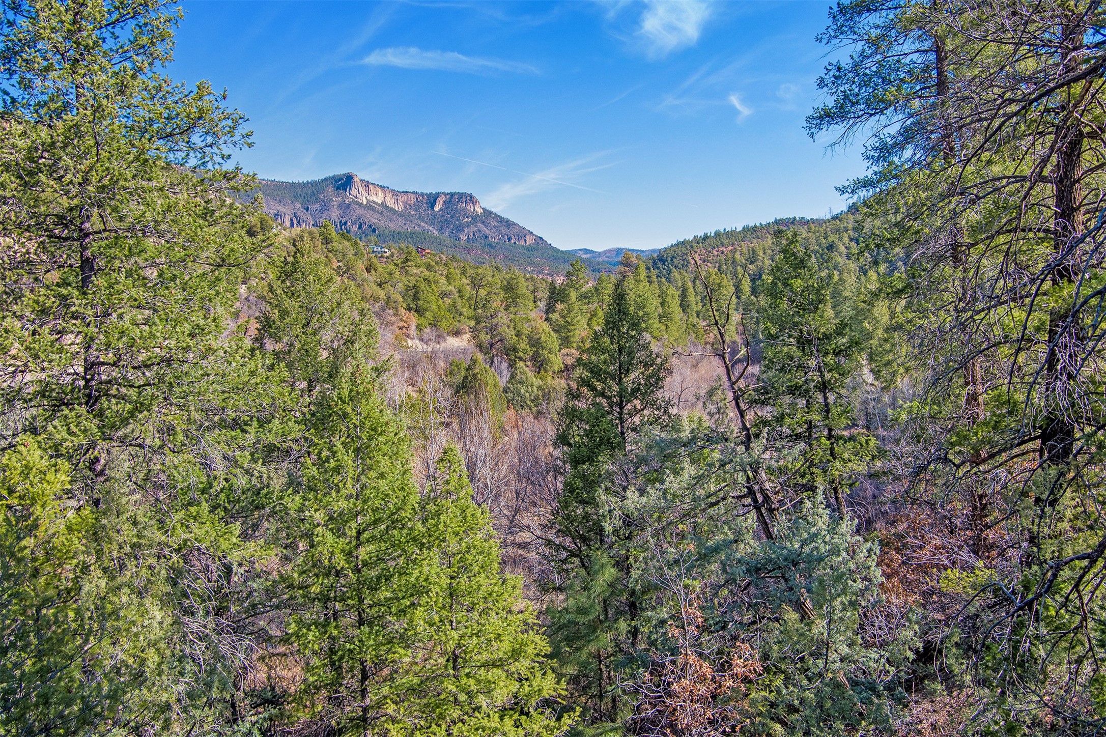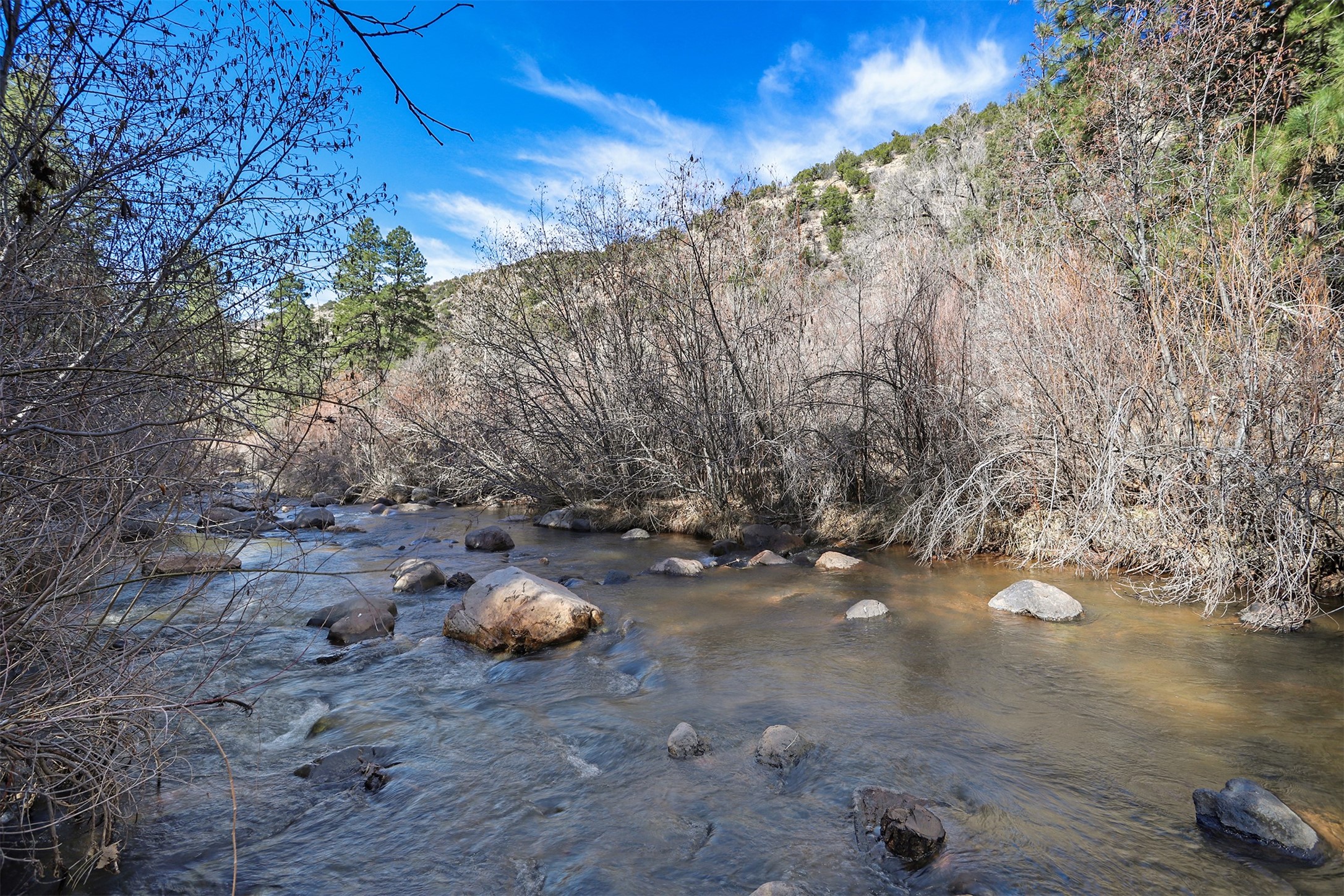 If you have been looking for that Jemez Mountain getaway on this river, wait no more! This 3 bedroom, 2 bath mountain home is ready for you. Sit by the large stone fireplace in the living room or out on the deck gazing at the upper Jemez Canyon. Take your fishing gear down the winding steps down to the river at the bottom of the property. Have your morning coffee in the sitting area next to the master bedroom that you can also access the stairs that lead to the river. There is a garage space under the structure to keep the toys and your outdoor gear. The home has also been operated as a successful short-term rental. Sunsetter style awning will shield you from the sun or rain. Come check out the relaxing sound of the river running by your mountain retreat!